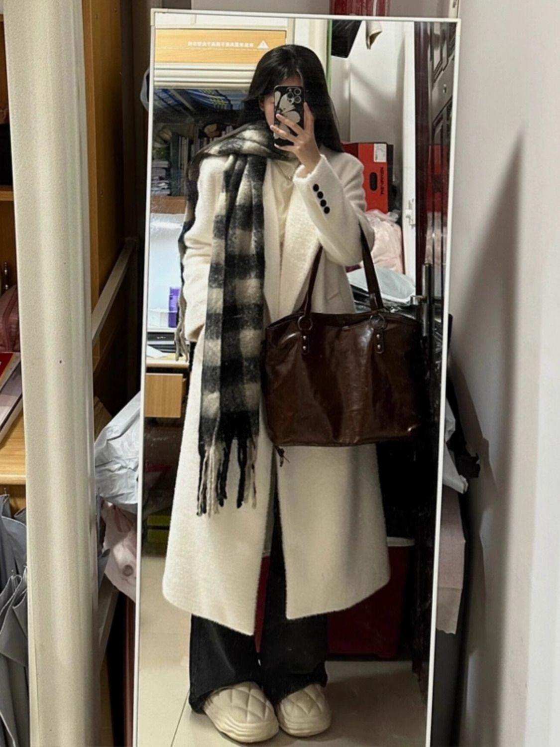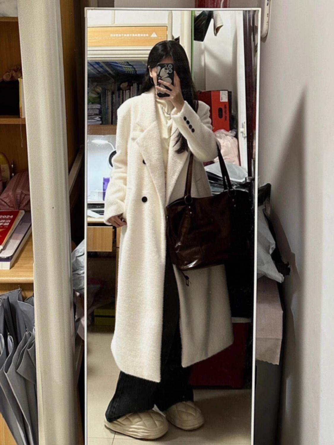 Abrigo de Lana para Mujer 2025 Otoño e Invierno Nuevo Melad Estilo Coreano Commuter Estilo Hepburn Abrigo de Lana Grueso Moderno