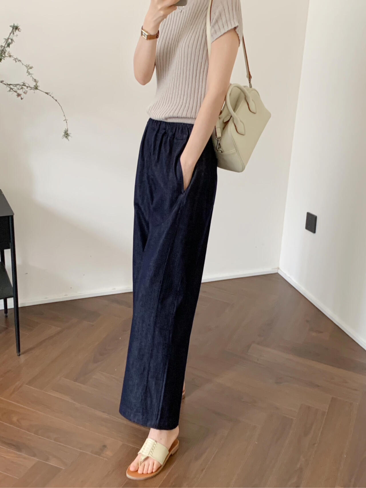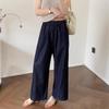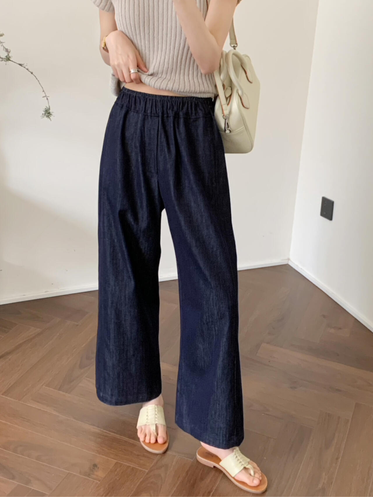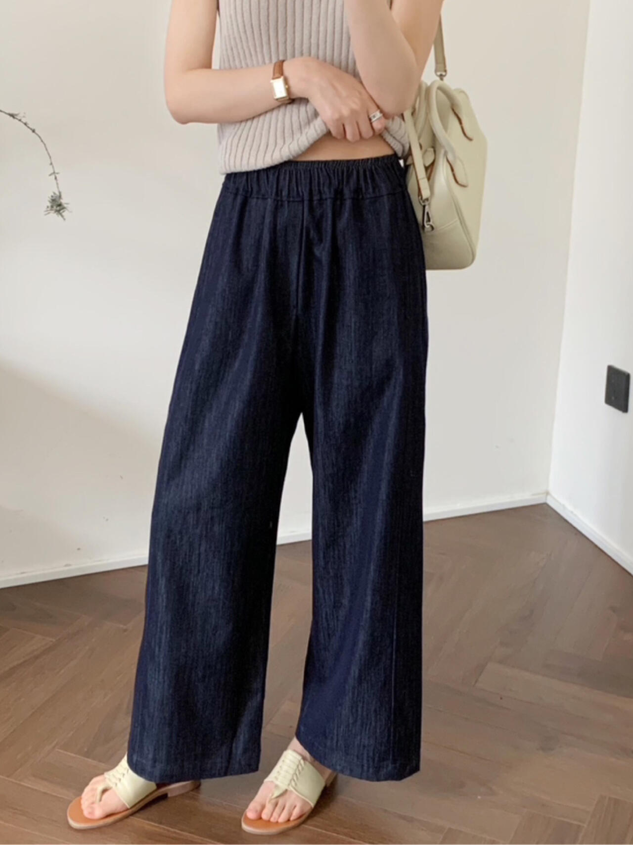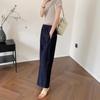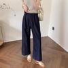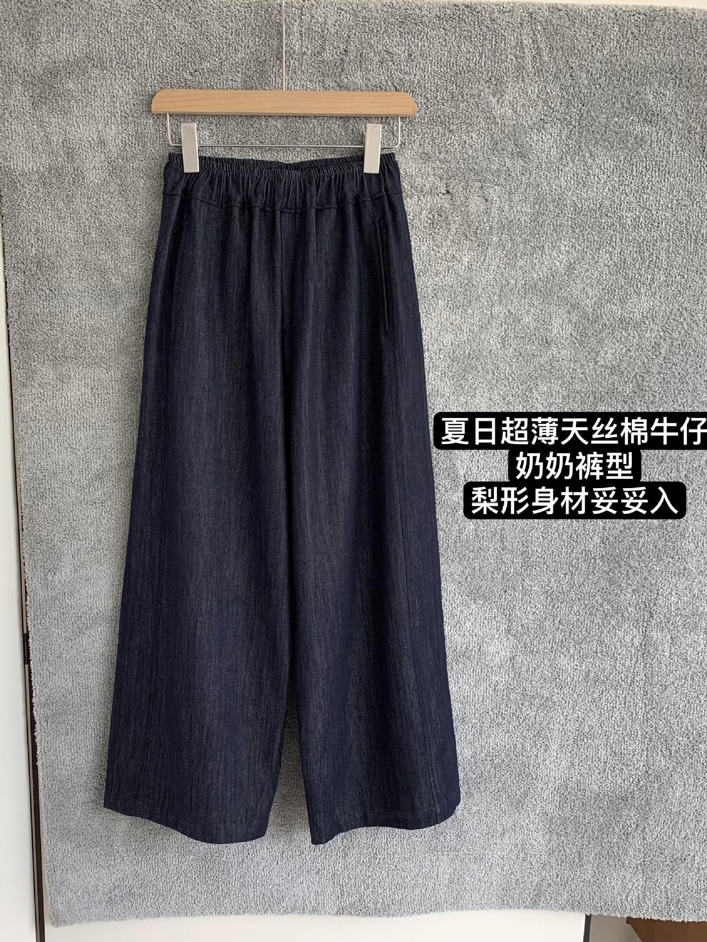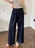 2025 Nuevo Estilo de Verano Jeans Tencel Suaves Sueltos Finos Azul Oscuro Diseño de Cintura Elástica Pantalones Casuales Rectos
