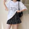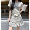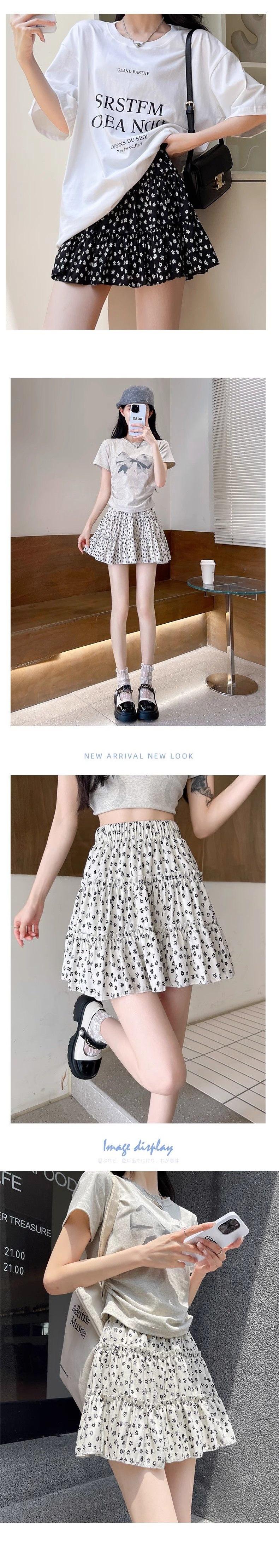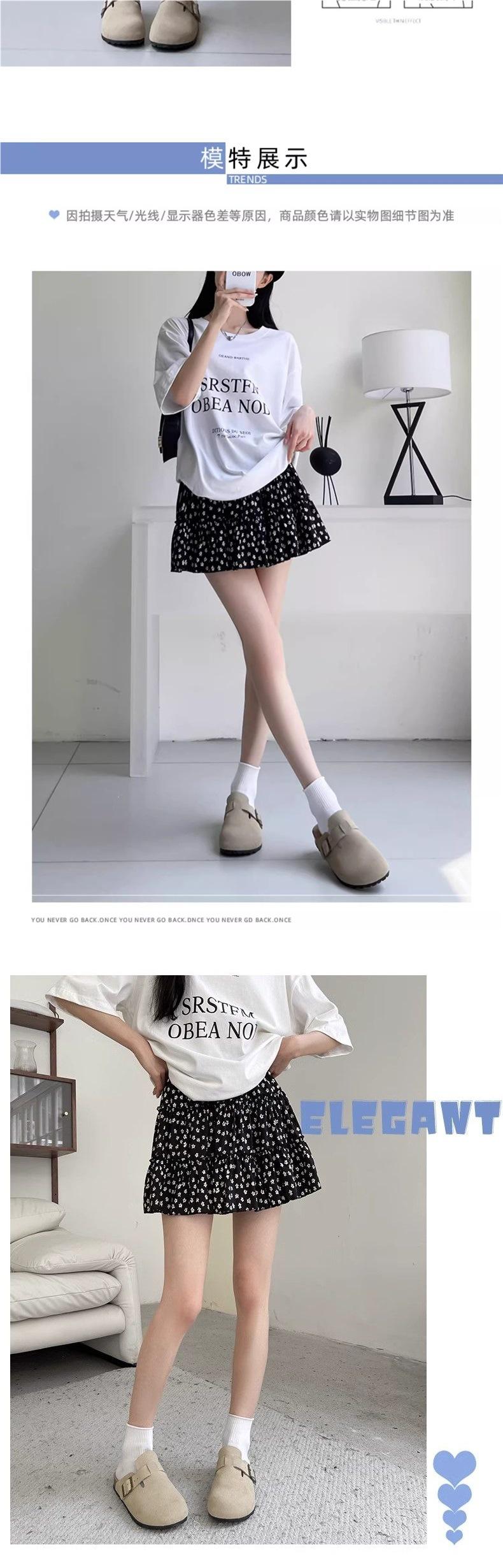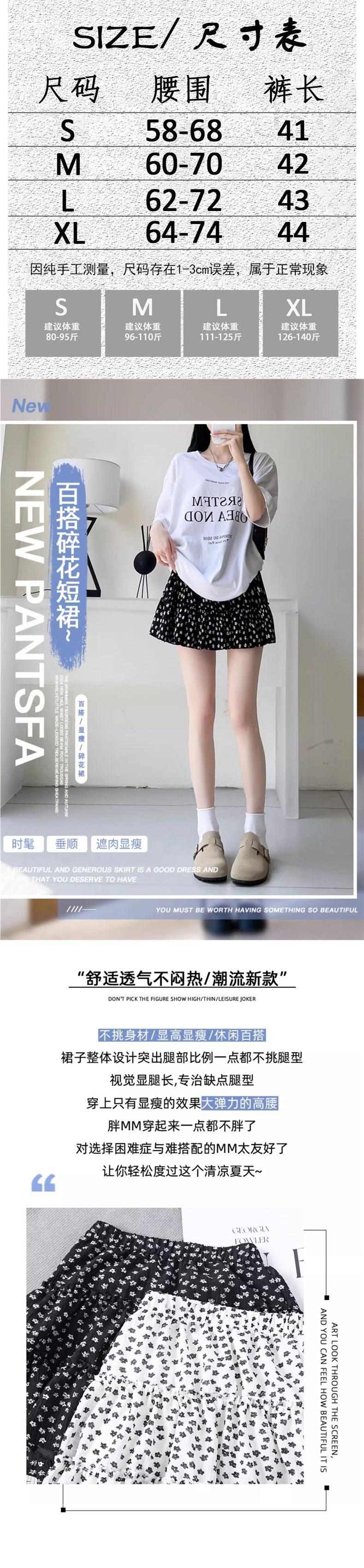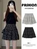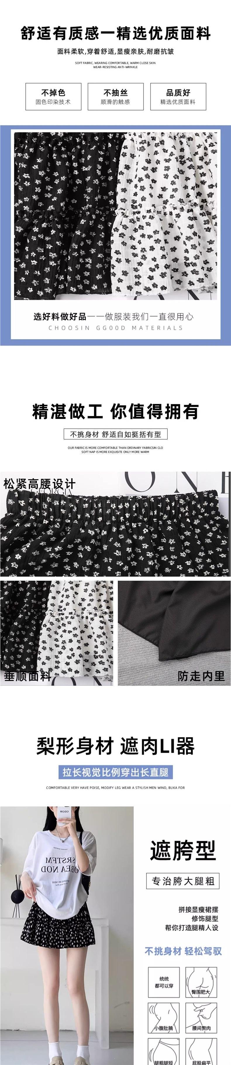 Falda Floral Negra para Mujer Verano Cintura Alta Slim Falda Pastel Media Falda Línea A Retro Falda Corta Versátil y Adelgazante