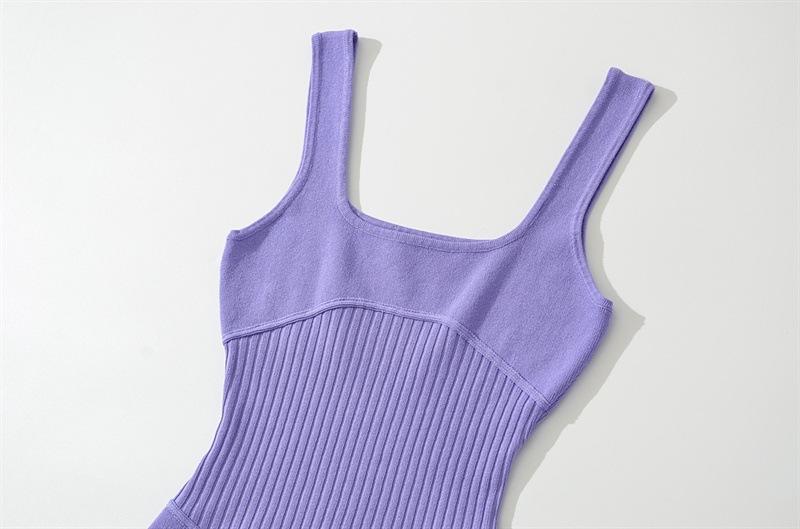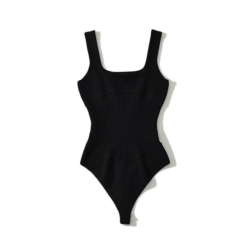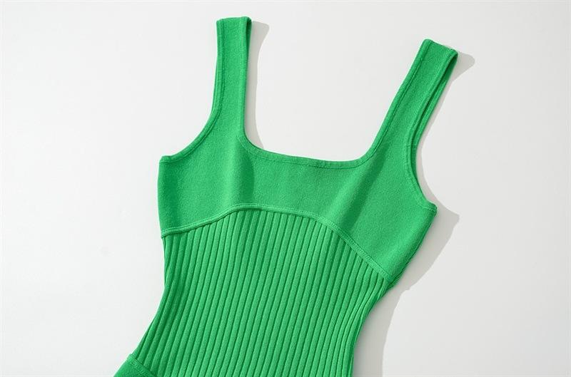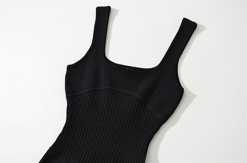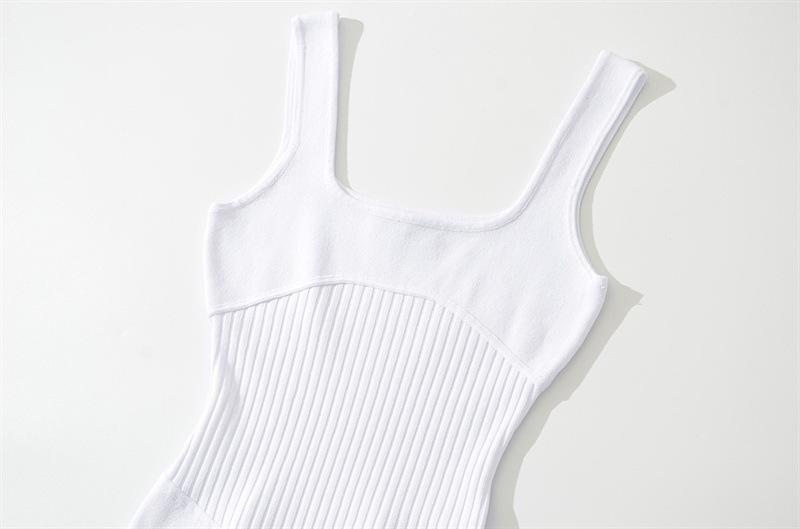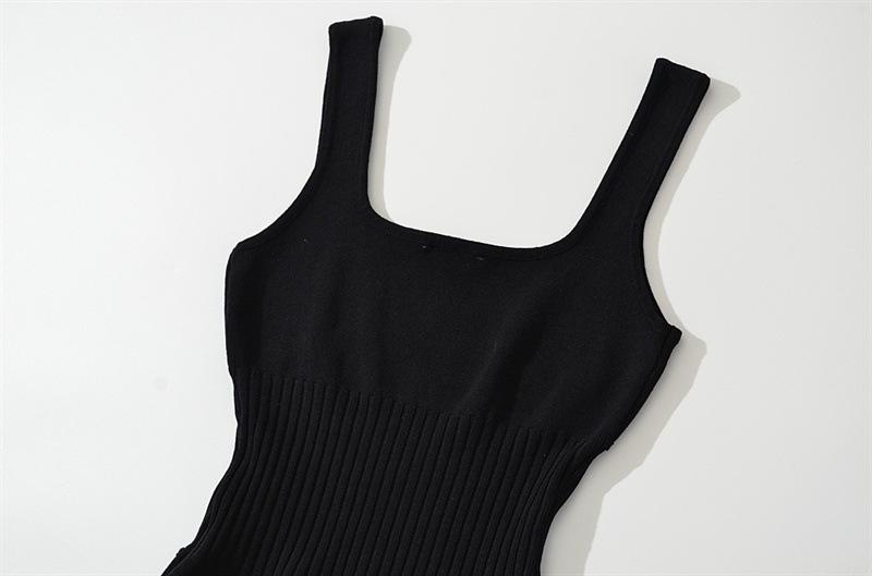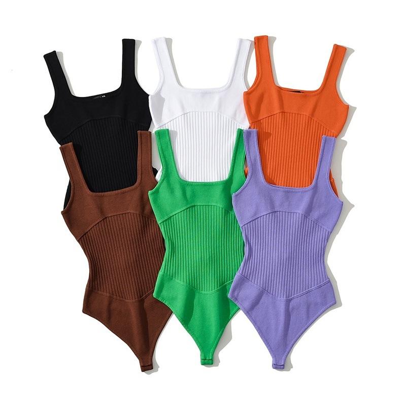 Mono Sexy de Estilo Europeo y Americano con Cuello Cuadrado, Cintura Alta, Tejido de Punto, Verano Nuevo, Elástico, Ajustado, Color Puro, Fondo con Tirantes para Mujer