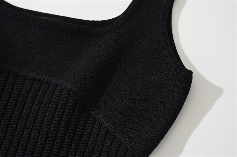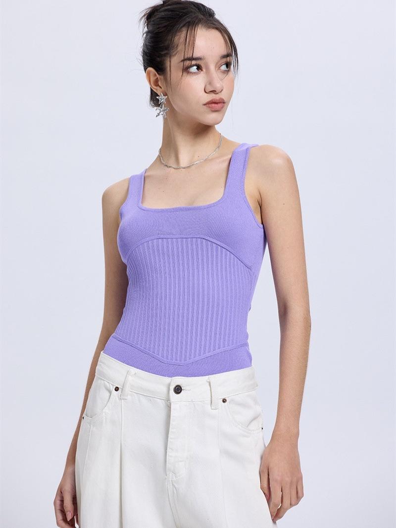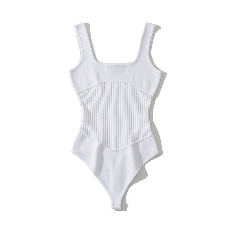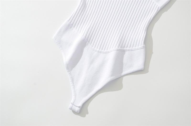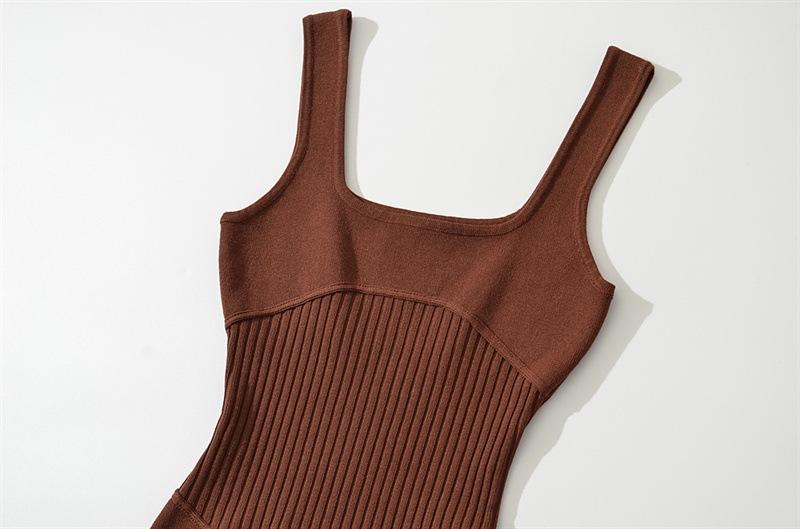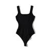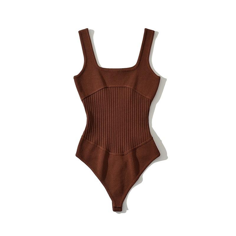 Mono Sexy de Estilo Europeo y Americano con Cuello Cuadrado, Cintura Alta, Tejido de Punto, Verano Nuevo, Elástico, Ajustado, Color Puro, Fondo con Tirantes para Mujer