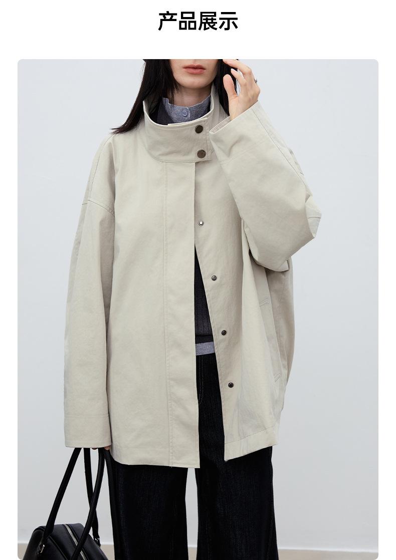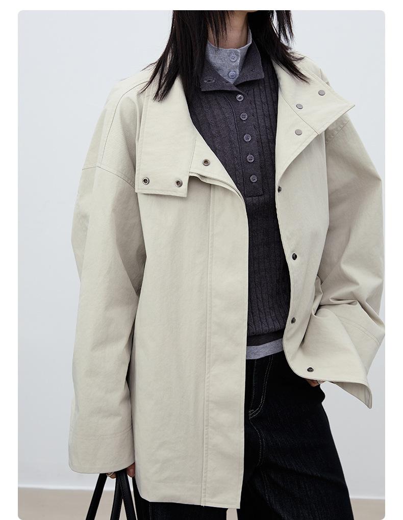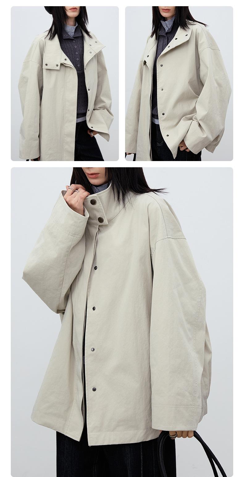 Abrigo de otoño silueta holgada cuello alto gabardina relajado minimalista botonadura sencilla casual versátil chaqueta para ropa de trabajo