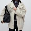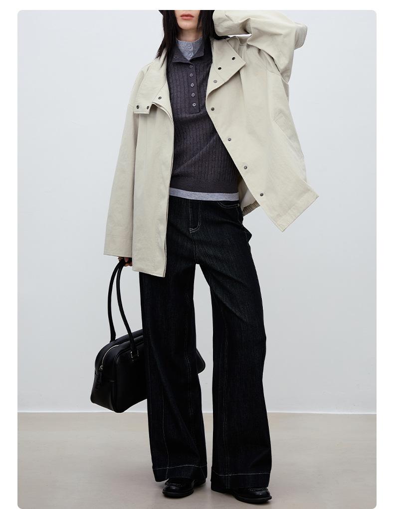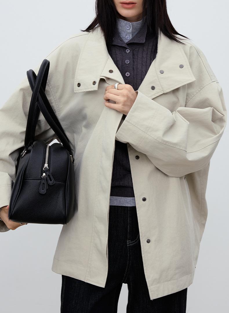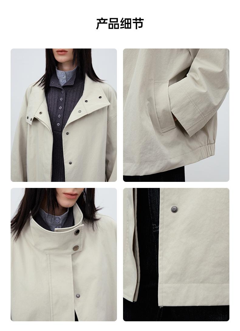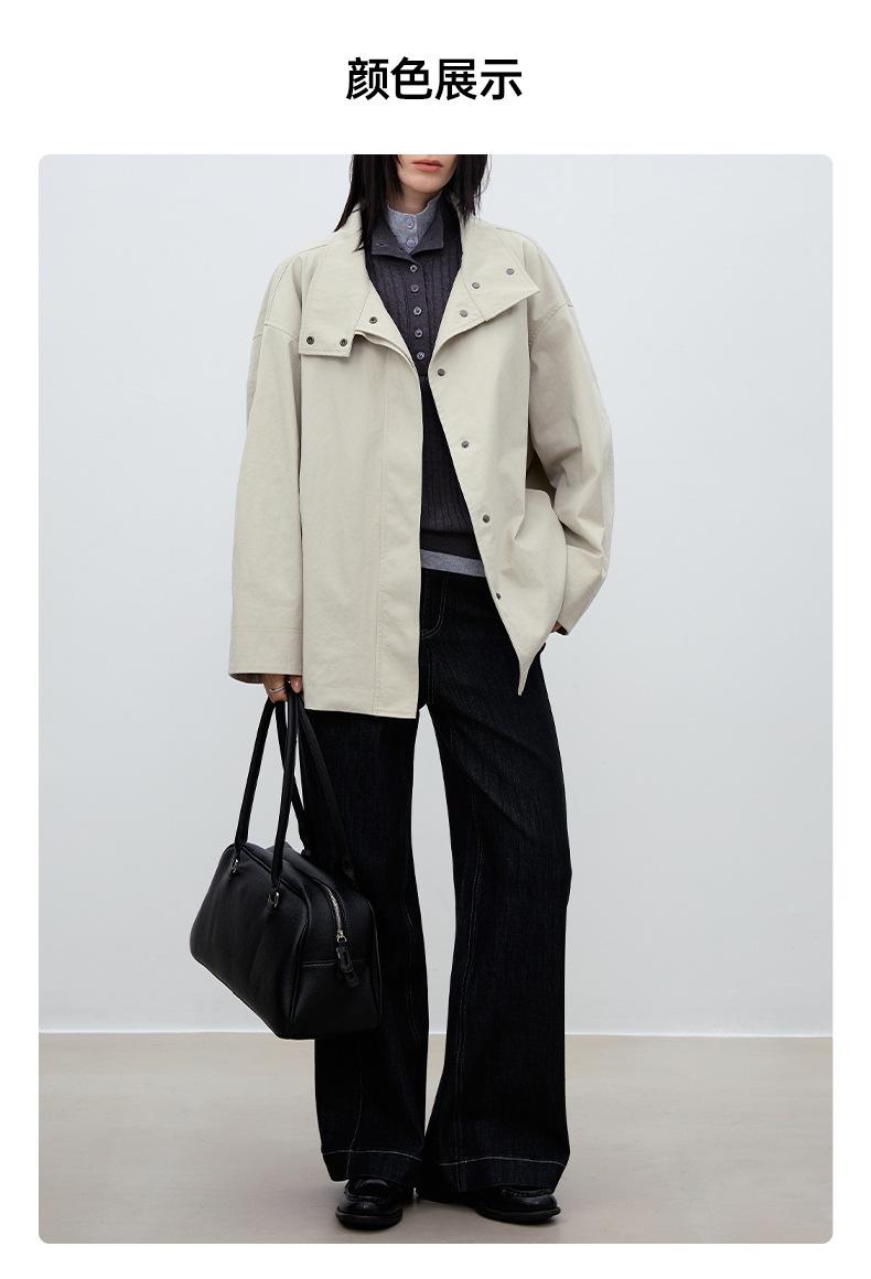 Abrigo de otoño silueta holgada cuello alto gabardina relajado minimalista botonadura sencilla casual versátil chaqueta para ropa de trabajo
