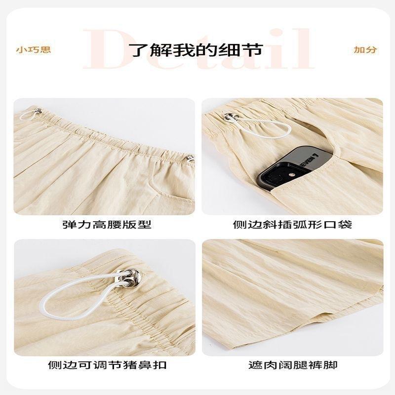 Black five-quarter pants (adjustable), Apricot trousers (adjustable), Khaki cropped pants (adjustable)