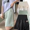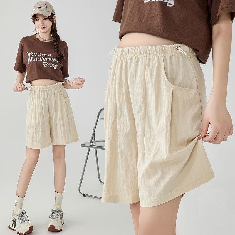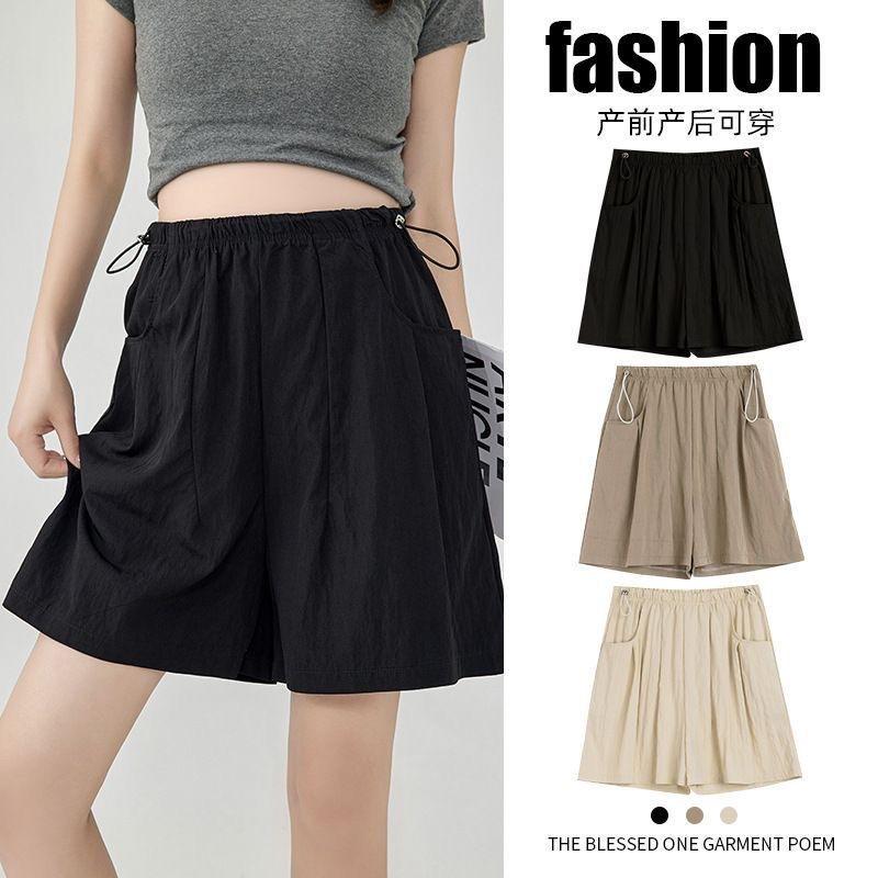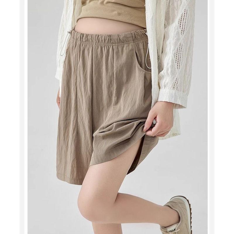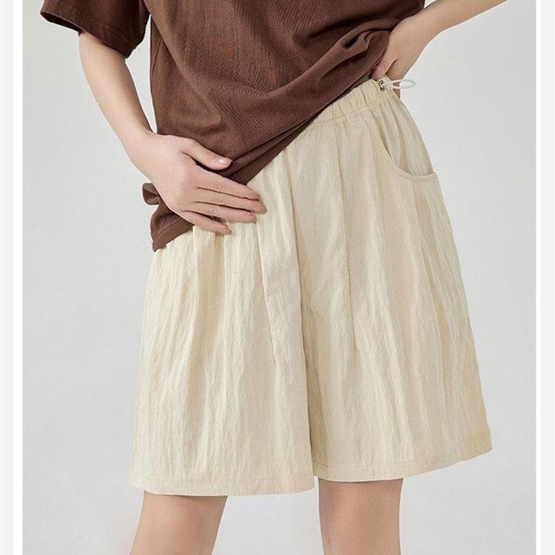 [Personalizado] Ropa de Maternidad para Personas Pequeñas Sin Soporte para el Vientre, Moda de Verano Look Holgado Adelgazante, Pantalón Medio Ajustable con Botón de Nariz de Cerdo