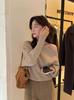 Z Estilo Europeo y Americano Transfronterizo 2025 Nuevo Venta al por Mayor Moda Temperamento Ropa de Mujer Color Sólido Top de Punto con Hombros Descubiertos 2893101