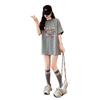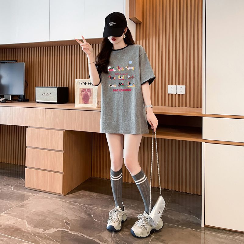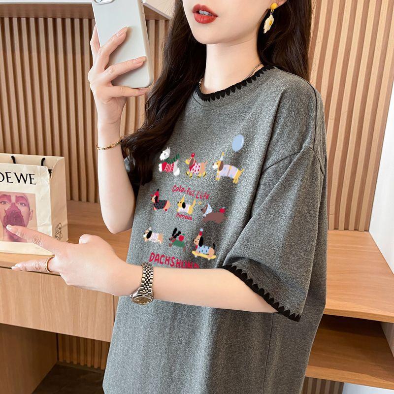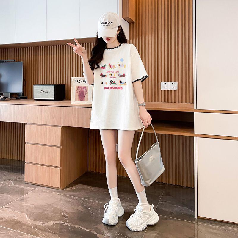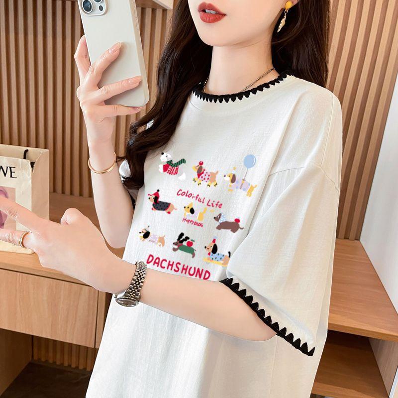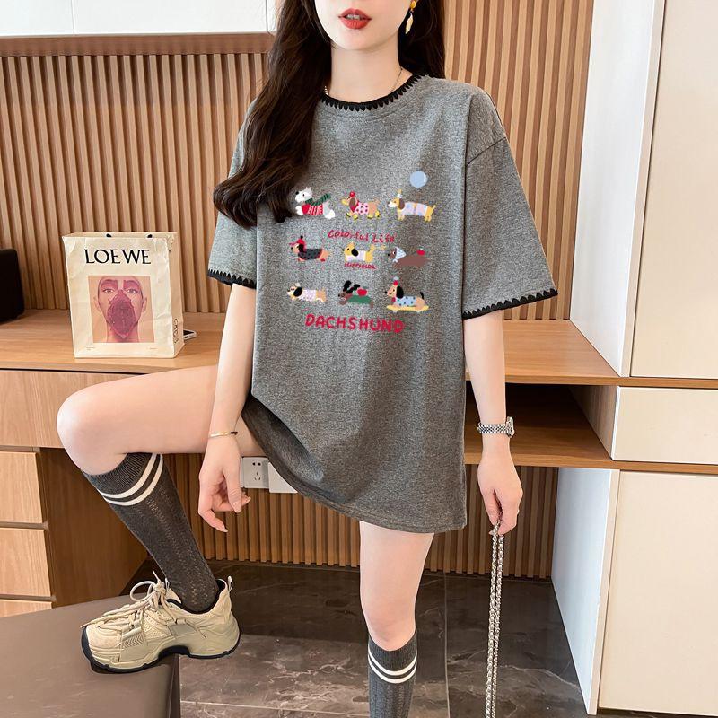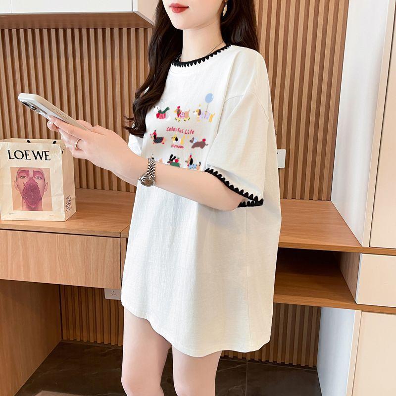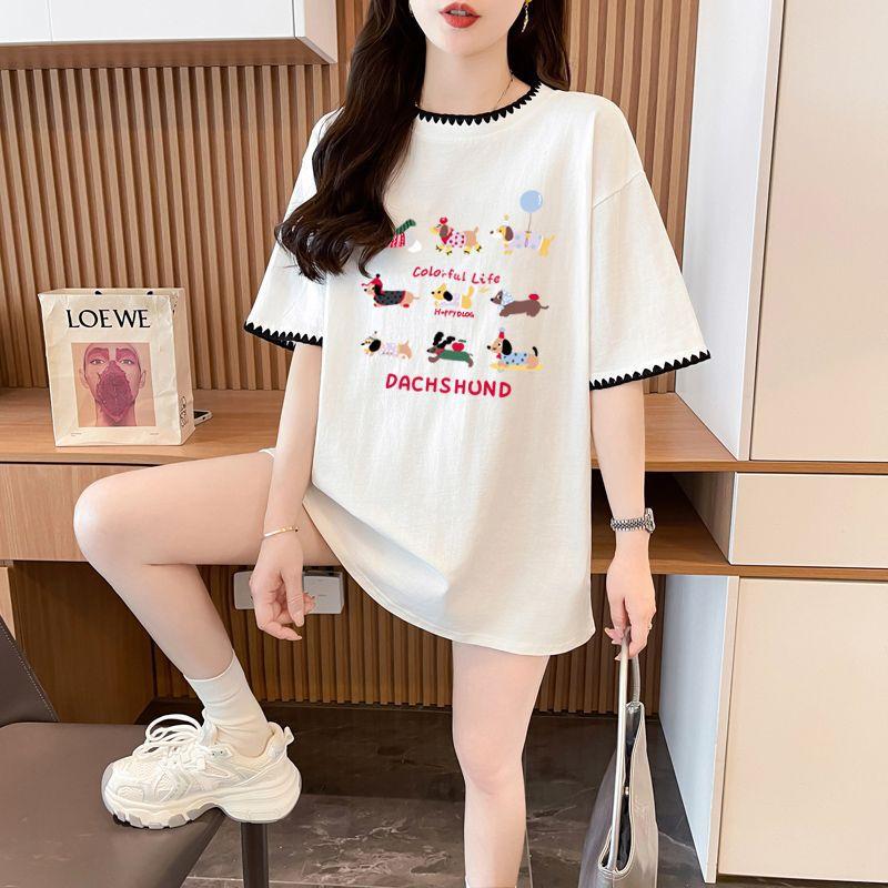 Playera de Manga Corta para Mujer Verano Top de Largo Medio 2025 Nuevo Estilo Europeo Holgado Versátil Diseño Estilo Occidental Camiseta