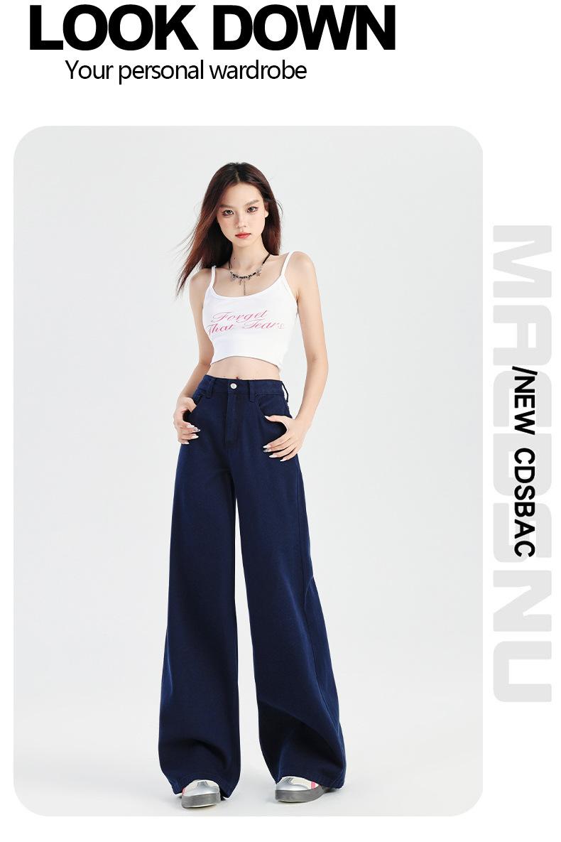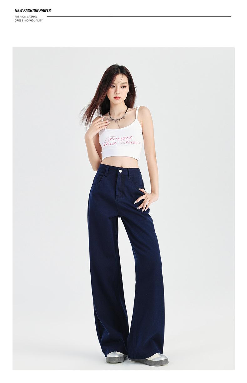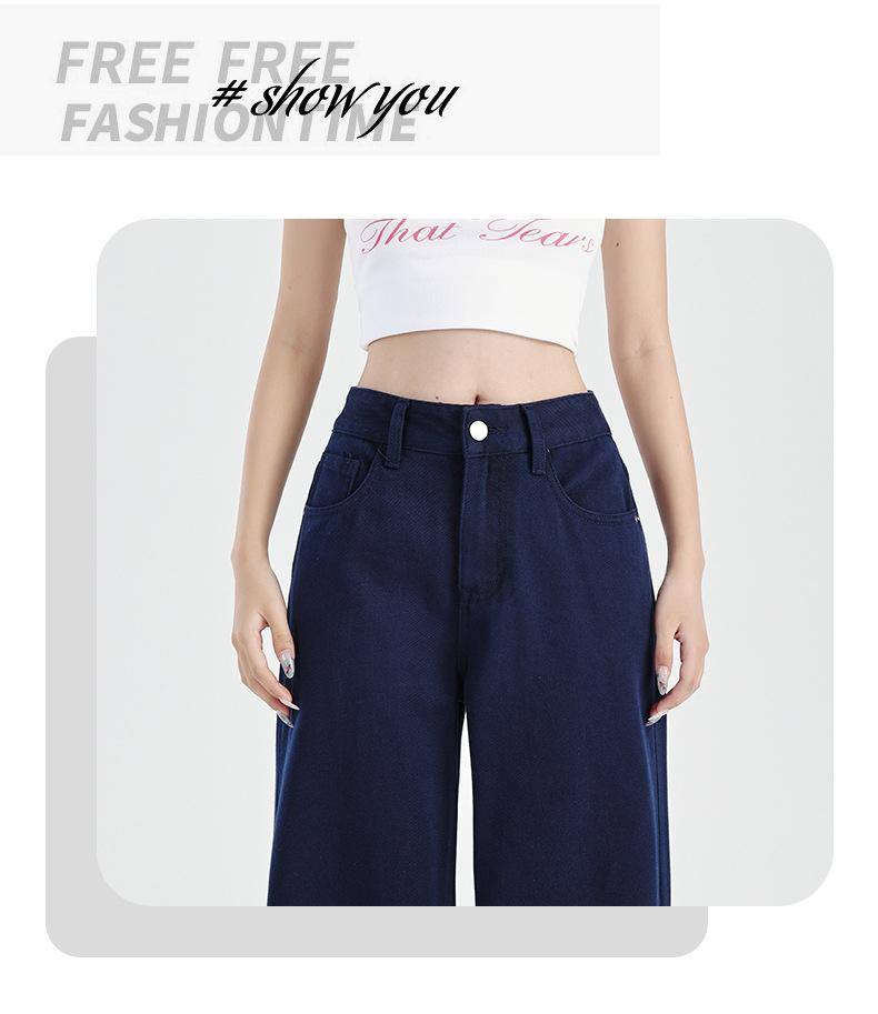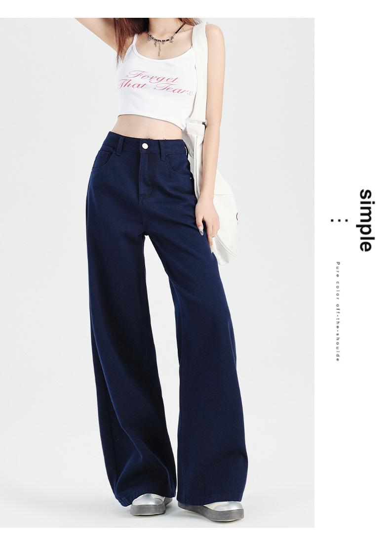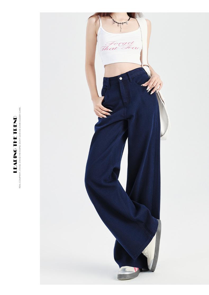 Ventas Directas de Fábrica Cintura Alta Retro Azul Real Azul Marino Lavado Suelto Adelgazante Pierna Recta Pierna Ancha Jeans
