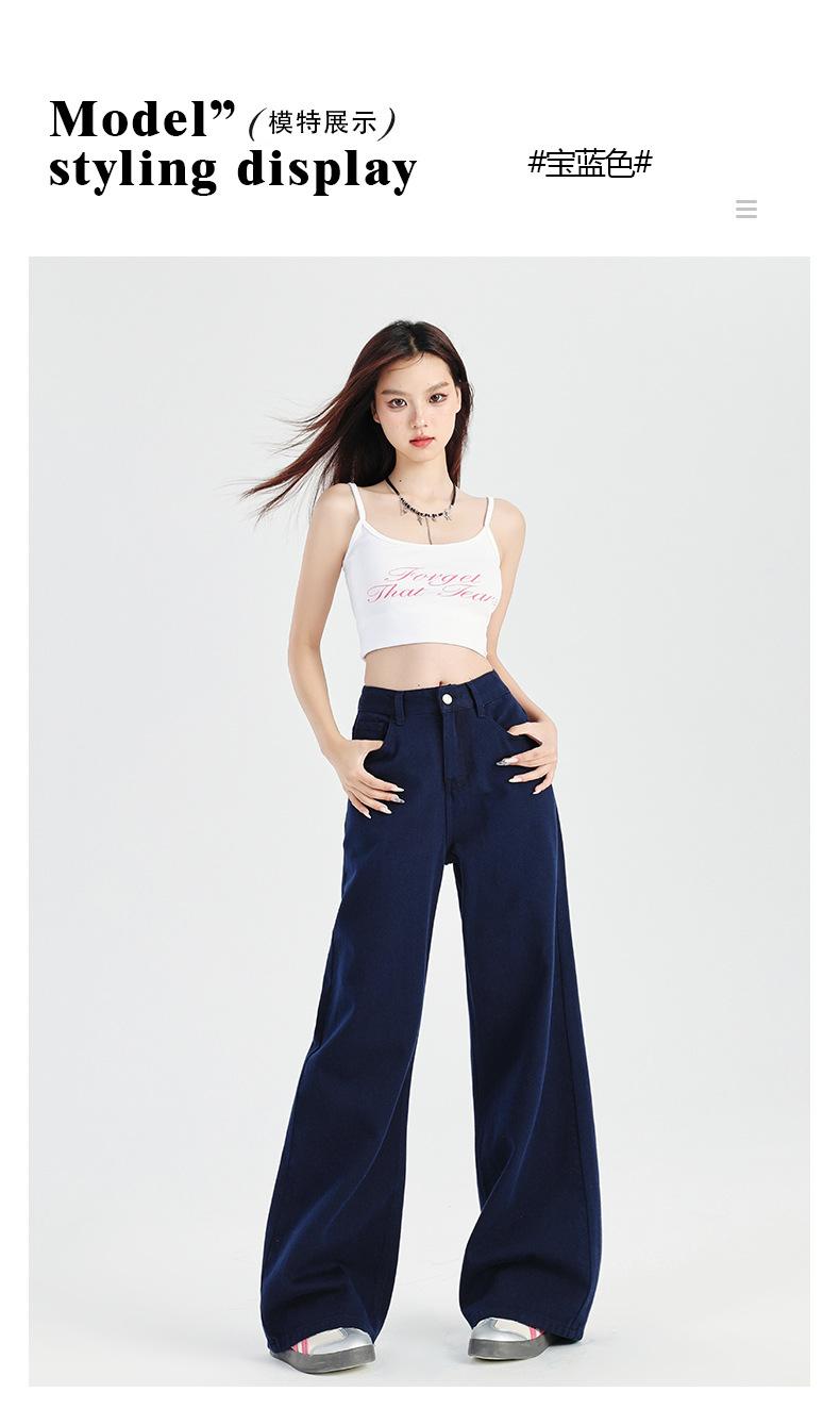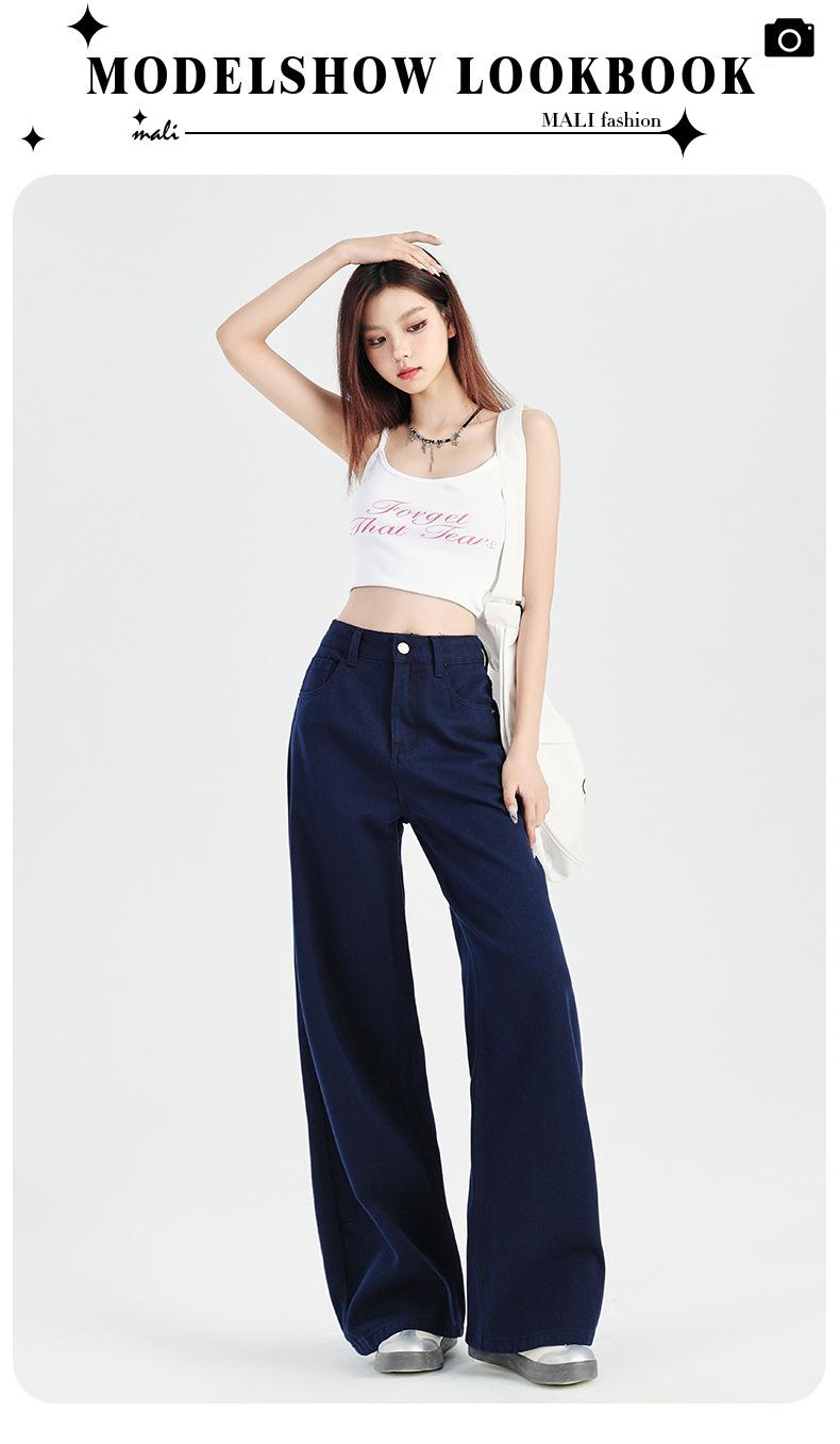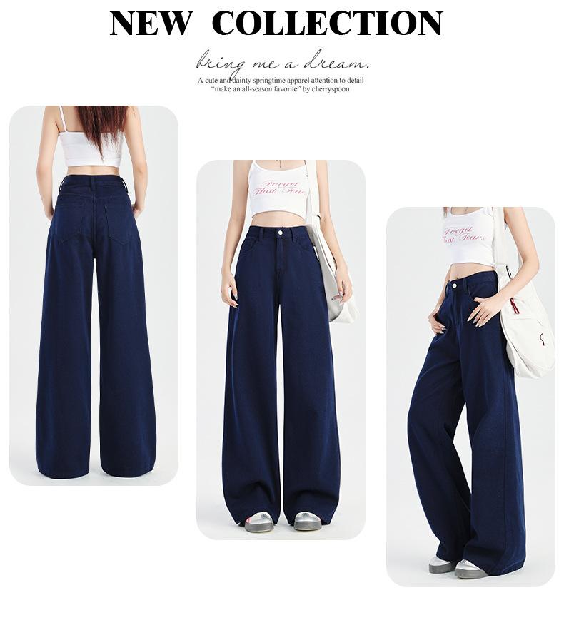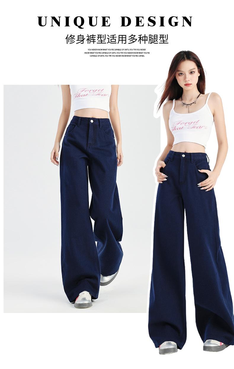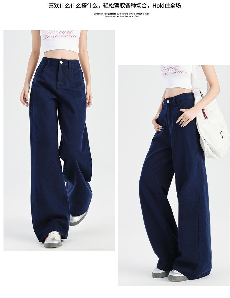 Ventas Directas de Fábrica Cintura Alta Retro Azul Real Azul Marino Lavado Suelto Adelgazante Pierna Recta Pierna Ancha Jeans