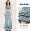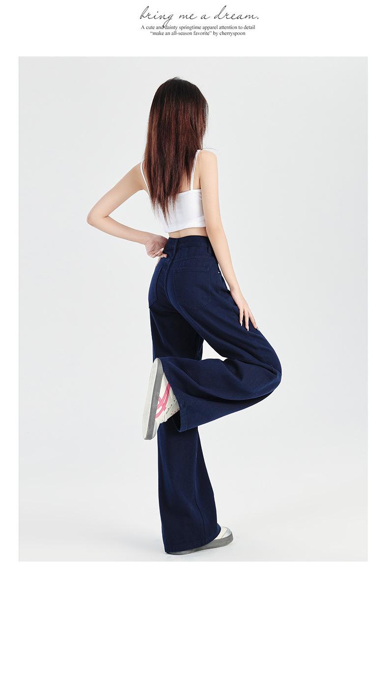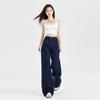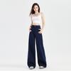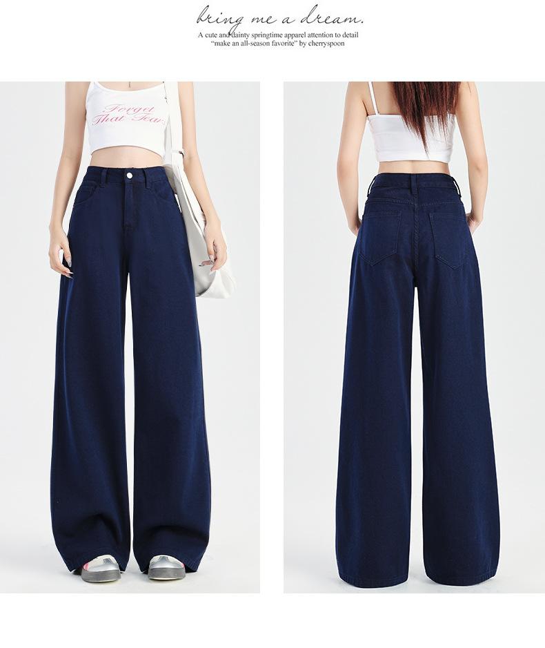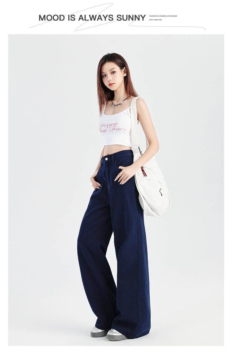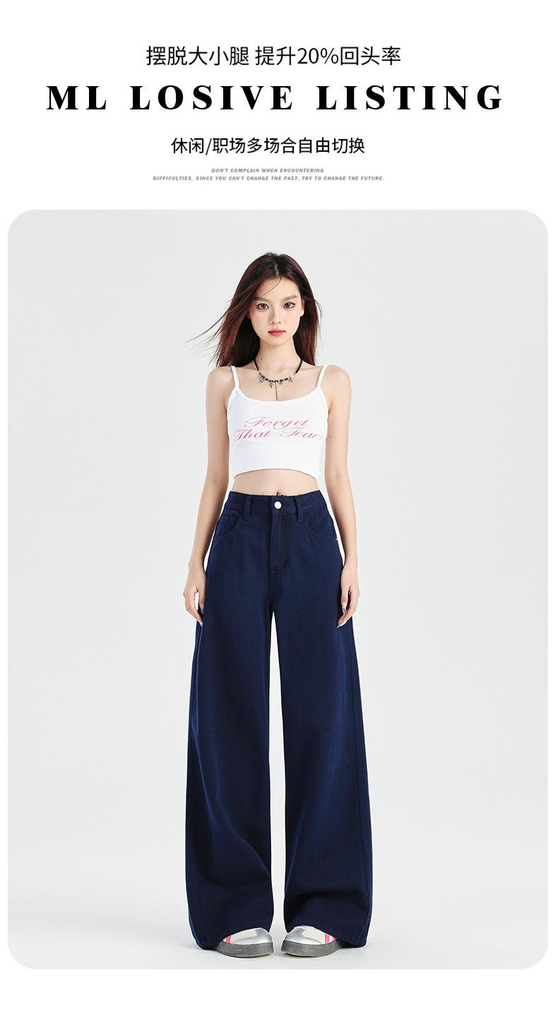 Ventas Directas de Fábrica Cintura Alta Retro Azul Real Azul Marino Lavado Suelto Adelgazante Pierna Recta Pierna Ancha Jeans