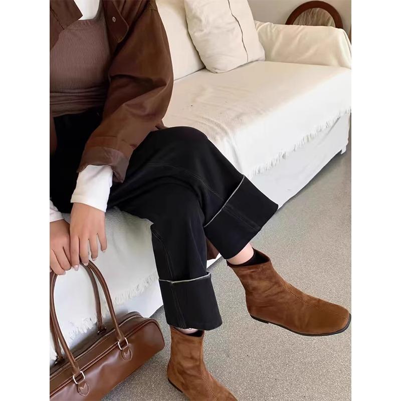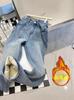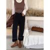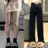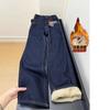 Jeans Rectos Negros para Mujer Otoño e Invierno con forro polar talla grande chica gordita Sueltos Adelgazantes Forma de Pera Pantalones Recortados de Pierna Ancha