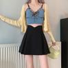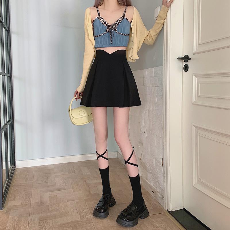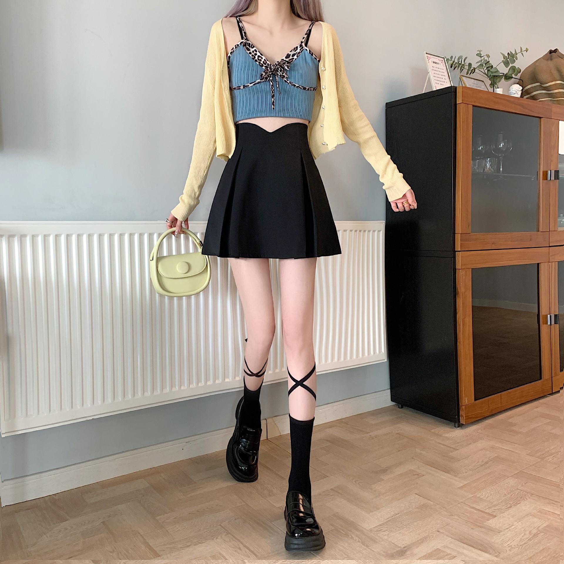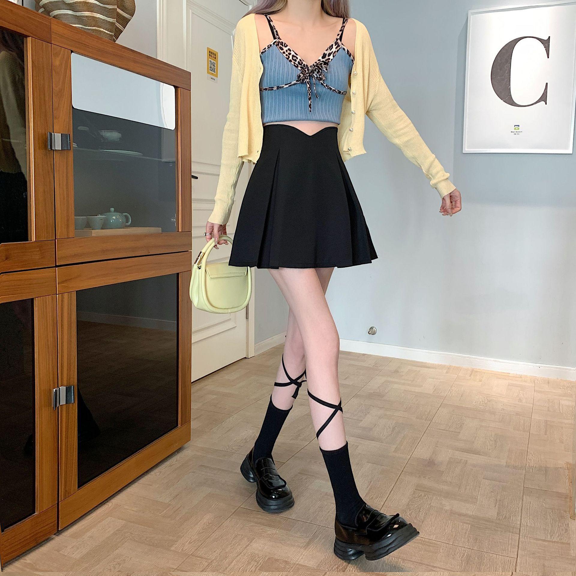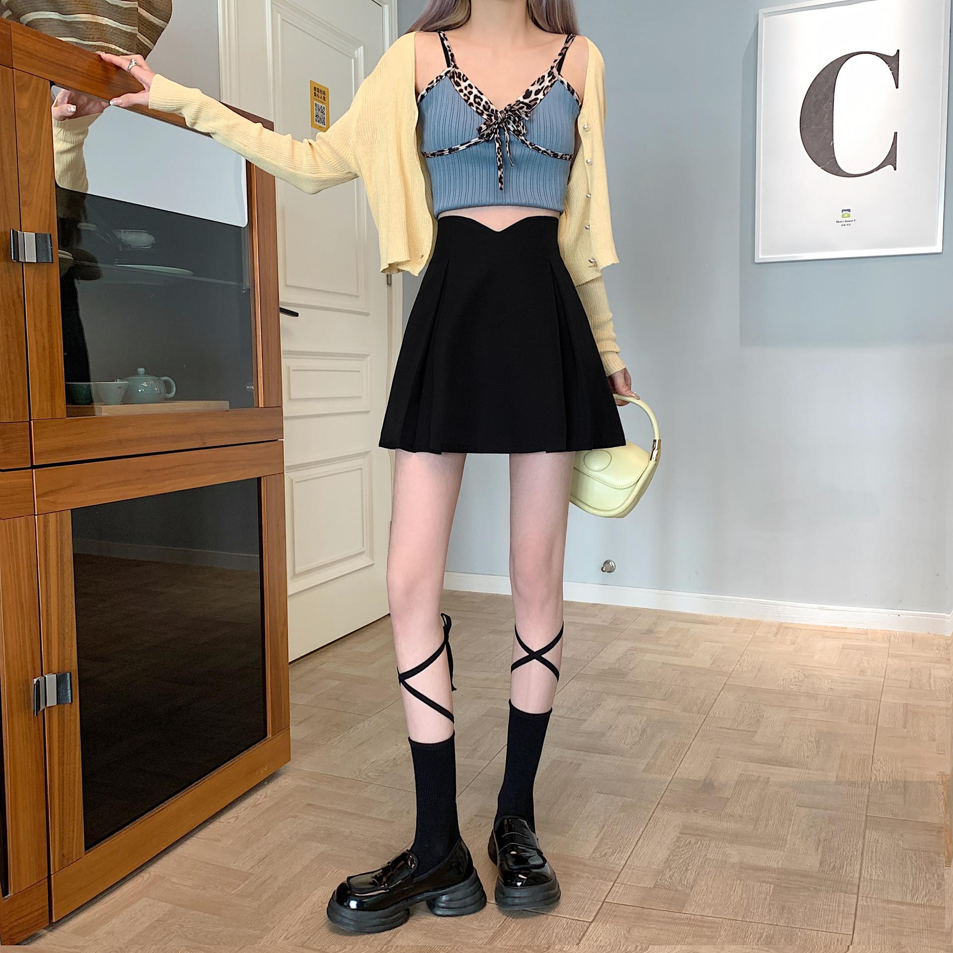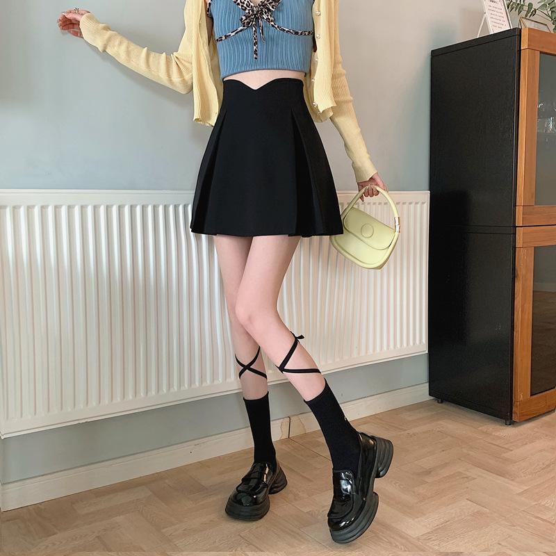 Falda Midi de Traje Irregular Negra para Mujer Primavera Forma de Pera Cintura Alta Línea A Falda Corta Simple Cómoda Falda Paraguas Plisada