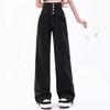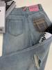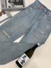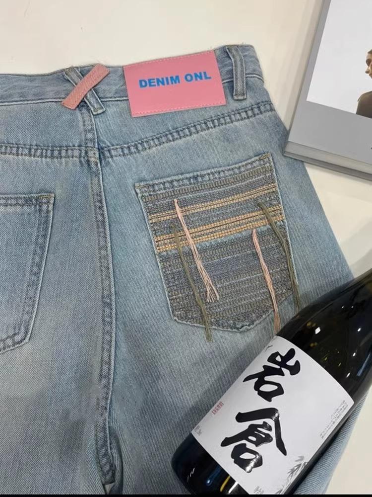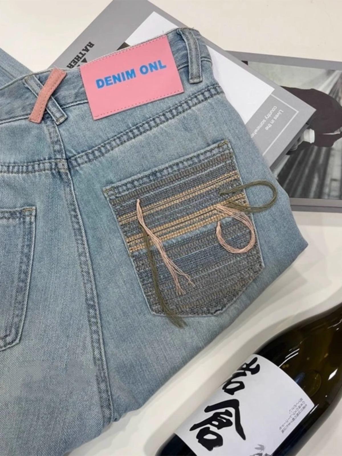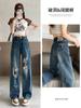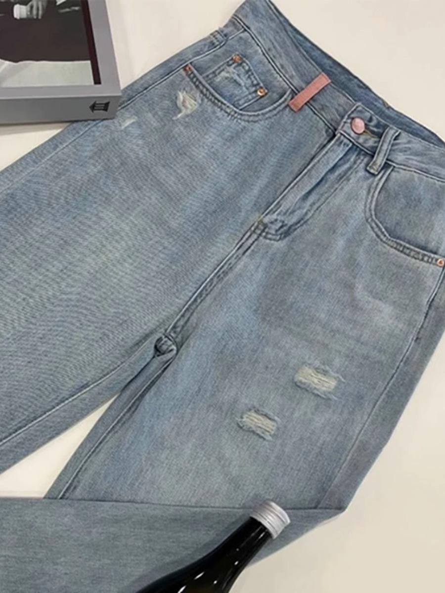 Jeans Rotos de Cintura Alta para Mujer Verano Delgados Diseño Bordado Sensación Sueltos Adelgazantes Pantalones de Pierna Recta