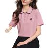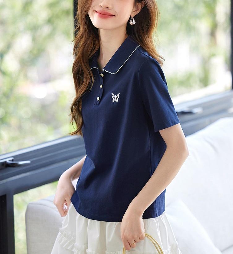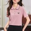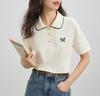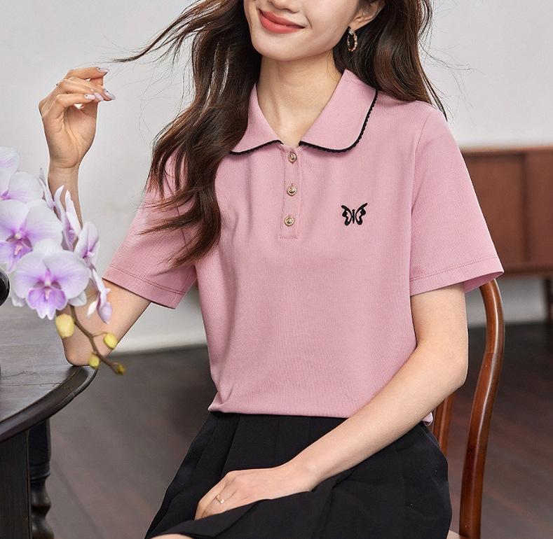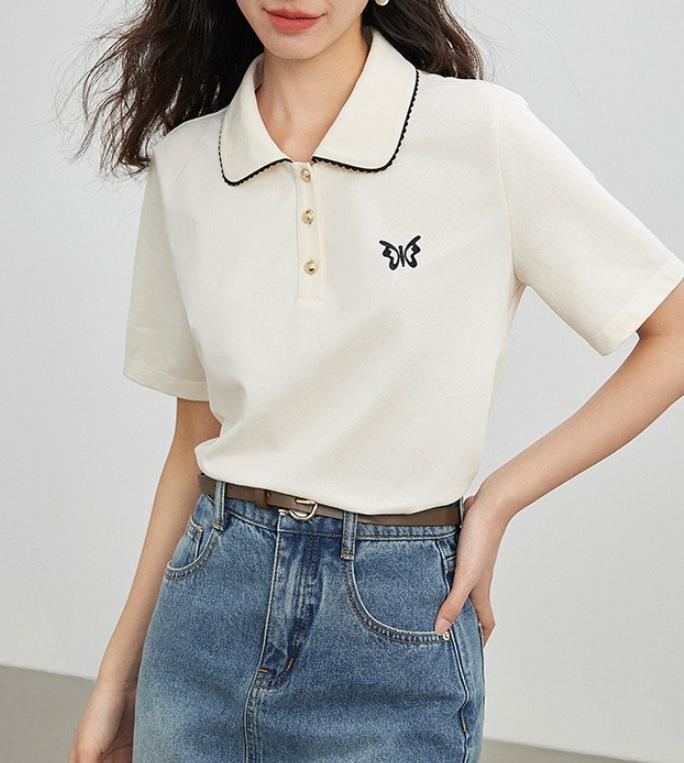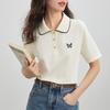 Elegante Cuello de Camisa con Borde Ondulado Camisa POLO Moderna Verano 2025 Nuevo Reductor de Edad Mariposa Suelta Combinable Camiseta de Mujer para Mujer