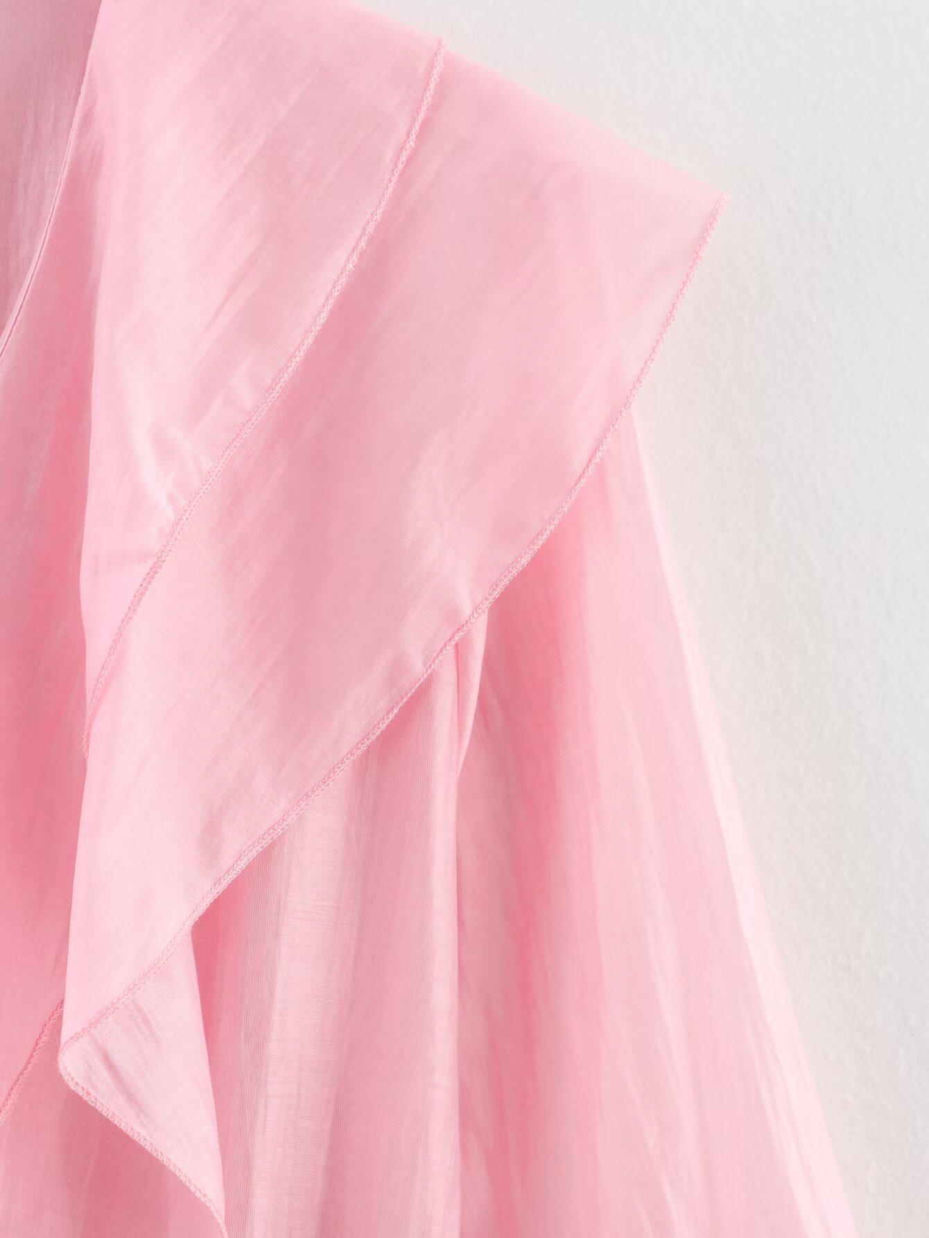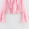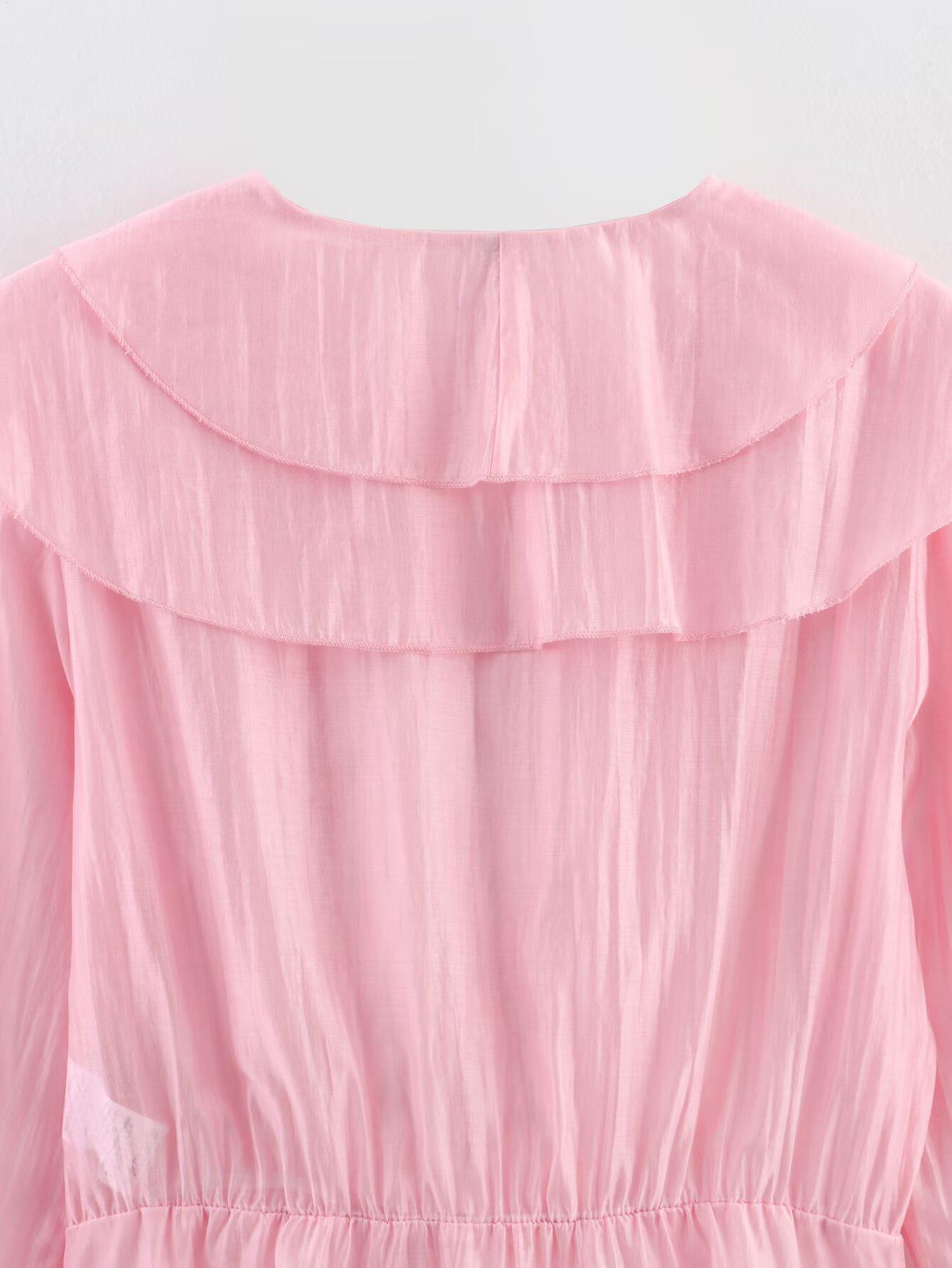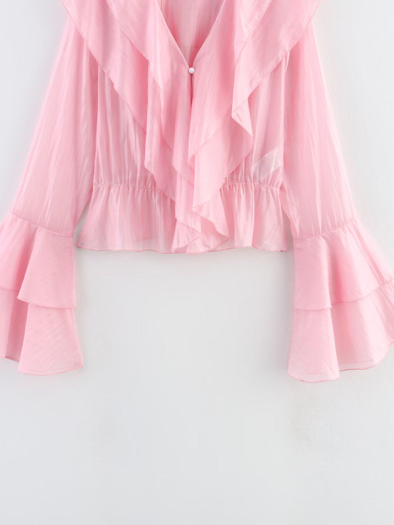 Ropa de Verano para Mujer 2025 Nuevo Estilo Europeo y Americano Moda Sencillo Versátil Manga Larga con Volantes Multicapa Cuello en V