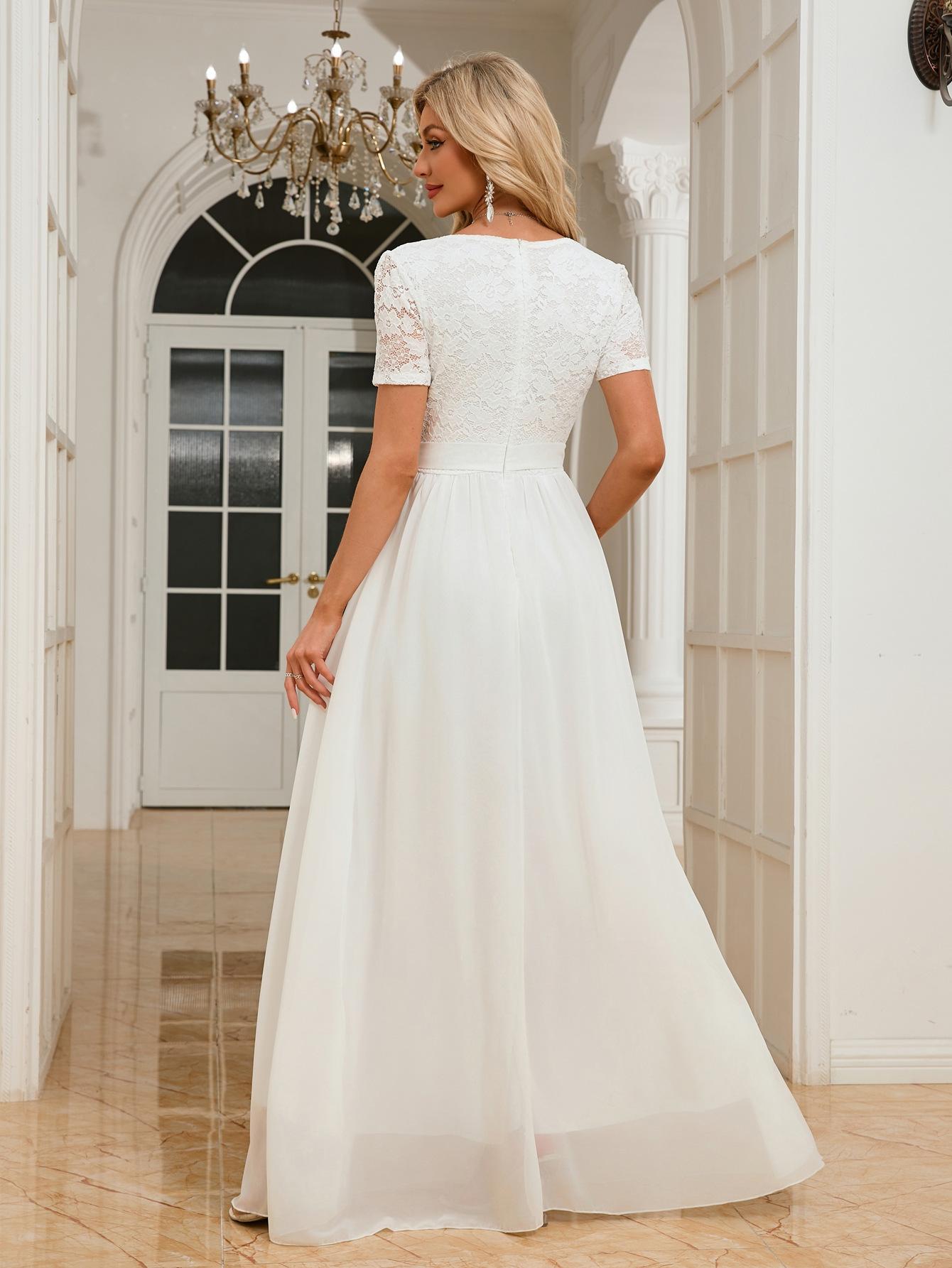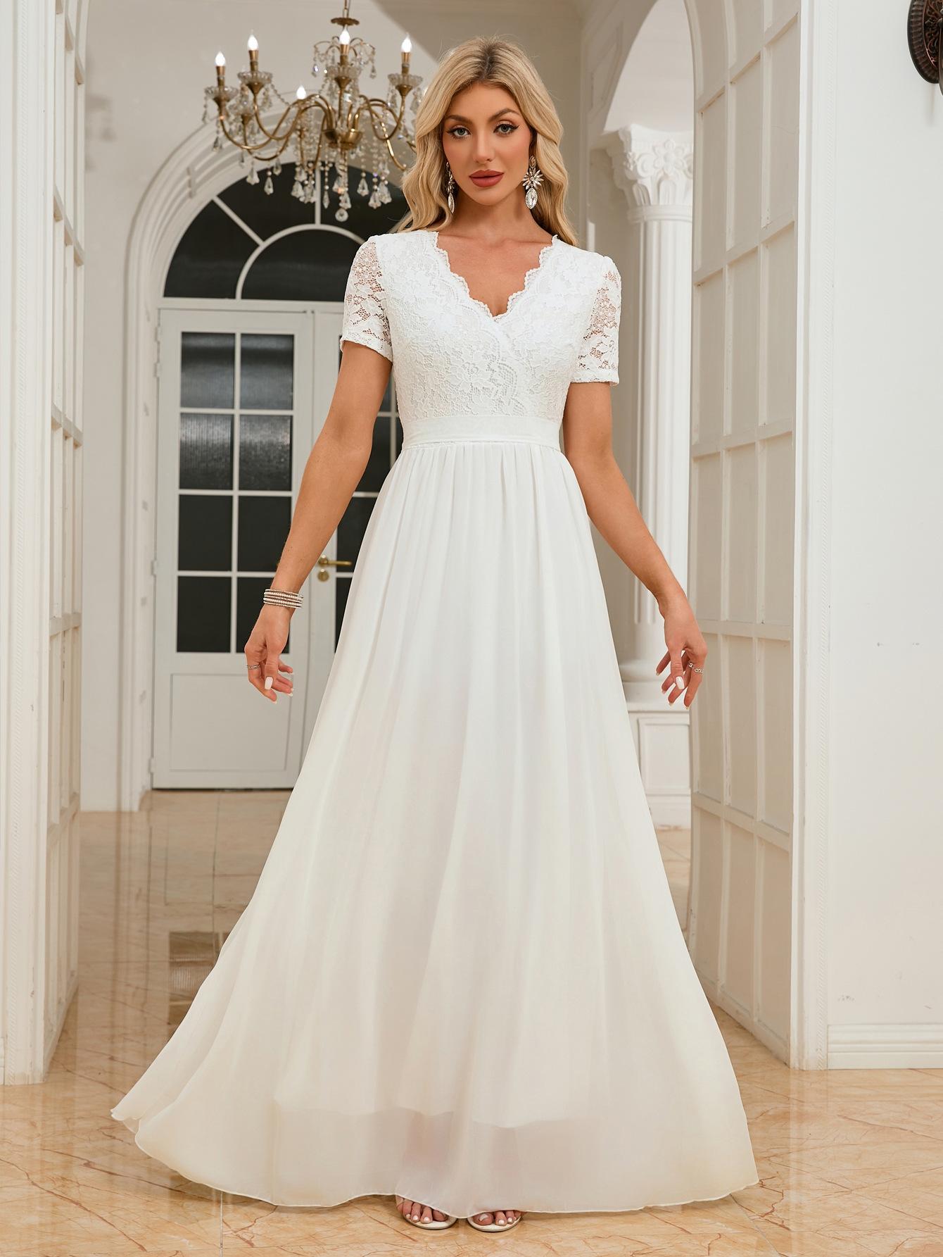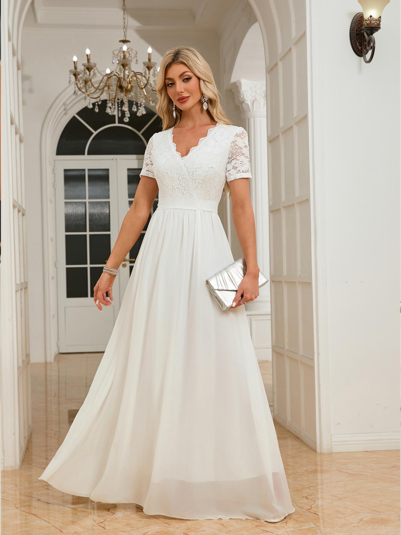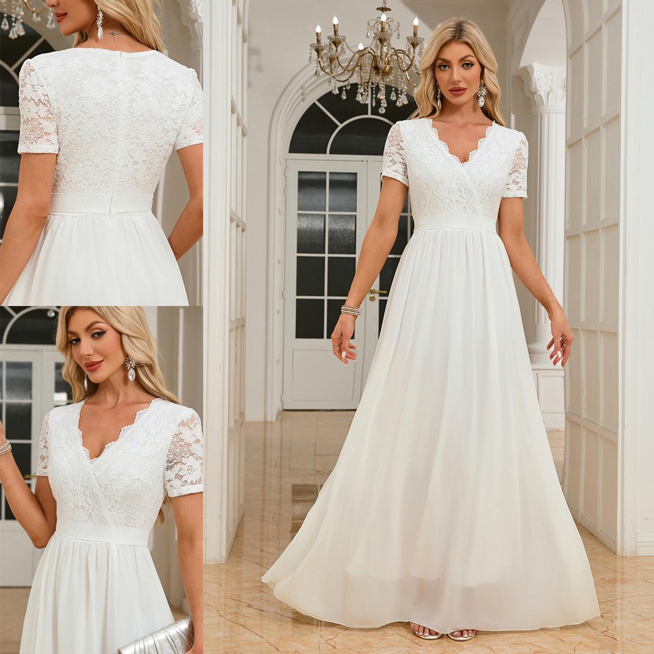 2025 Amazon Nuevo Ropa Europea y Americana Vestido Ajustado de Manga Corta con Cuello en V Vestido de Noche Falda Larga