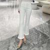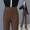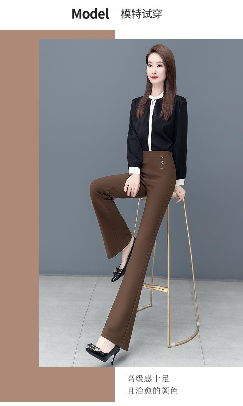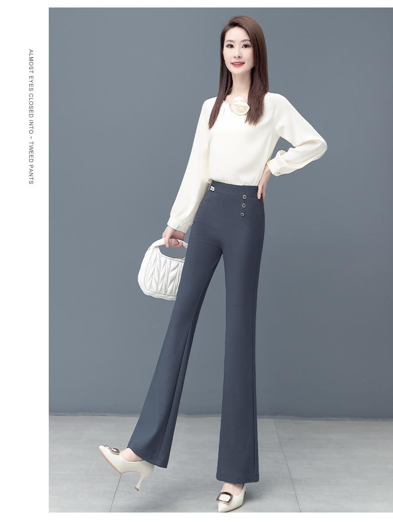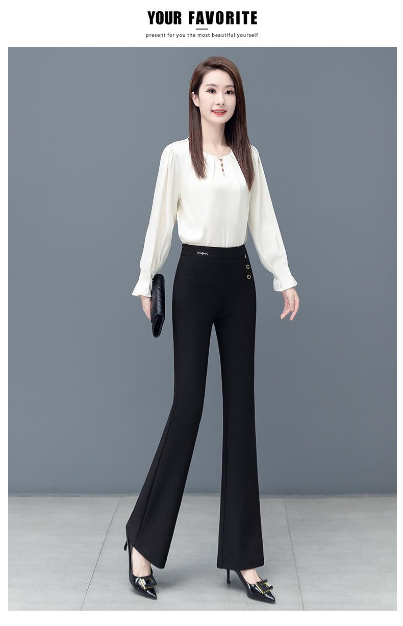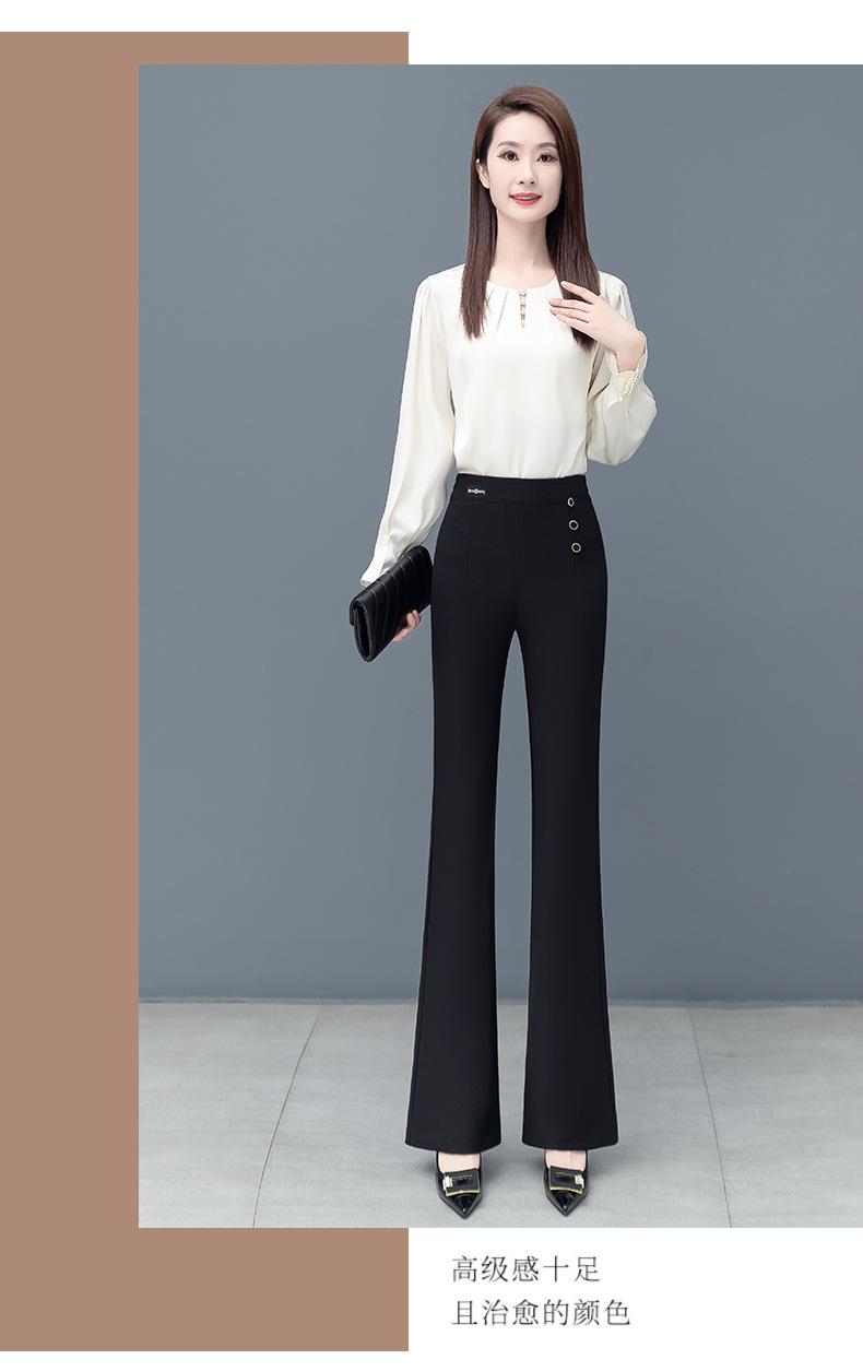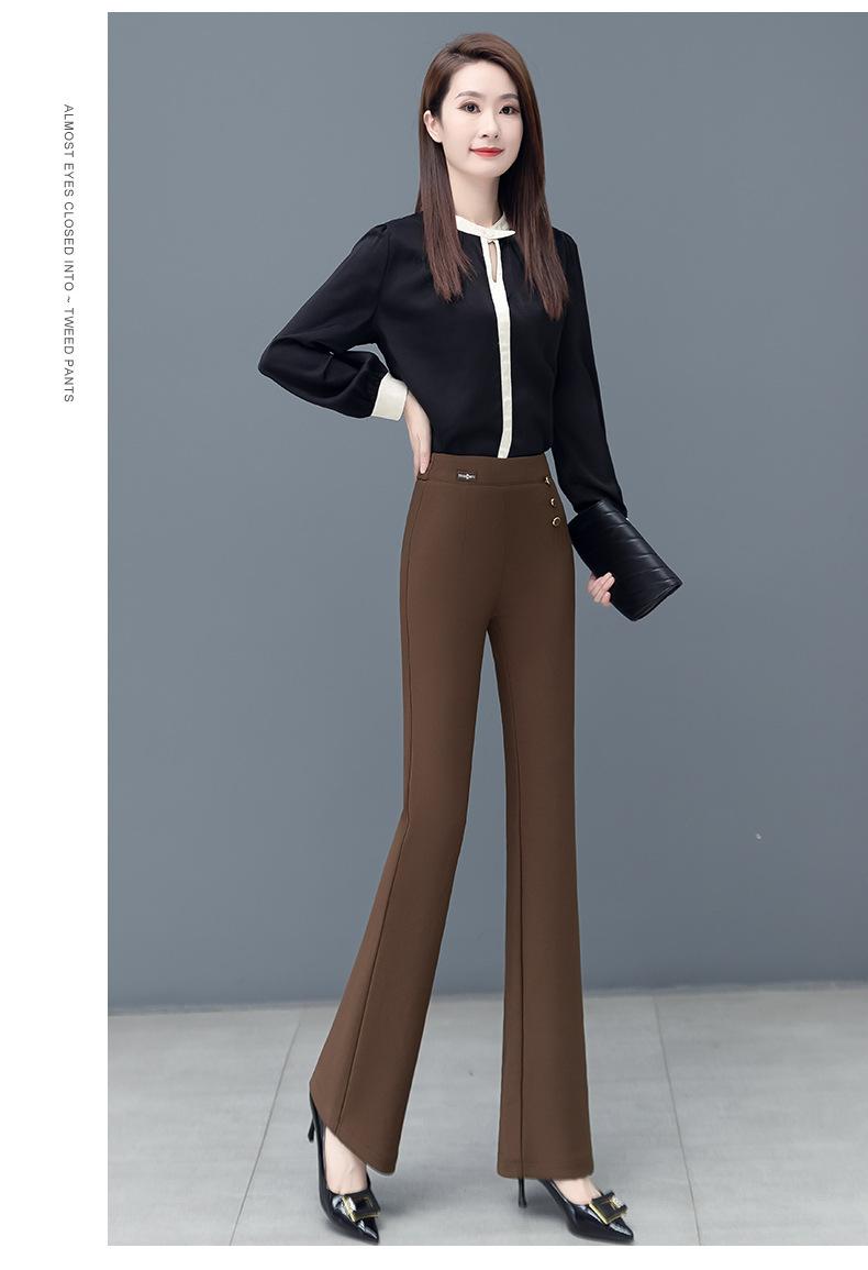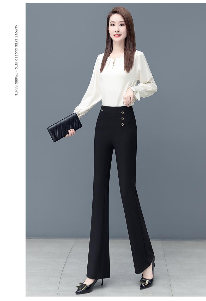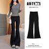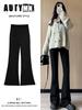 Pantalones Micro Acampanados Negros Mujer Primavera y Otoño 2025 Nuevos Elásticos Cintura Alta Stretch Pantalones de Traje Versátiles Drapeados Adelgazantes Acampanados