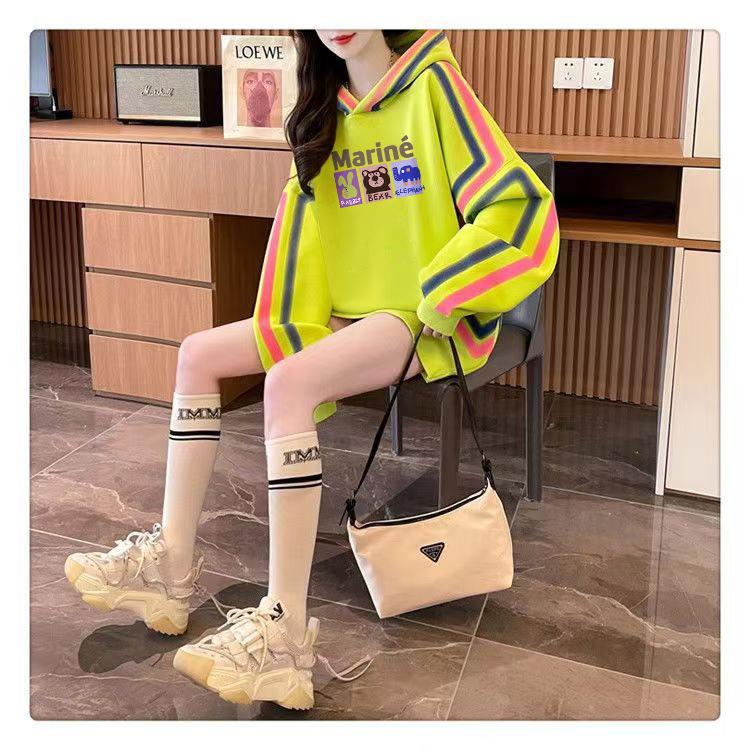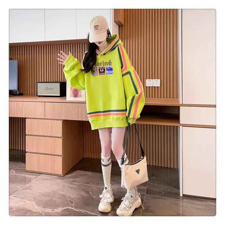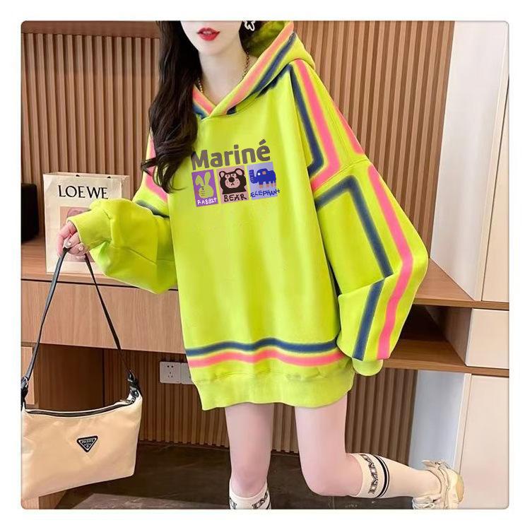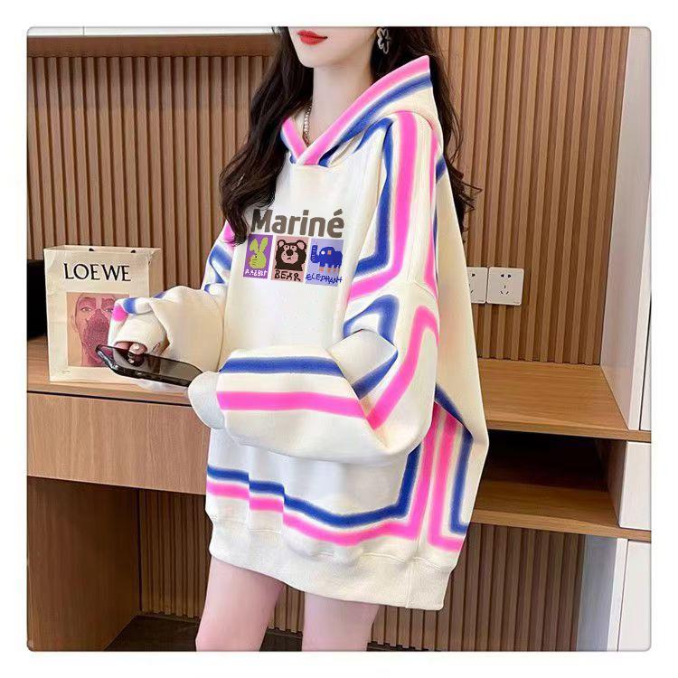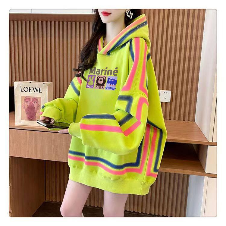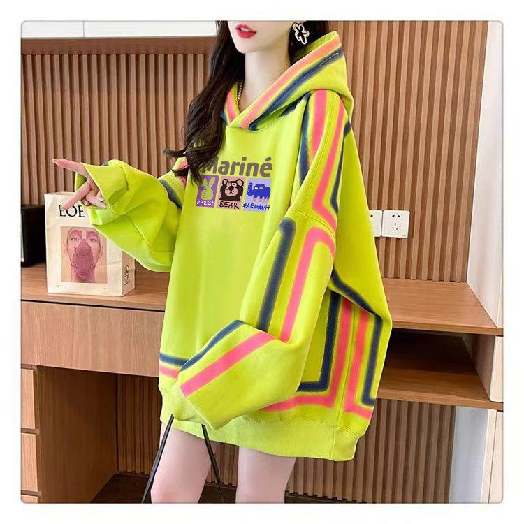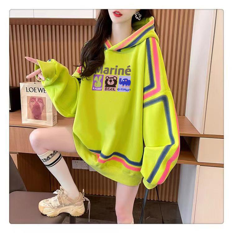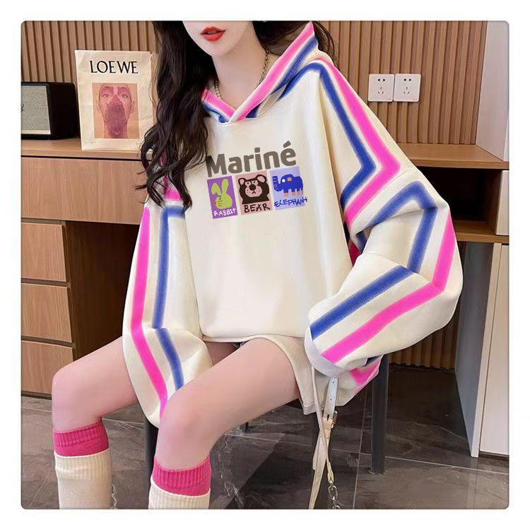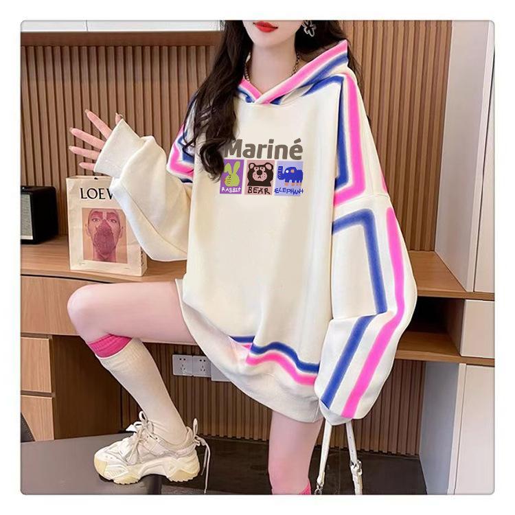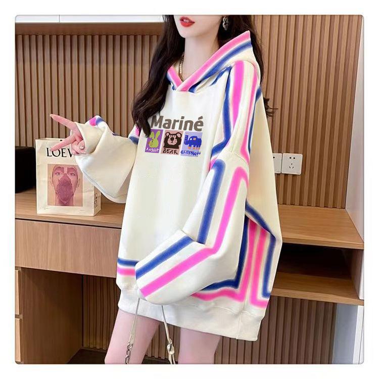 Ins Fun Dibujos Animados Estampado de Letras Otoño e Invierno Moda Sudadera de Felpa Oversize Forrada Gruesa con Aspecto Delgado para Mujer