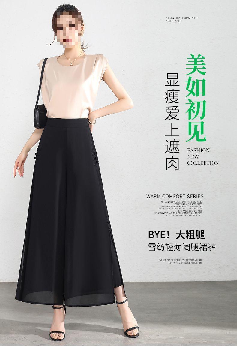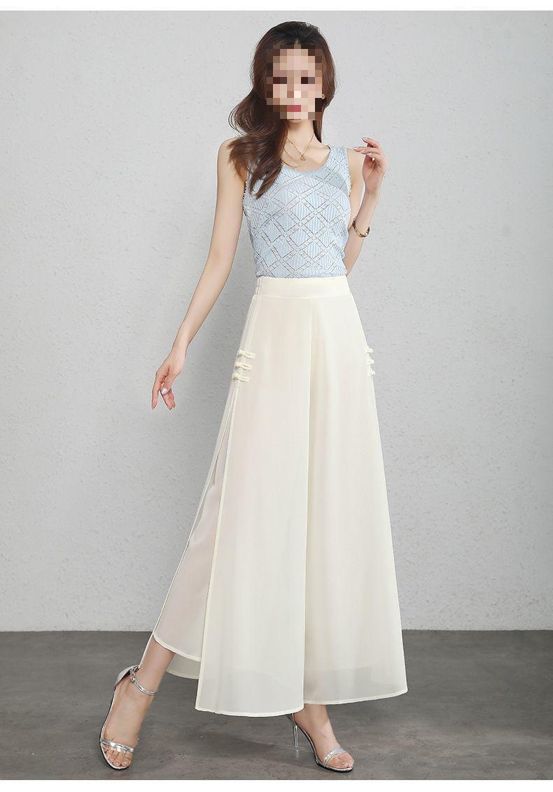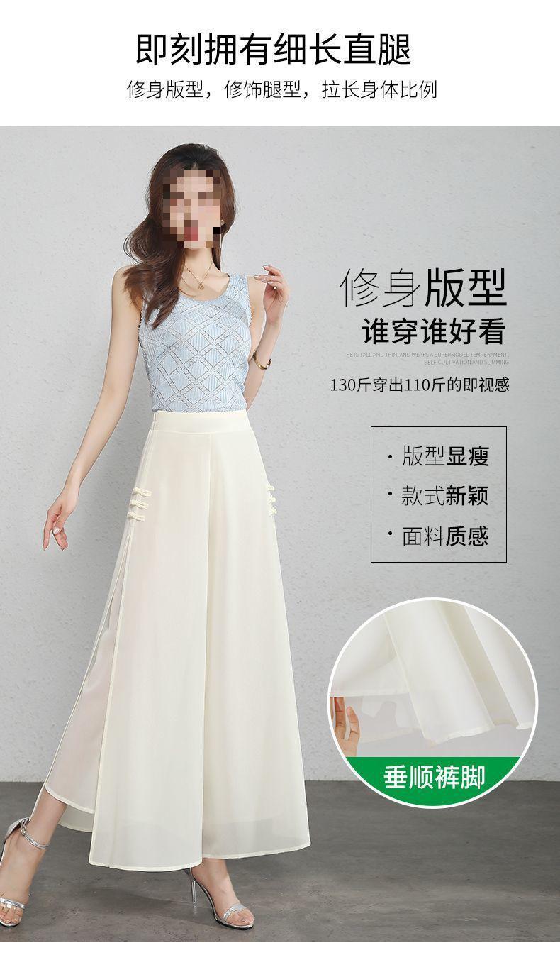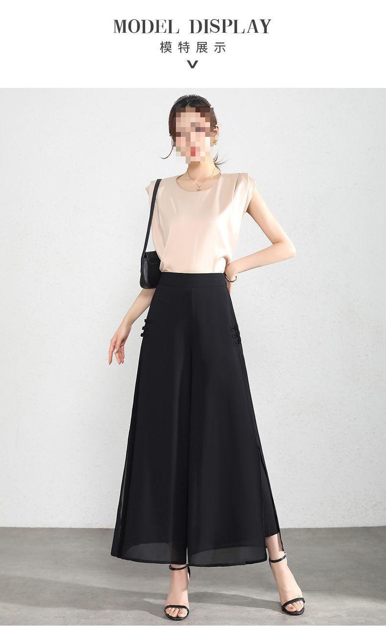 Pantalones Palazzo de Gasa para Mujer con Abertura, Pantalones Culottes Finos de Verano para Mujer 2025 Nuevos, Pantalones A-Line Drapeados de Nueve Puntos de Cintura Alta