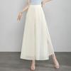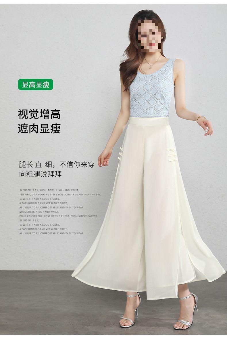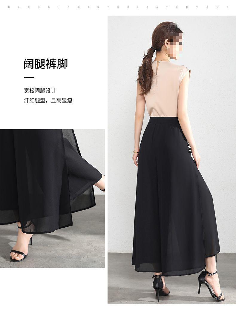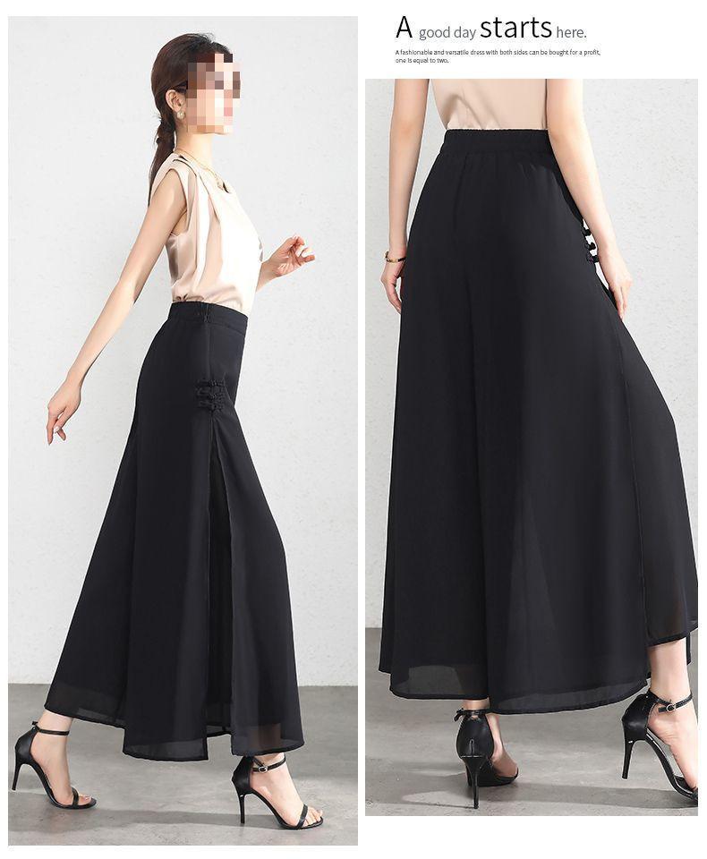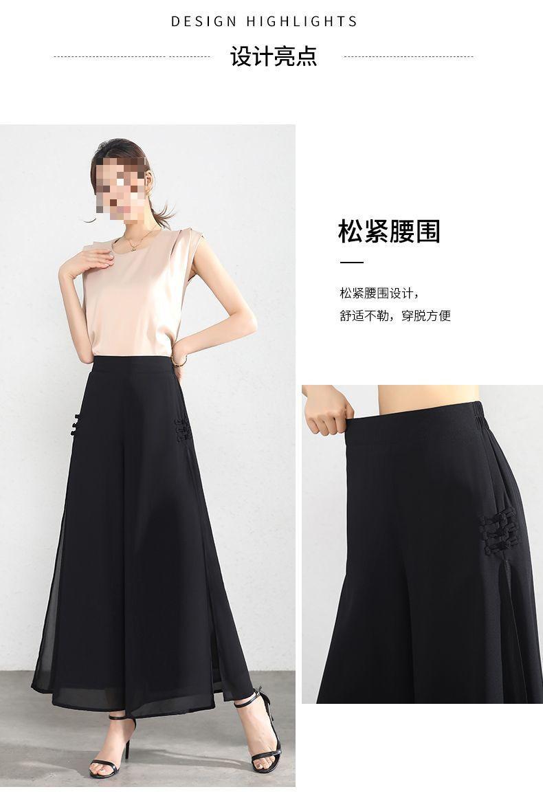 Pantalones Palazzo de Gasa para Mujer con Abertura, Pantalones Culottes Finos de Verano para Mujer 2025 Nuevos, Pantalones A-Line Drapeados de Nueve Puntos de Cintura Alta