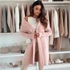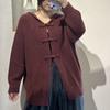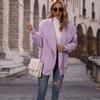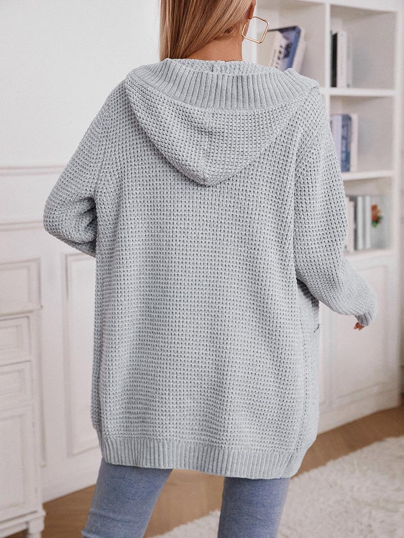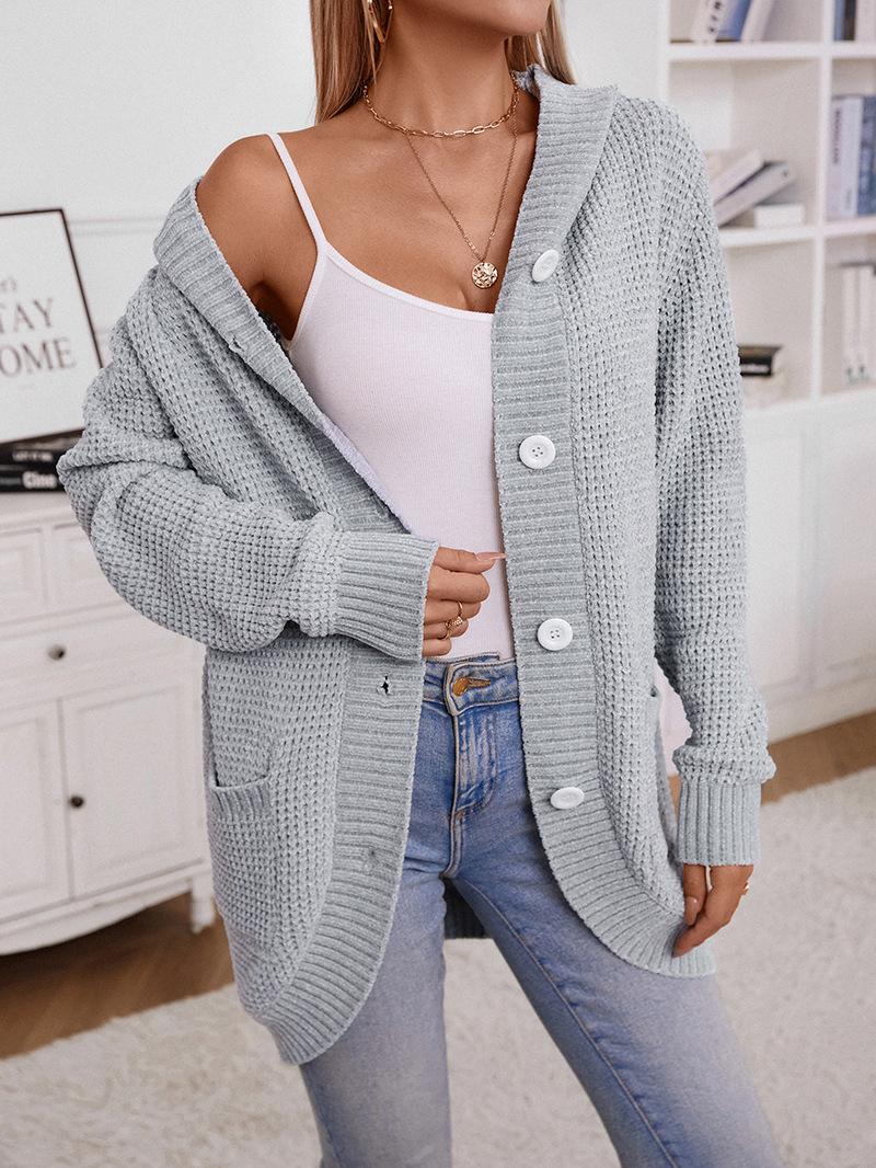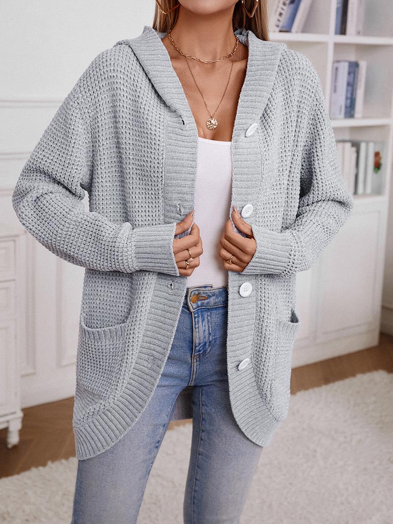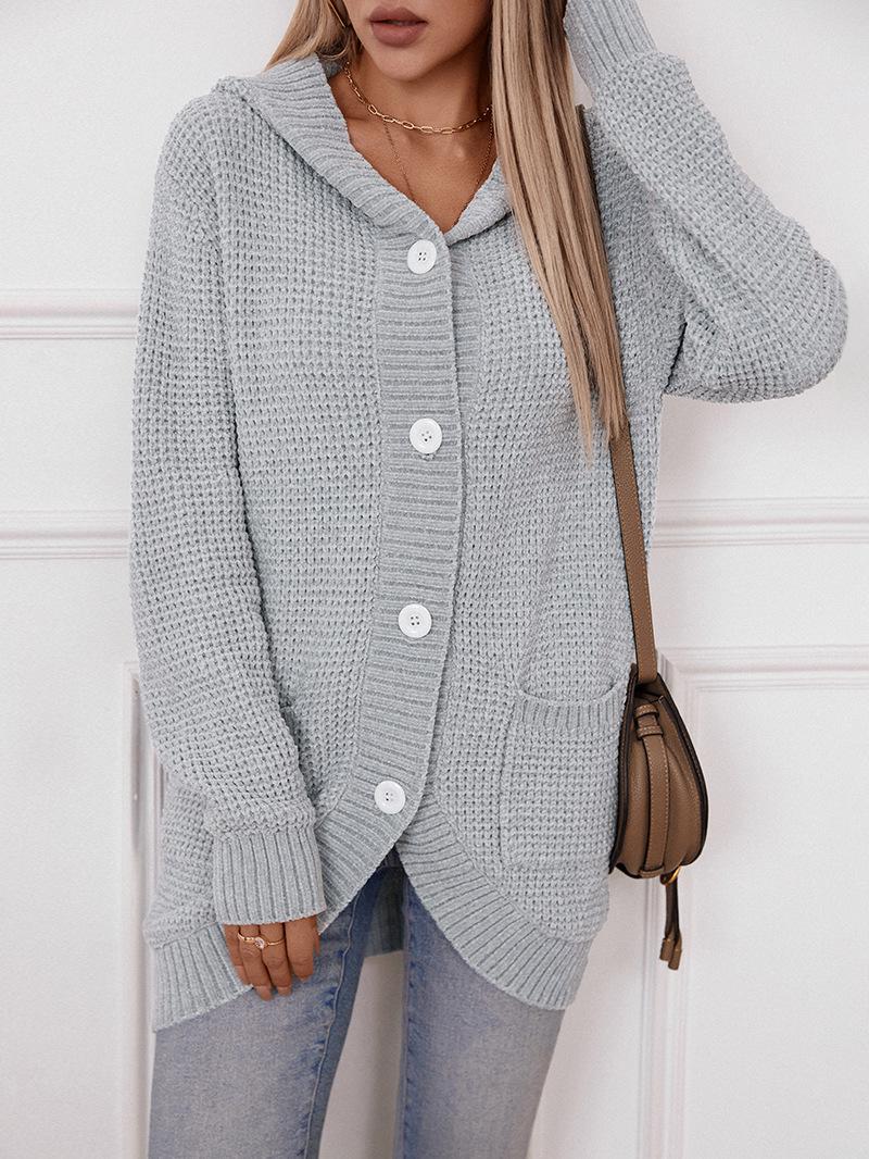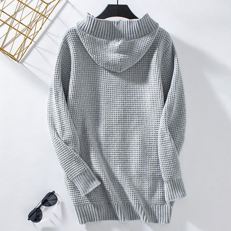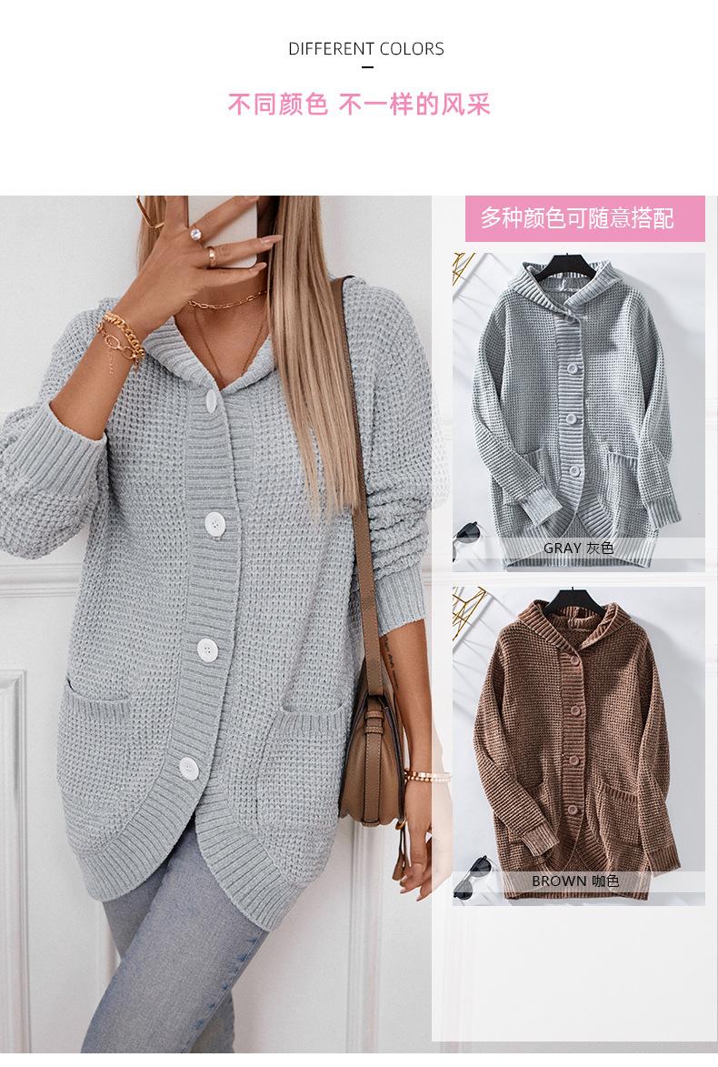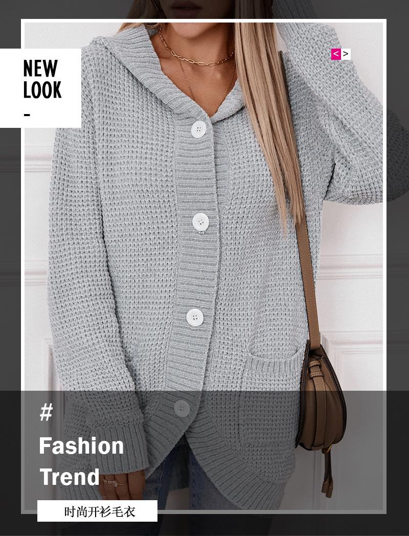 Exportación Transfronteriza Ropa de Punto para Mujer Otoño e Invierno Europeo y Americano con Capucha Color Puro Suelto Largo Medio Cárdigan de Punto con Botones para Mujer