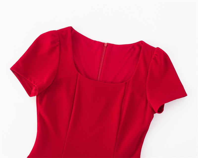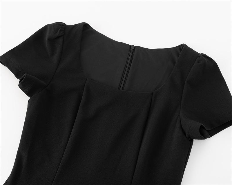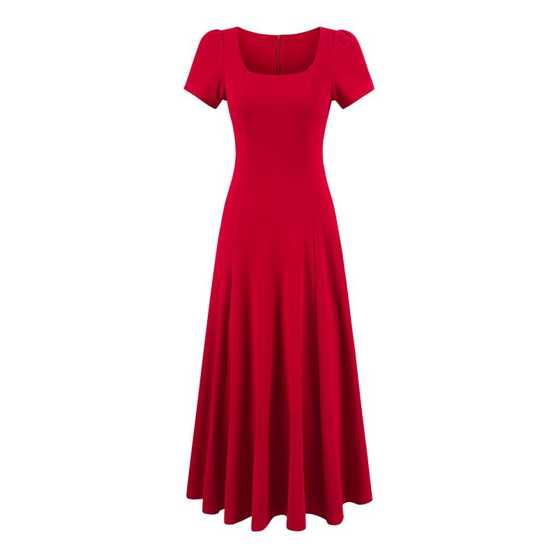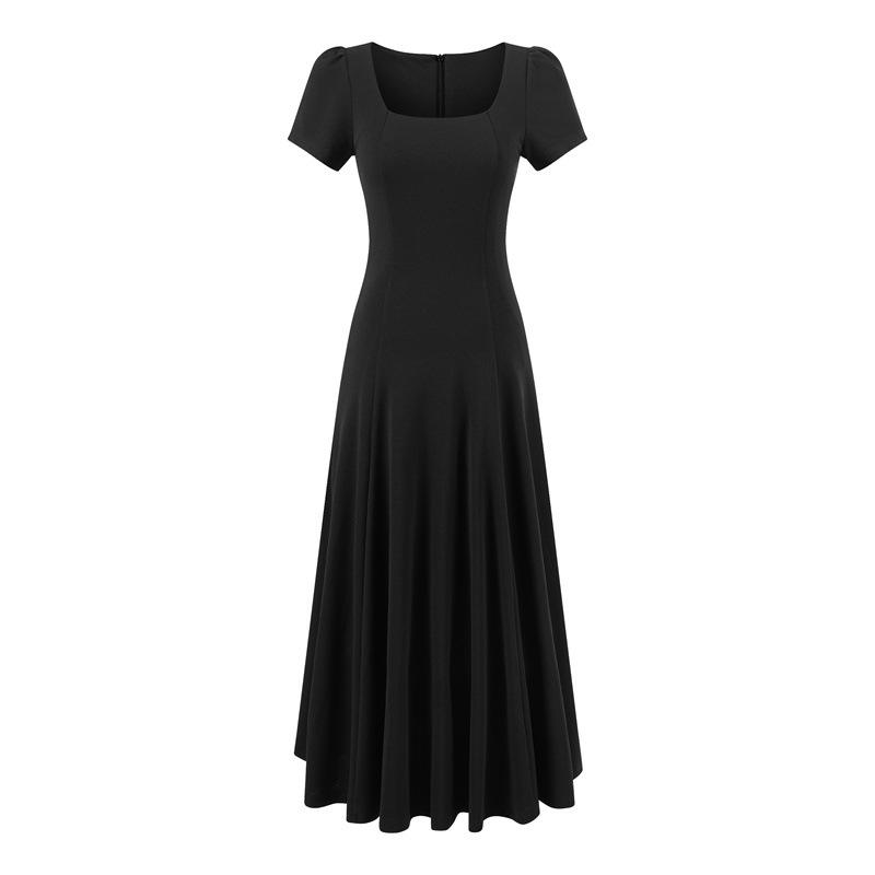 Elegante Vestido de Estilo Francés de Color Sólido con Cuello Cuadrado y Manga Corta 2025 Verano Nuevo Vestido Largo Ajustado con Cintura Entallada para Mujer