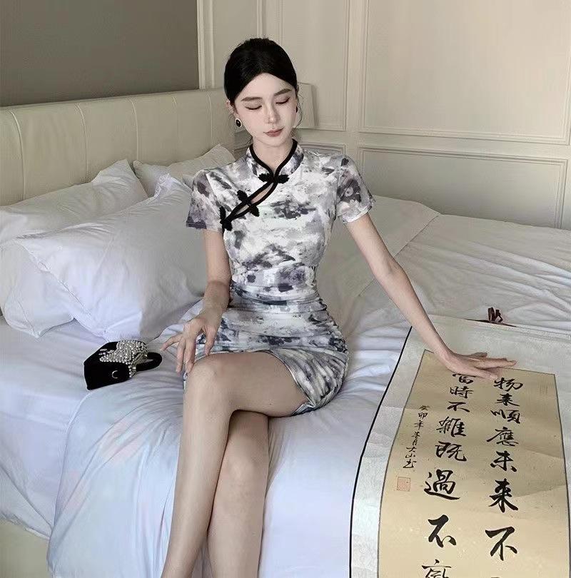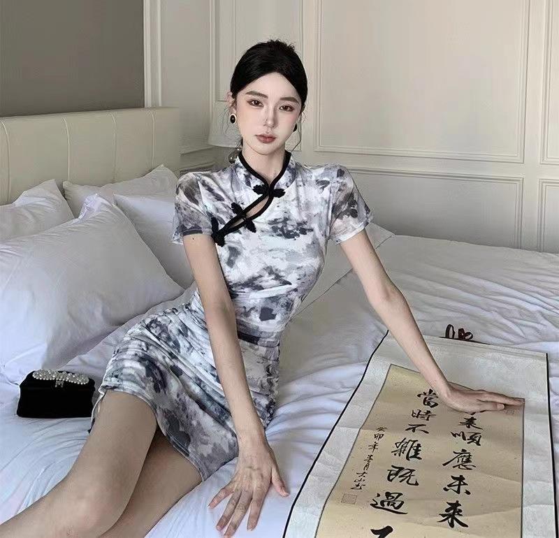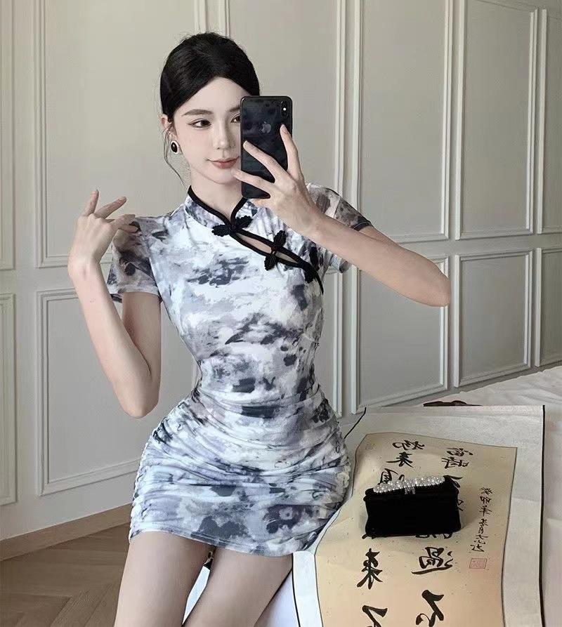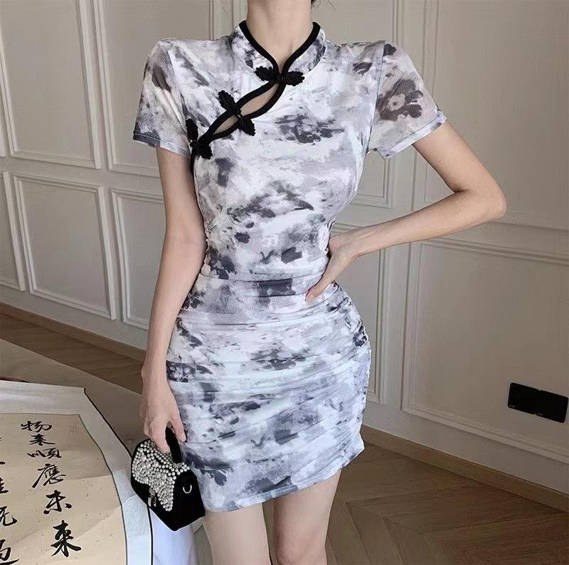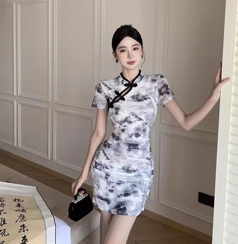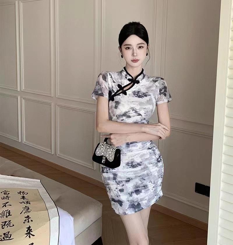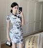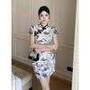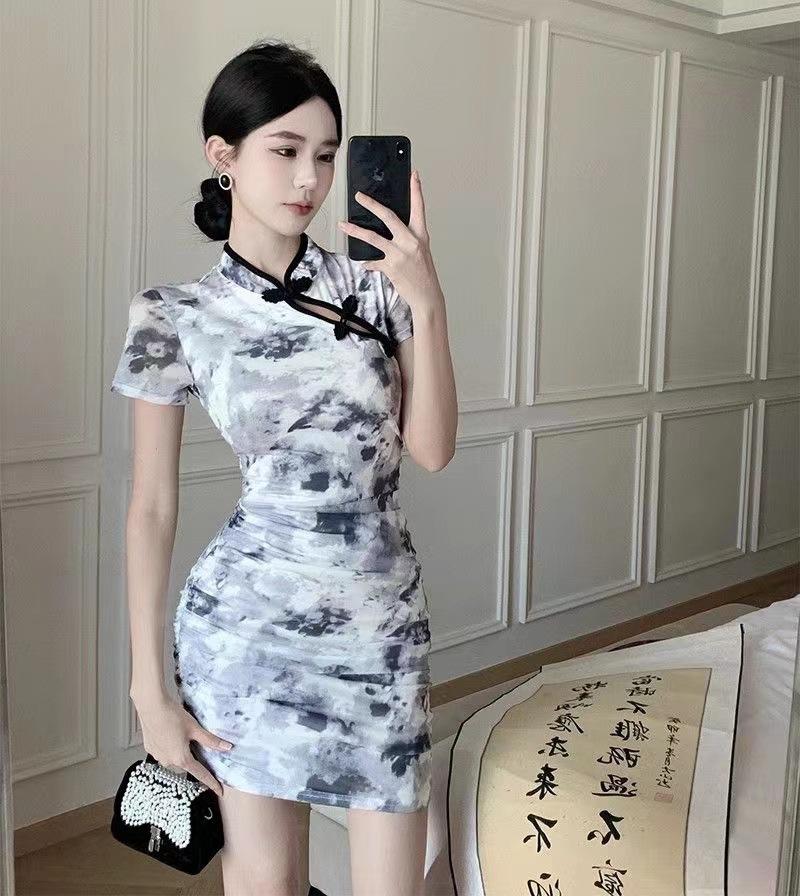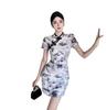 Nuevo cheongsam joven elegante plisado adelgazante corto estilo chino retro floral vestido pequeño de verano para mujer