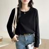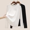 2025 Camiseta Delgada Holgada Adelgazante de Manga Larga para Mujer Otoño Nuevo Versátil Estilo Coreano Atuendo de Chica Picante Top Base para Mujer