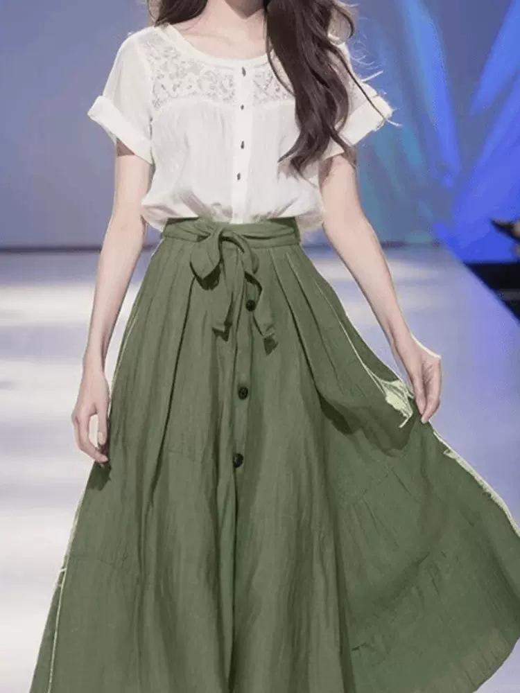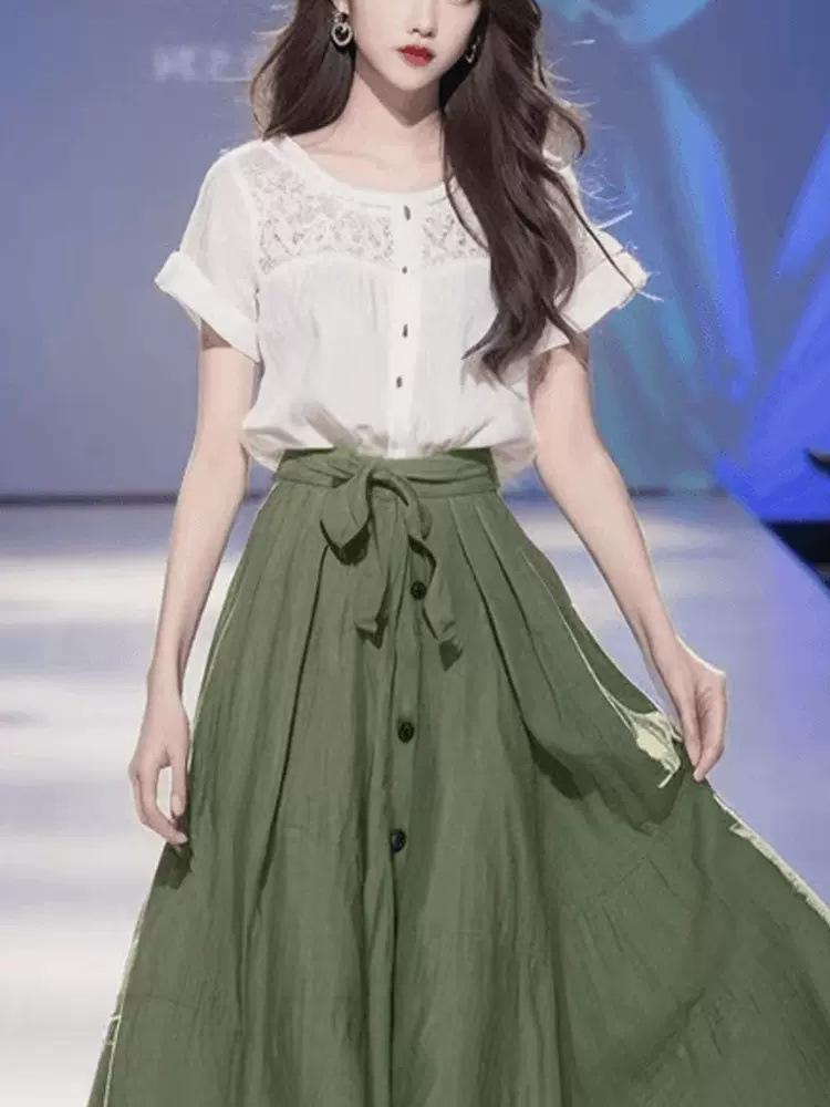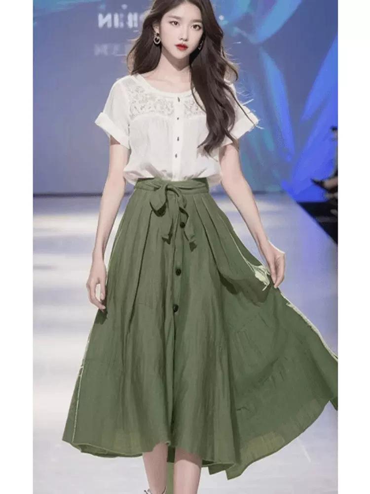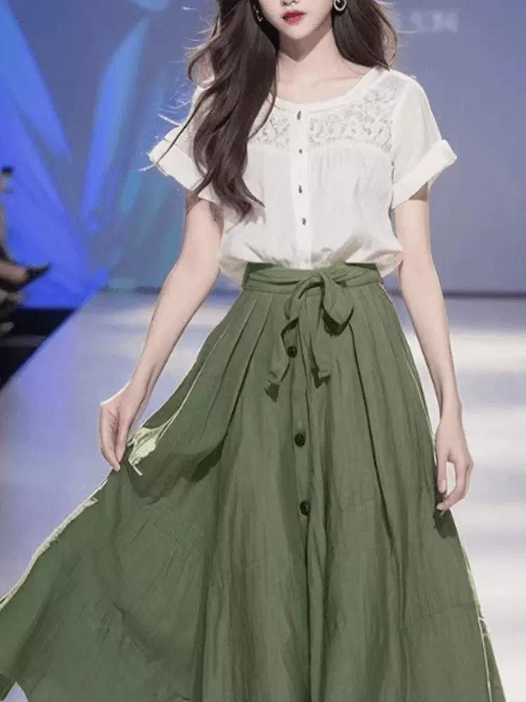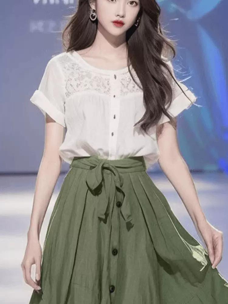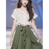 Conjunto de Verano Ootd 2025 para Personas Pequeñas, Estilo Gentil, Moda Dulce, Look Adelgazante de Alta Gama Top y Falda