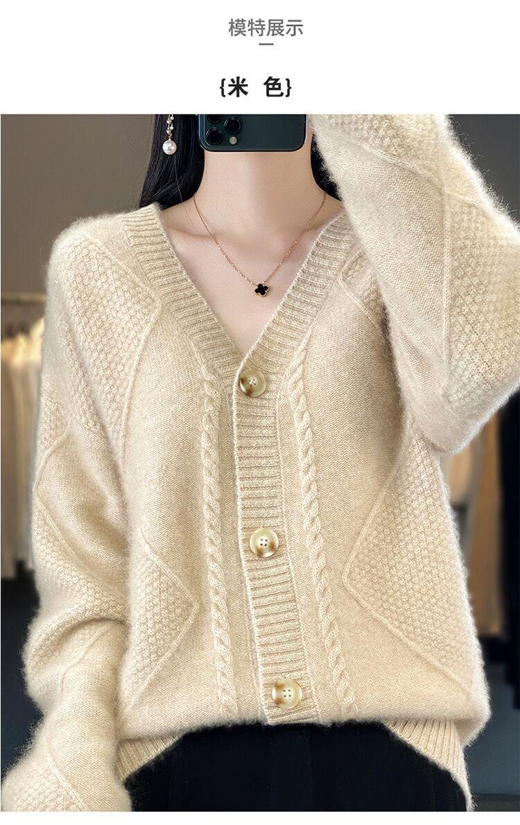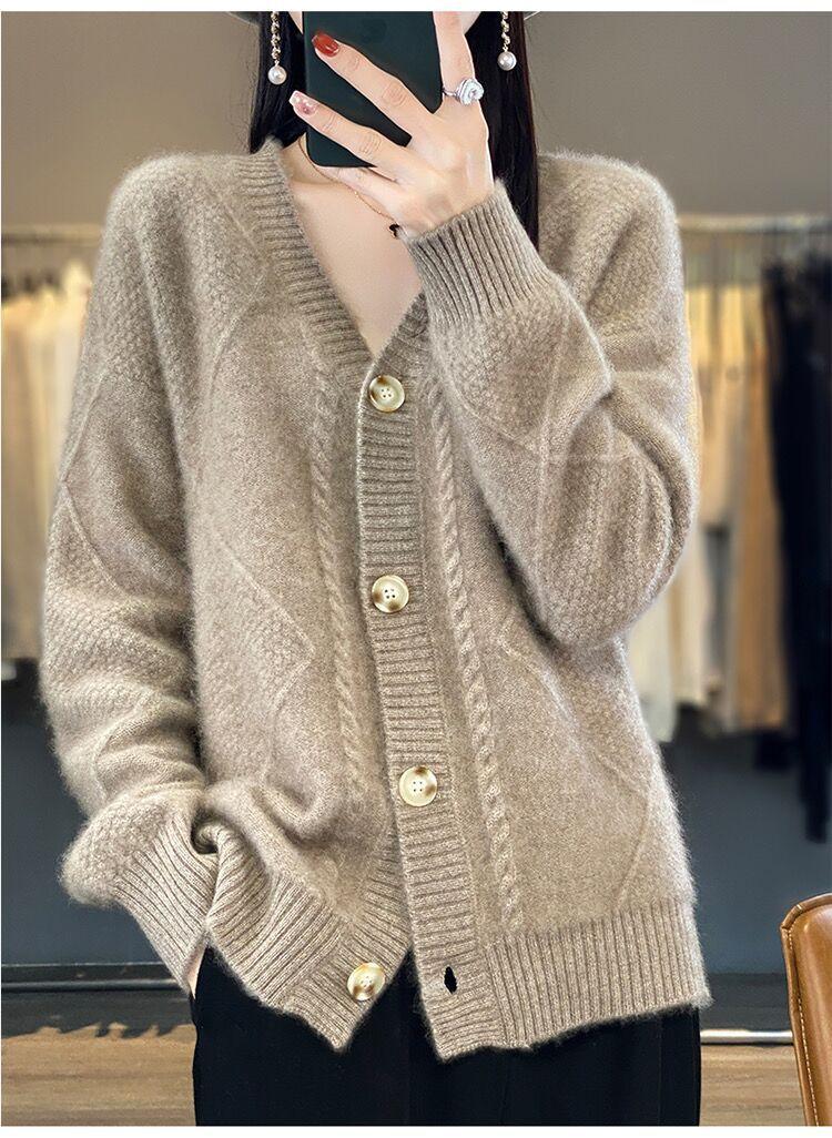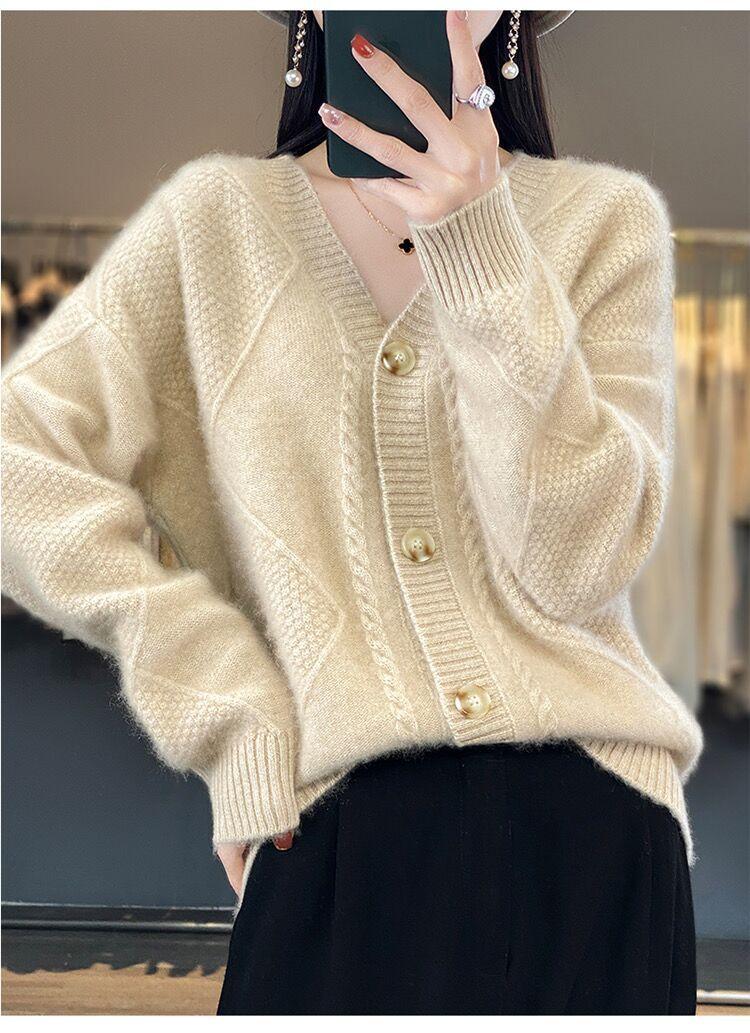2025 Estilo Coreano Otoño e Invierno Nuevo Tejido de Punto Estilo Coreano Suave y Versátil Suelto Retro Trenzado Tejido de Punto de Alta Calidad Ropa Exterior para Mujer