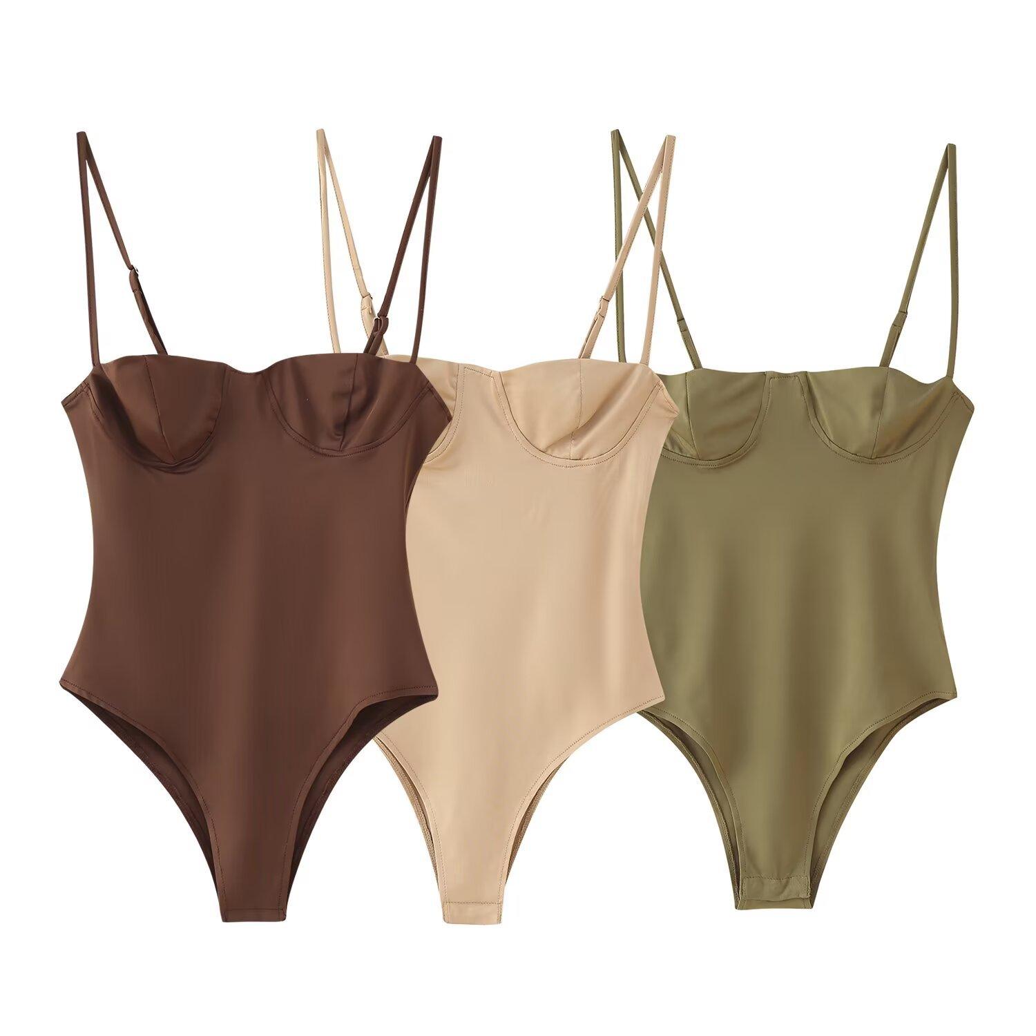 Venta al por mayor de comercio exterior transfronterizo 2025 verano nuevo estilo europeo y americano sexy ajustado color sólido tirantes ropa interior mono mujeres