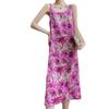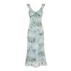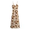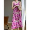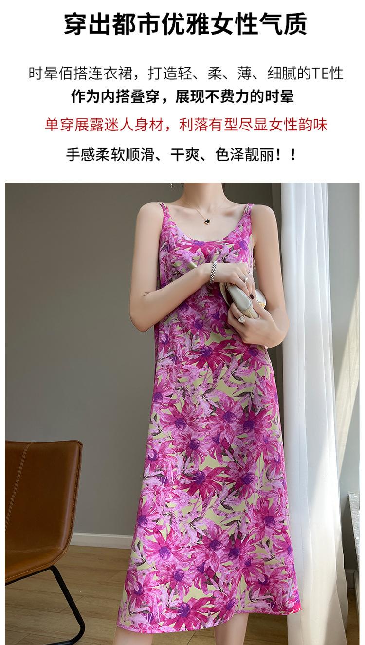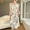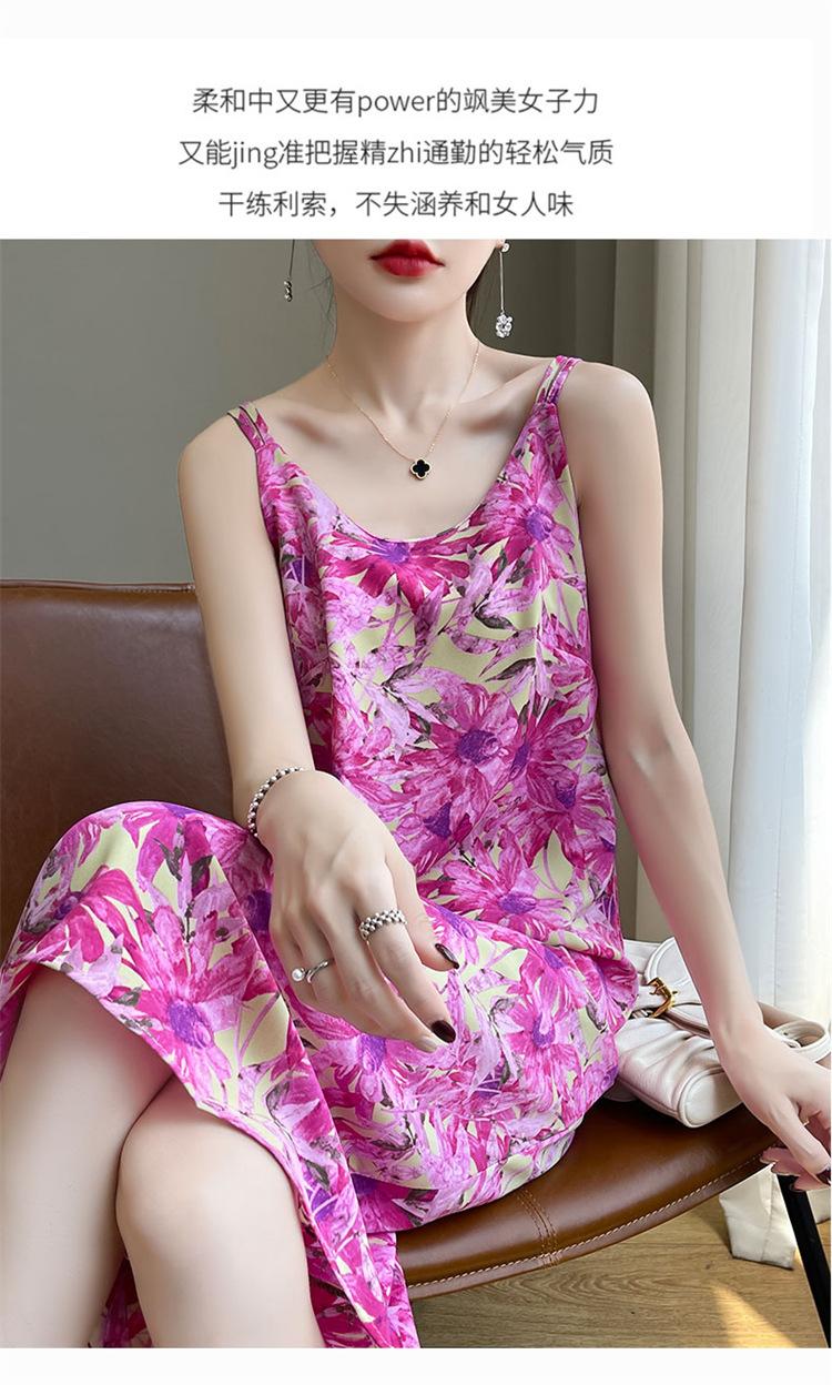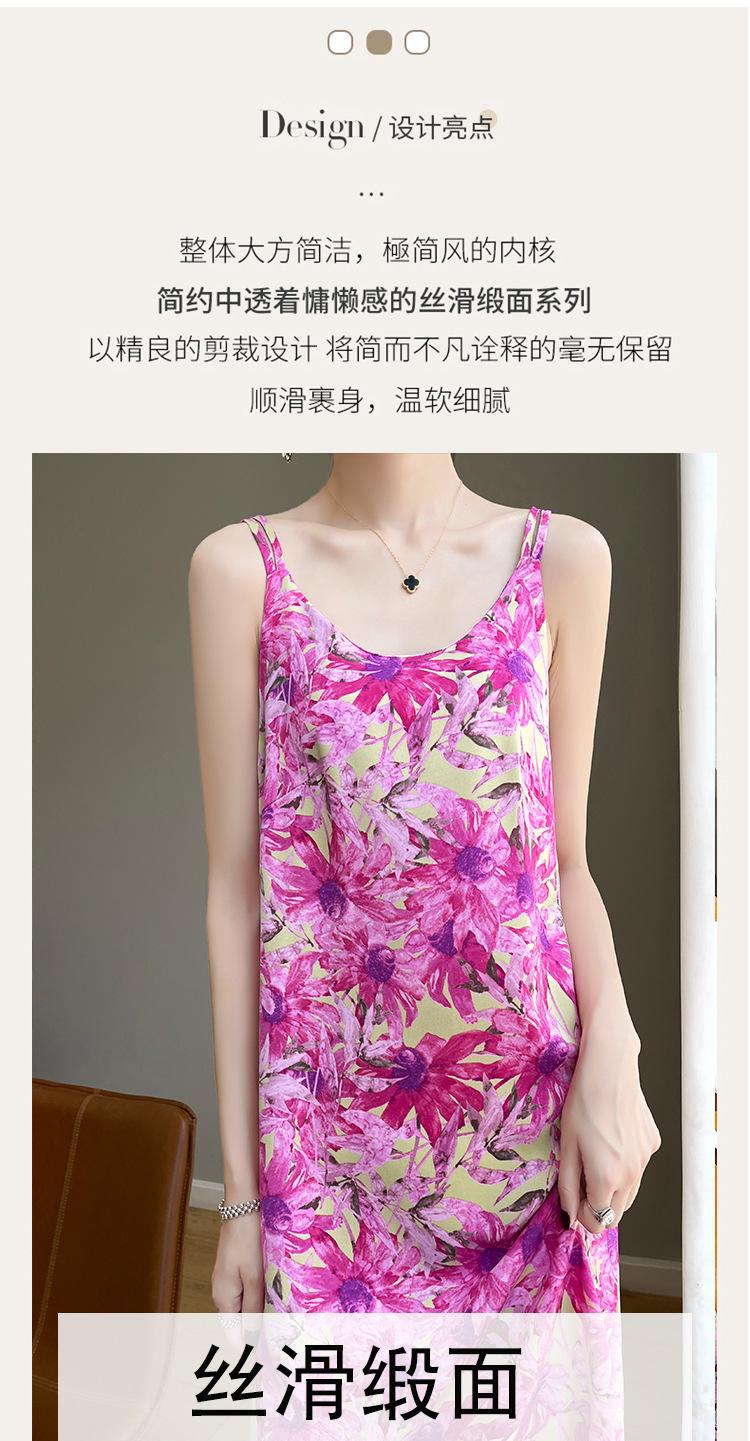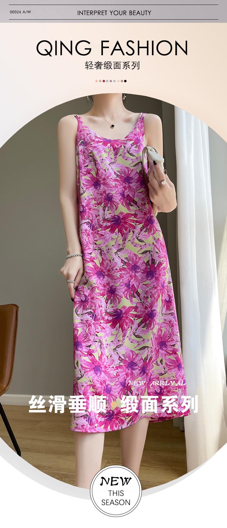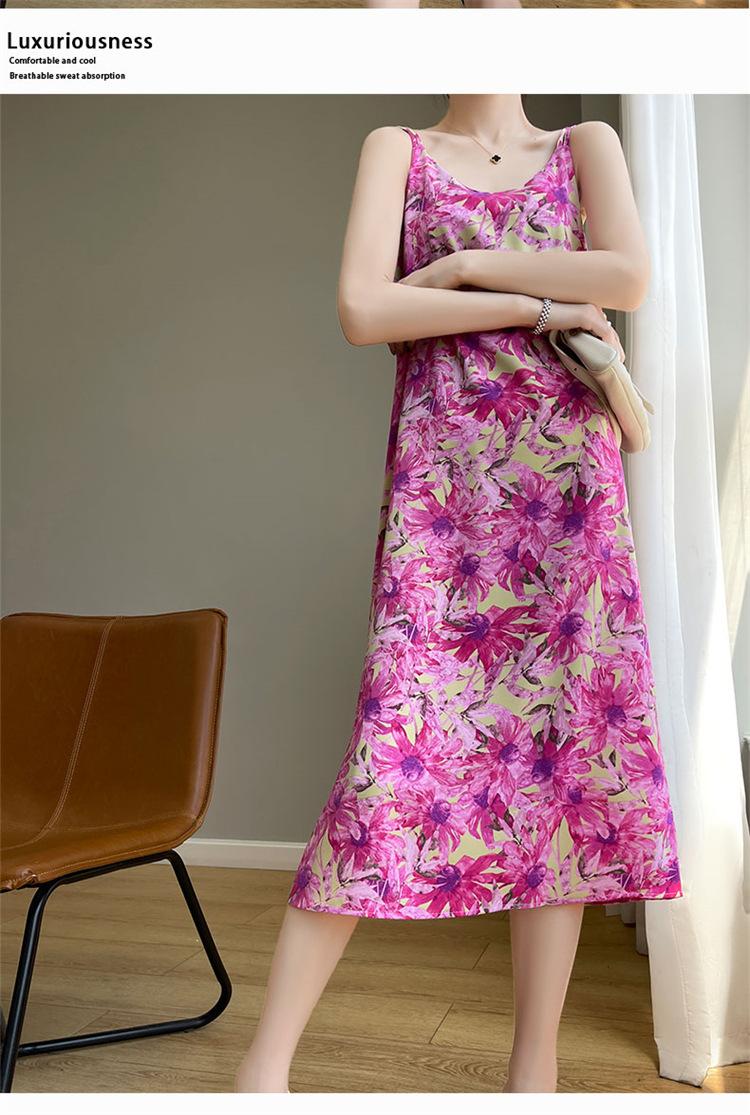 Vestido midi holgado de satén de seda con estampado de cosmos y cuello redondo, nuevo para primavera y verano de 2025 para mujer