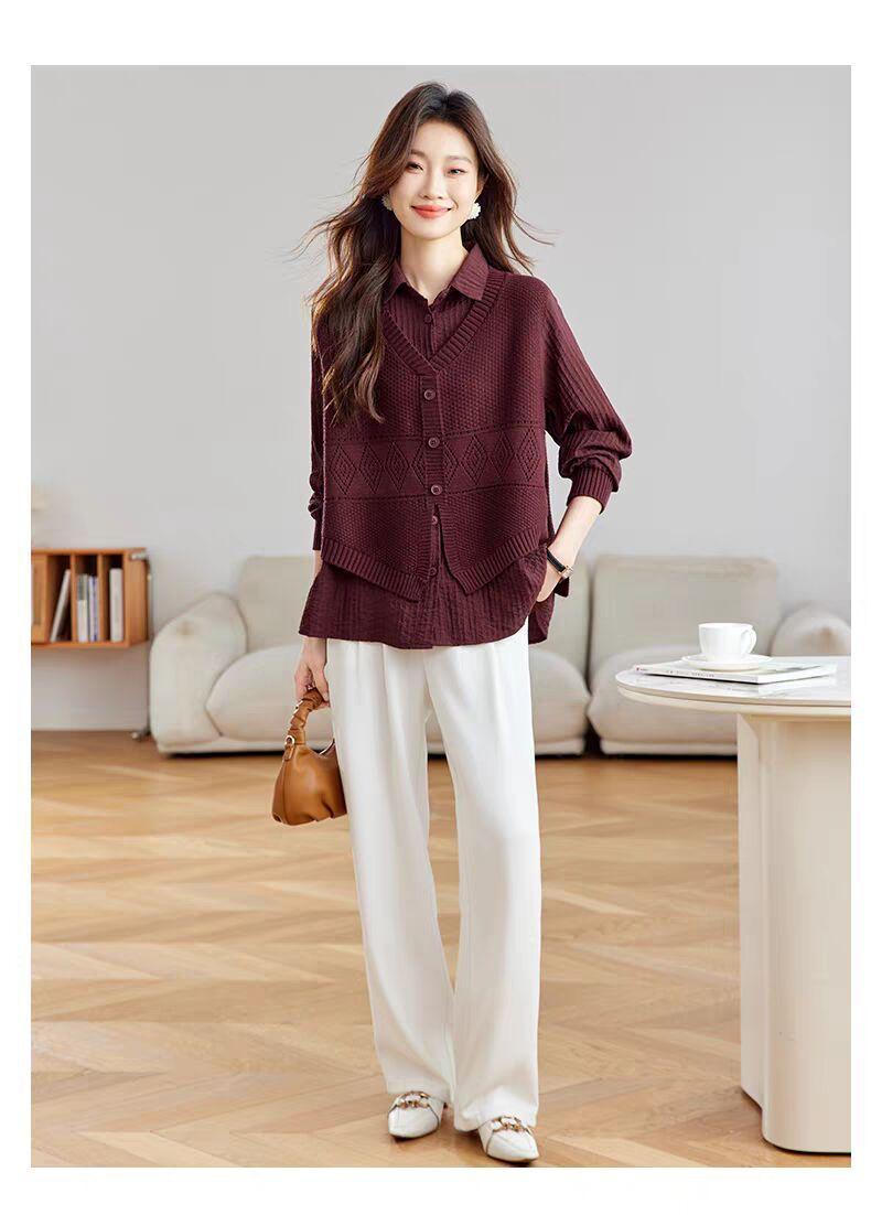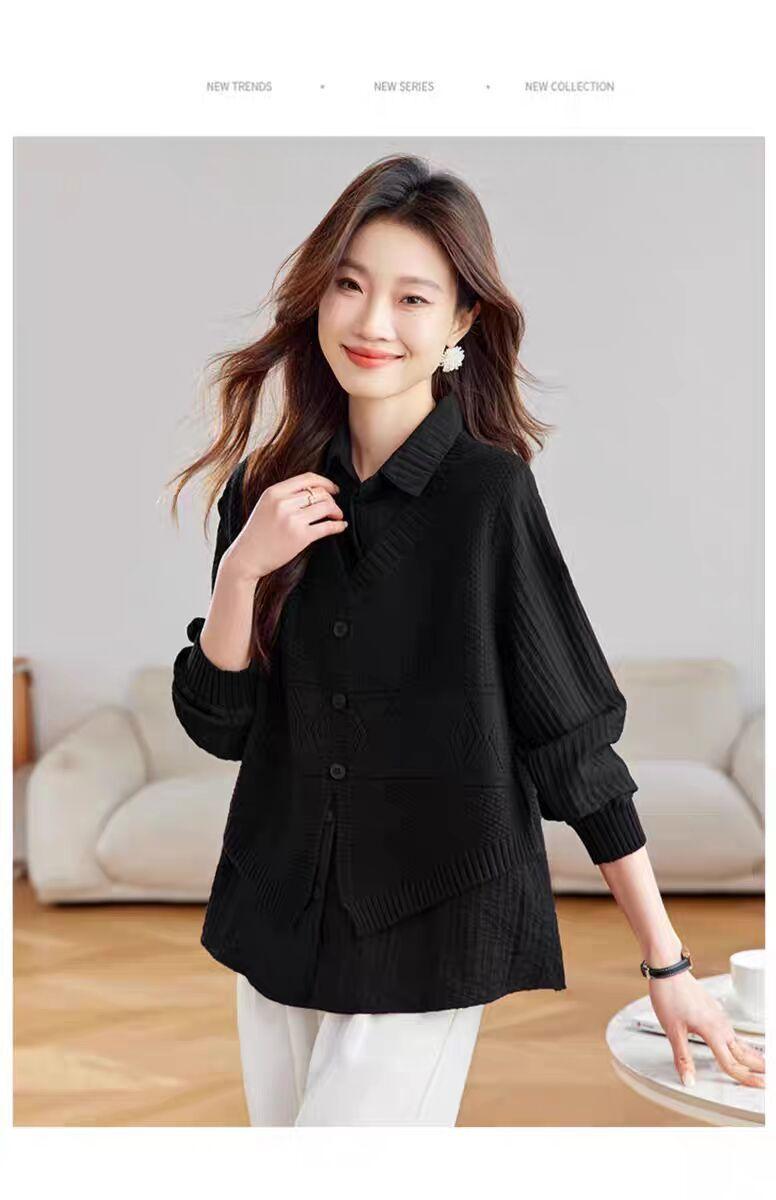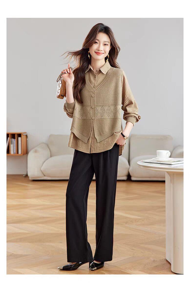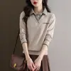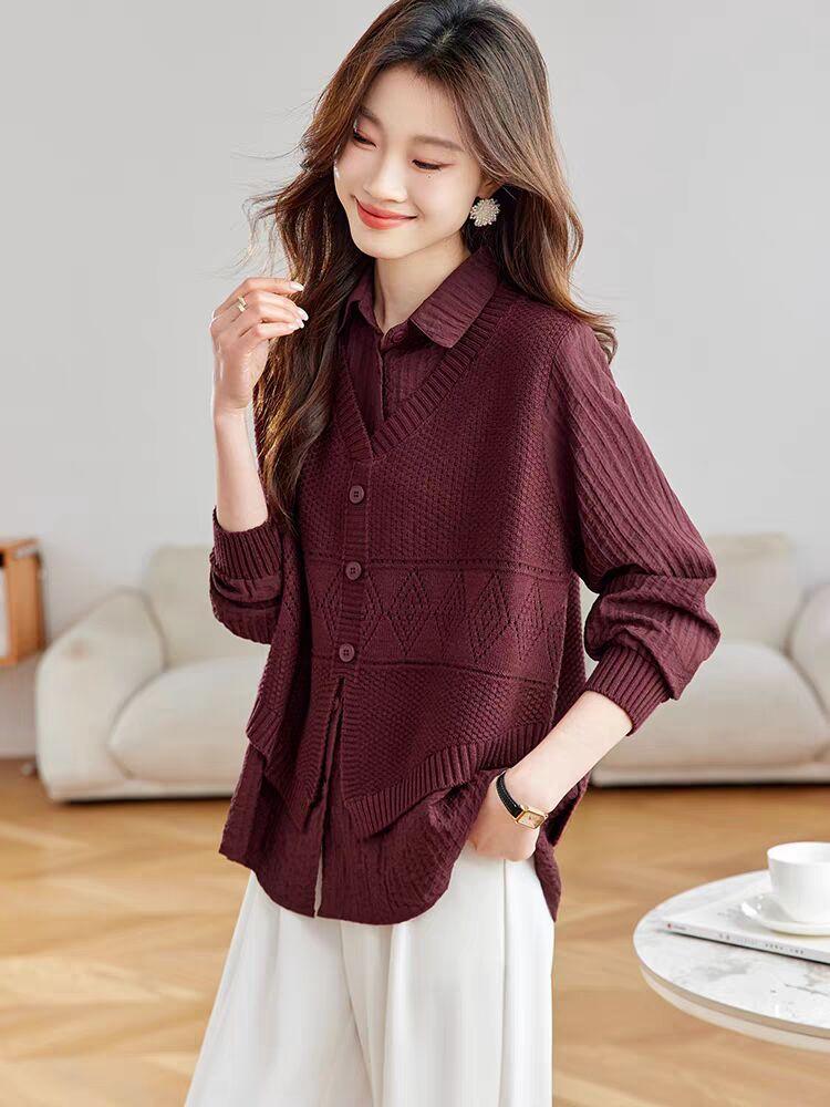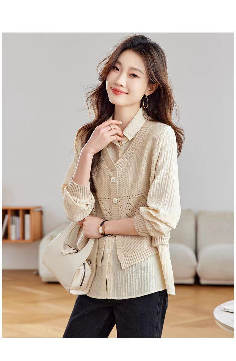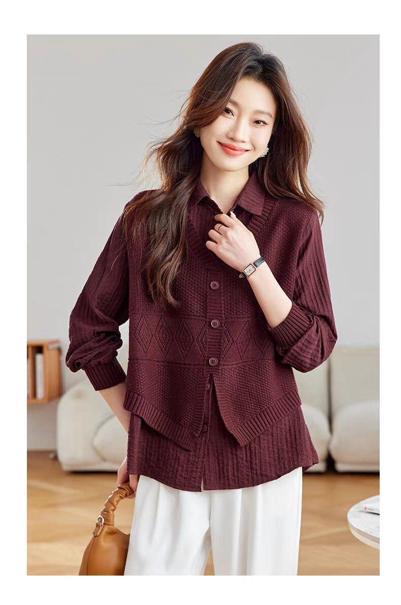 Camiseta de punto de manga larga de dos piezas falsas para mujer, nueva de otoño, suéter holgado con parches, top versátil