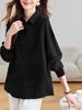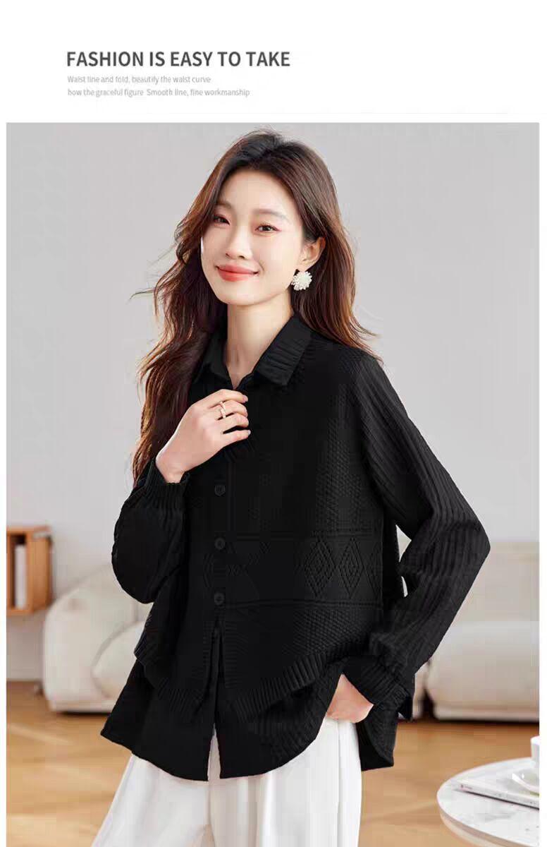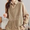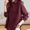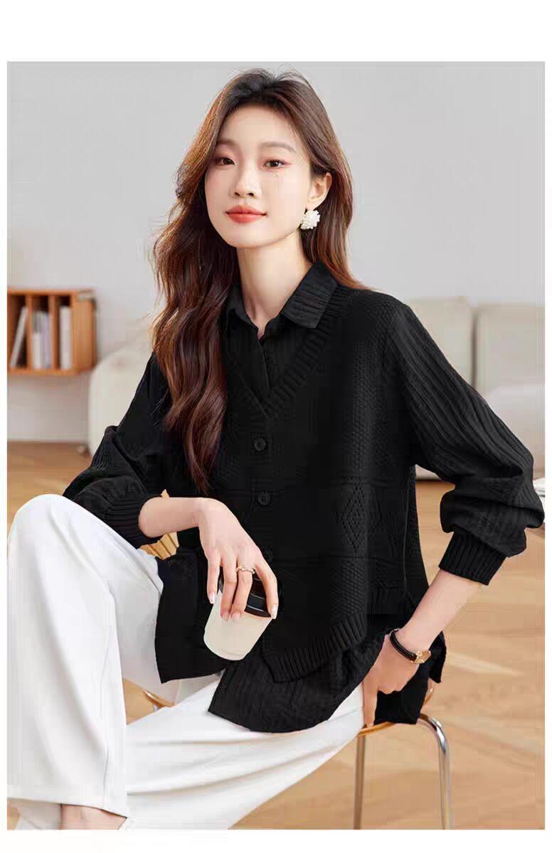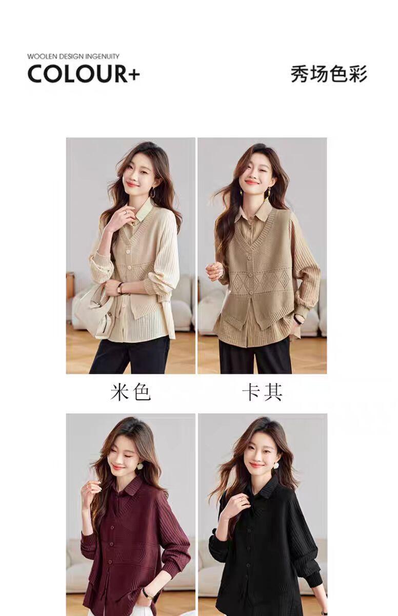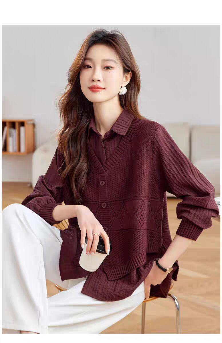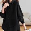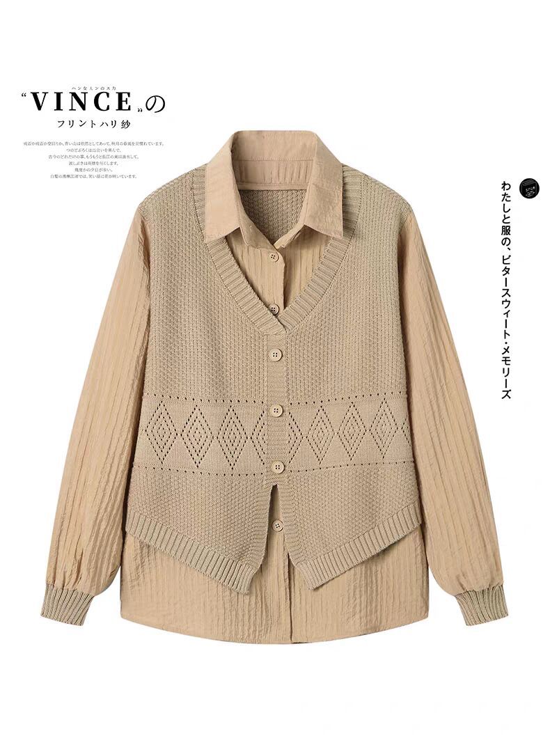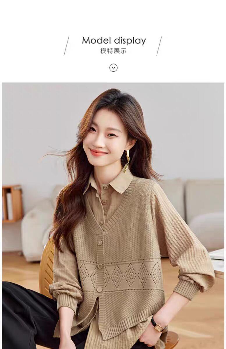 Camiseta de punto de manga larga de dos piezas falsas para mujer, nueva de otoño, suéter holgado con parches, top versátil