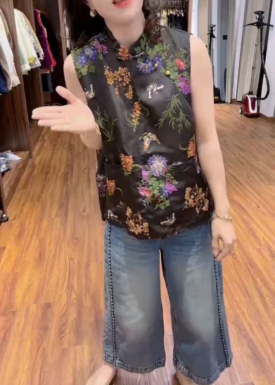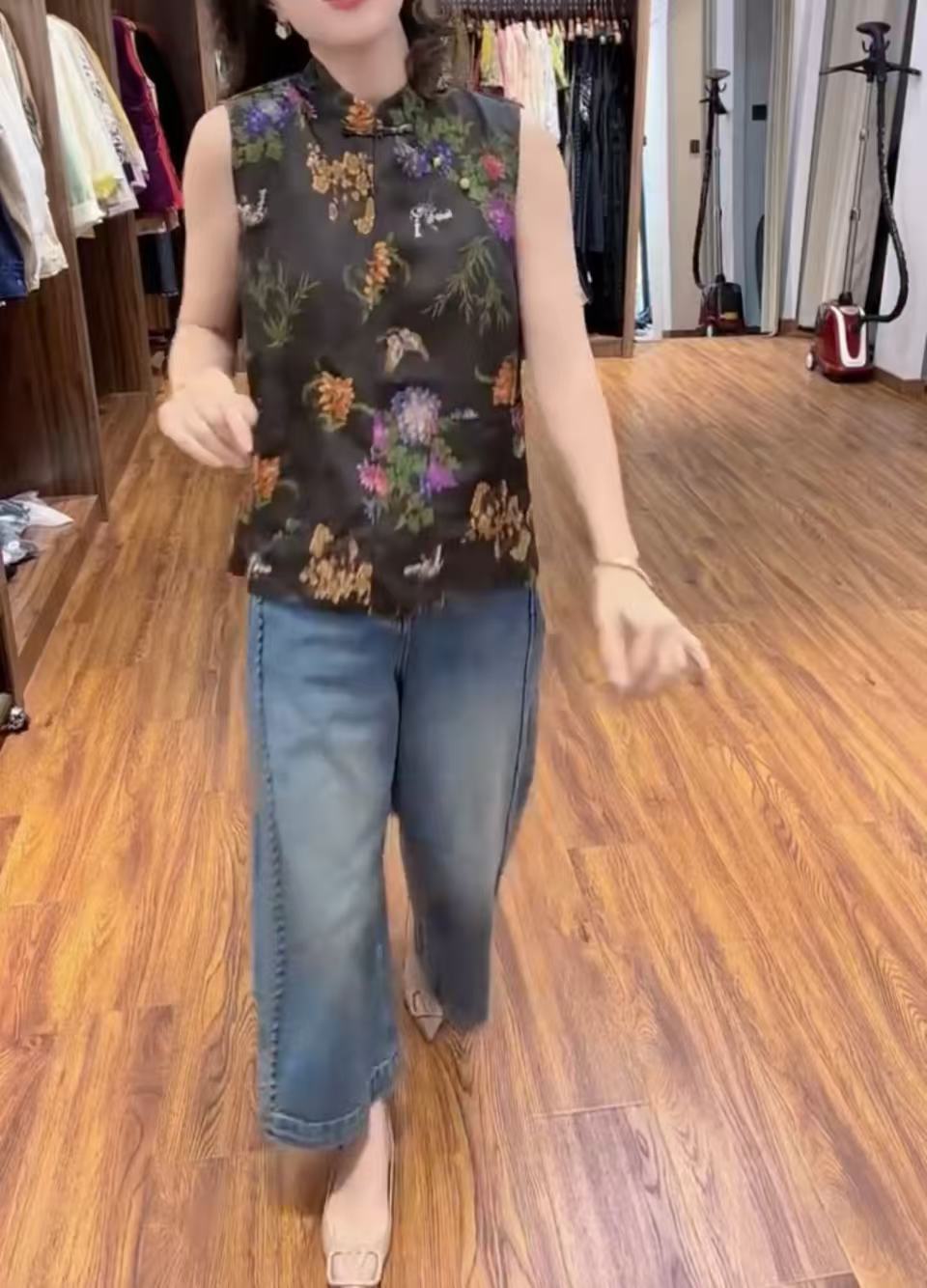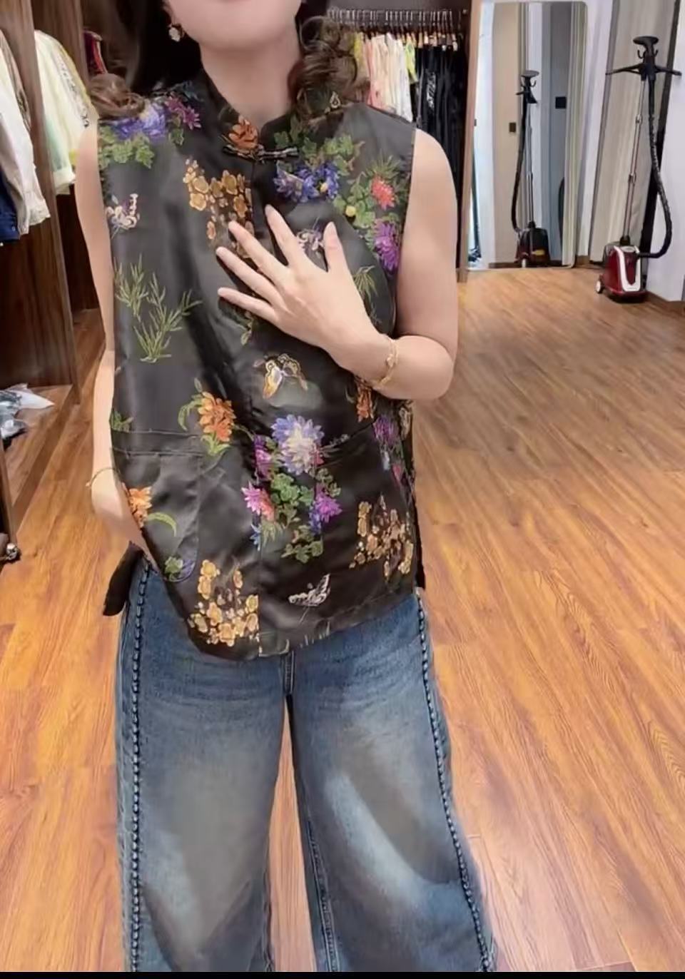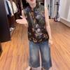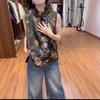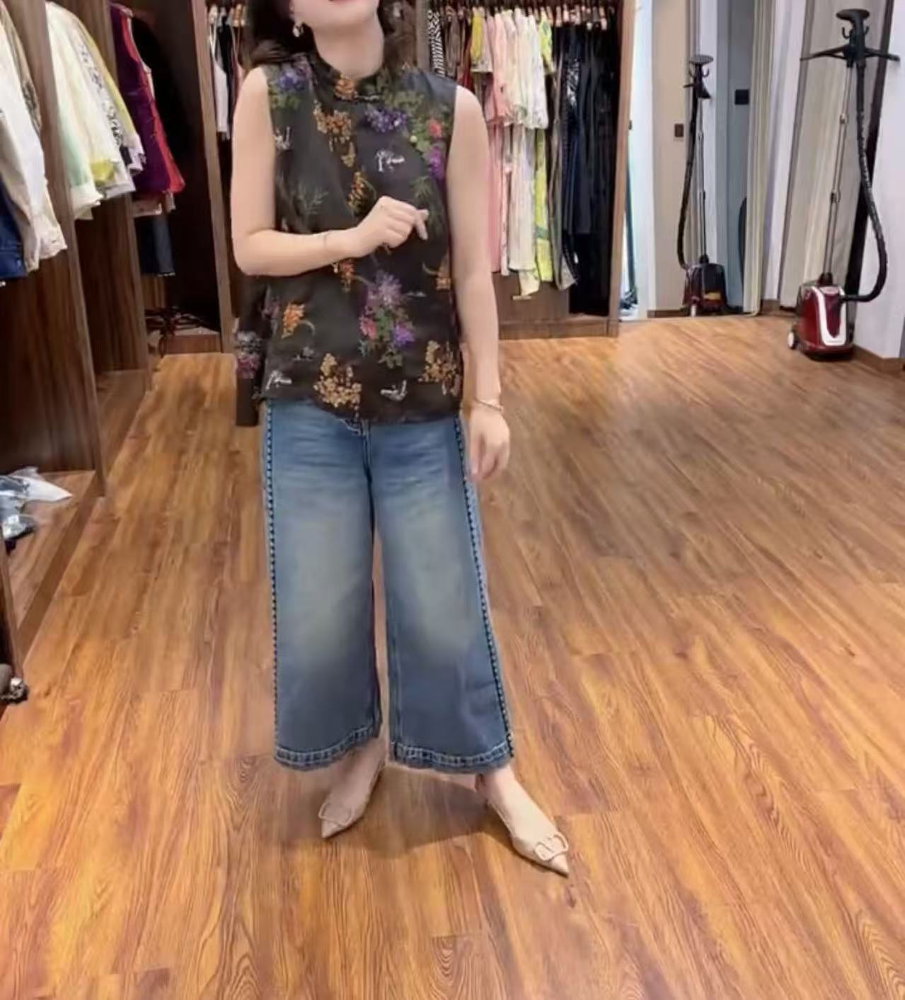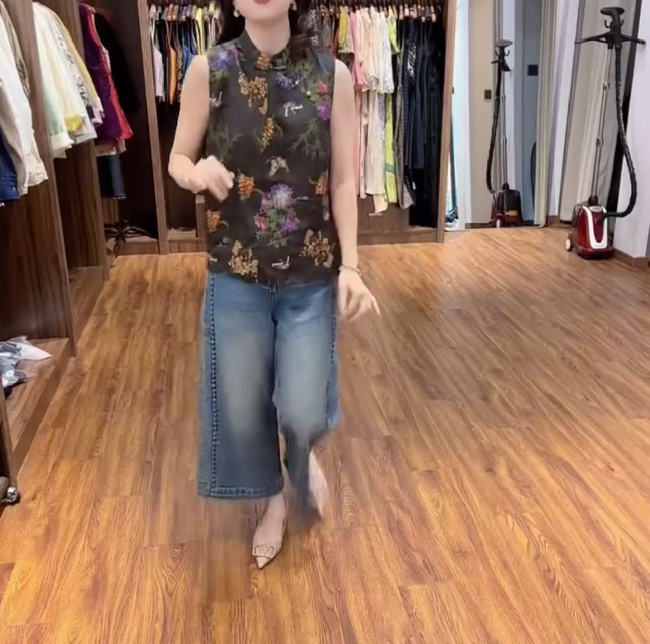 25273 Da Ai Mei Yi Yuan 2025 Verano Nuevo Estilo Chino Estilo Nacional Botón Chaleco sin Mangas Pantalones Anchos de Pierna Ancha Adelgazantes