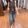 Buttoned vest, Blue jeans, Buttoned vest + blue jeans