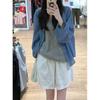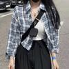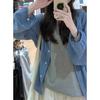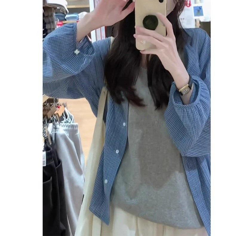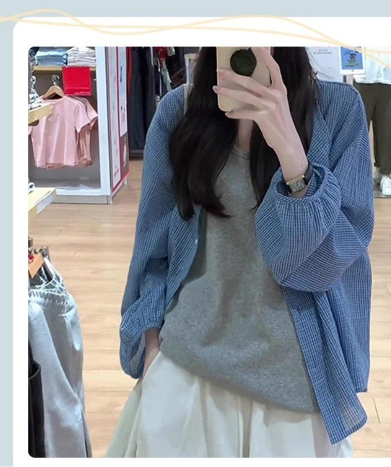 Camisa de Manga Larga a Cuadros Azules Estilo Coreano Holgada para Protección Solar para Mujer Verano Nueva Camisa Holgada Casual Top Delgado