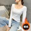 2025 Otoño/Invierno Nuevo Grueso Terciopelo Alemán Capa Base Mujer Adelgazante Ajustado Manga Larga Camiseta Forro Polar Top Base Al Por Mayor
