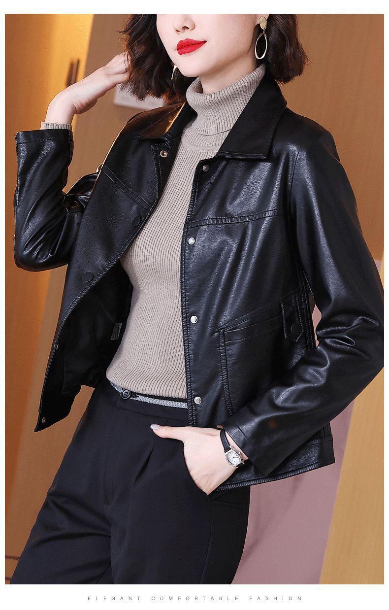 Abrigo de chaqueta de cuero de alta gama para mujer, estilo corto, nuevo de primavera y otoño 2025, estilo coreano, moderno, que reduce la edad, adelgazante, chaqueta de motociclista
