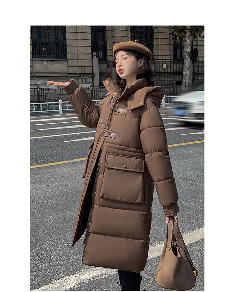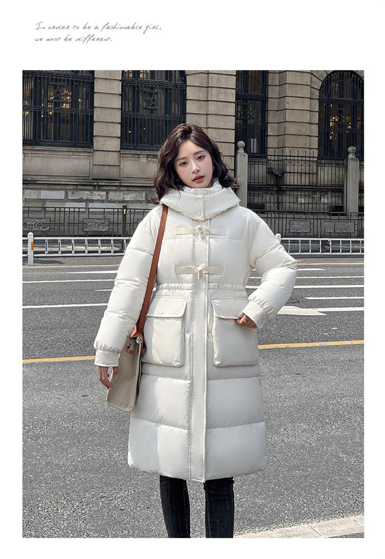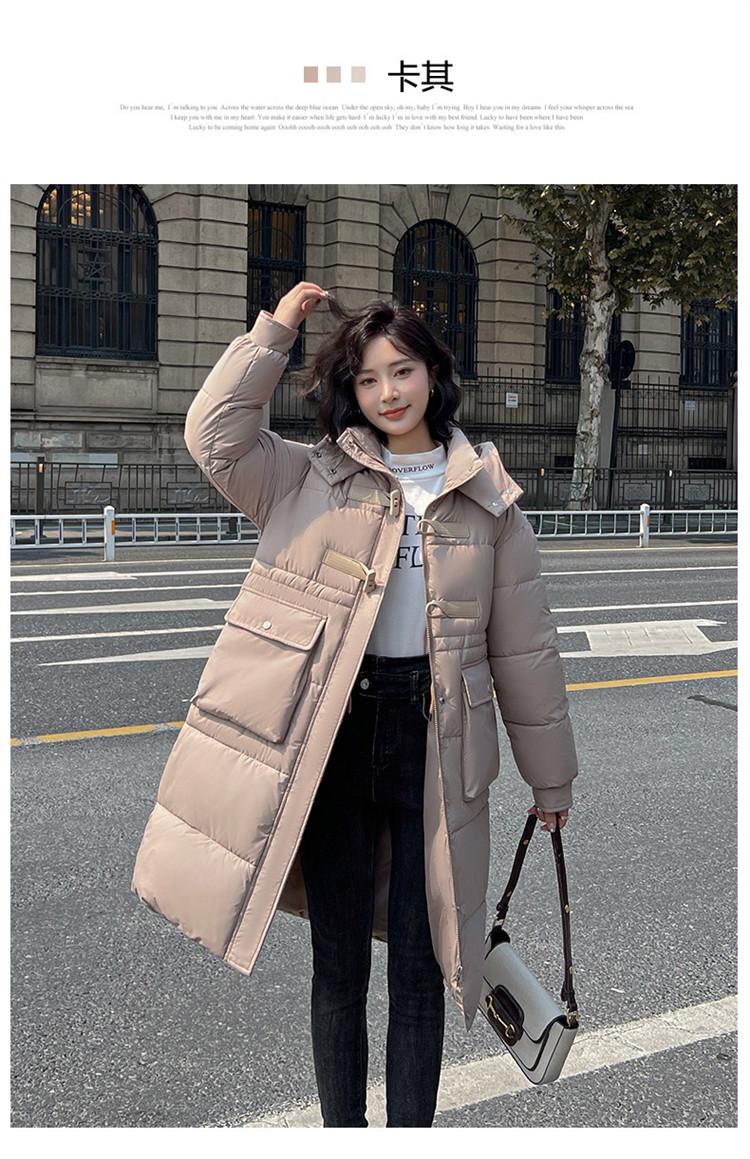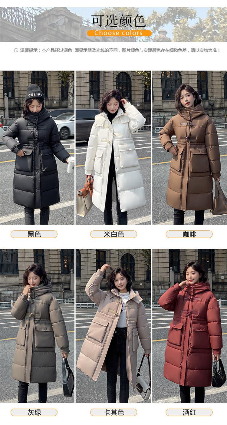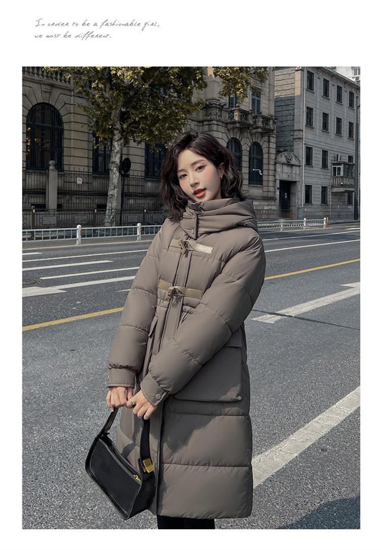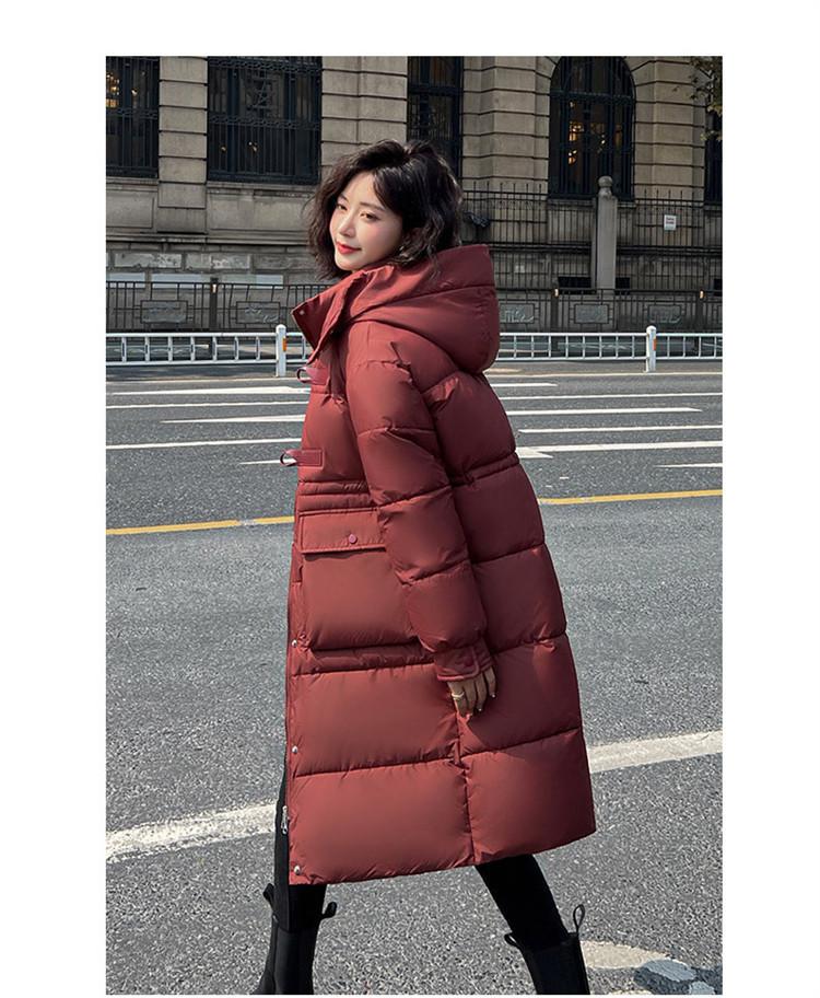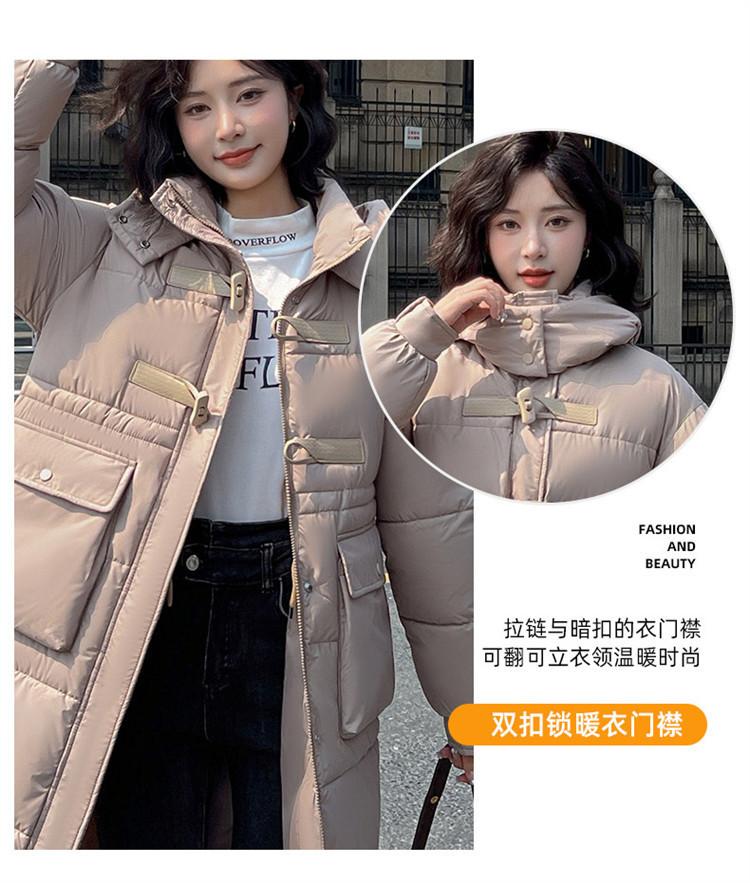 Invierno Nuevo Coreano Botón de Cuerno Adelgazante de Cintura Algodón Largo Medio para Mujer Nuevo Abrigo con Capucha por Encima de la Rodilla Acolchado de Algodón