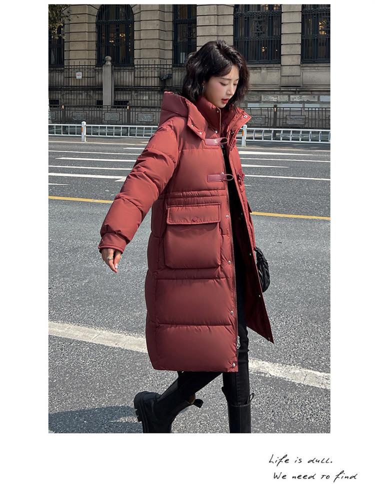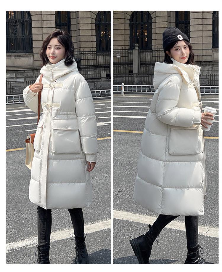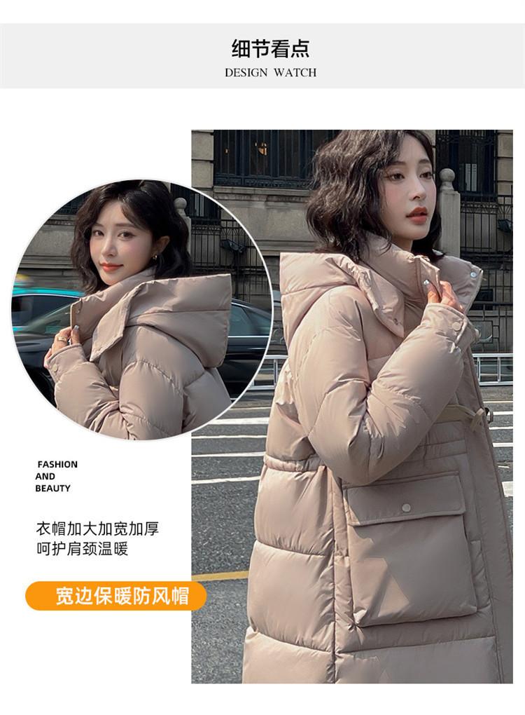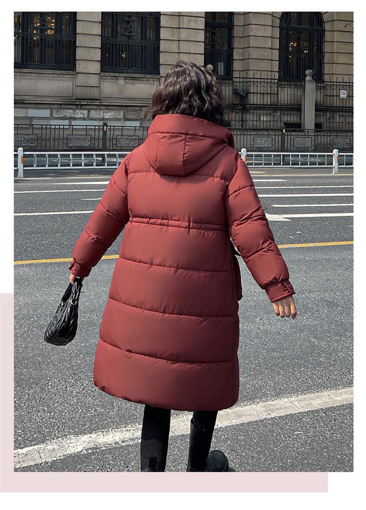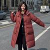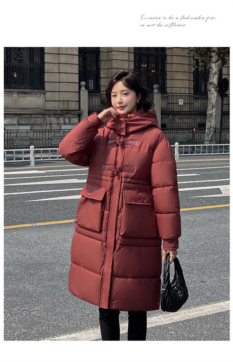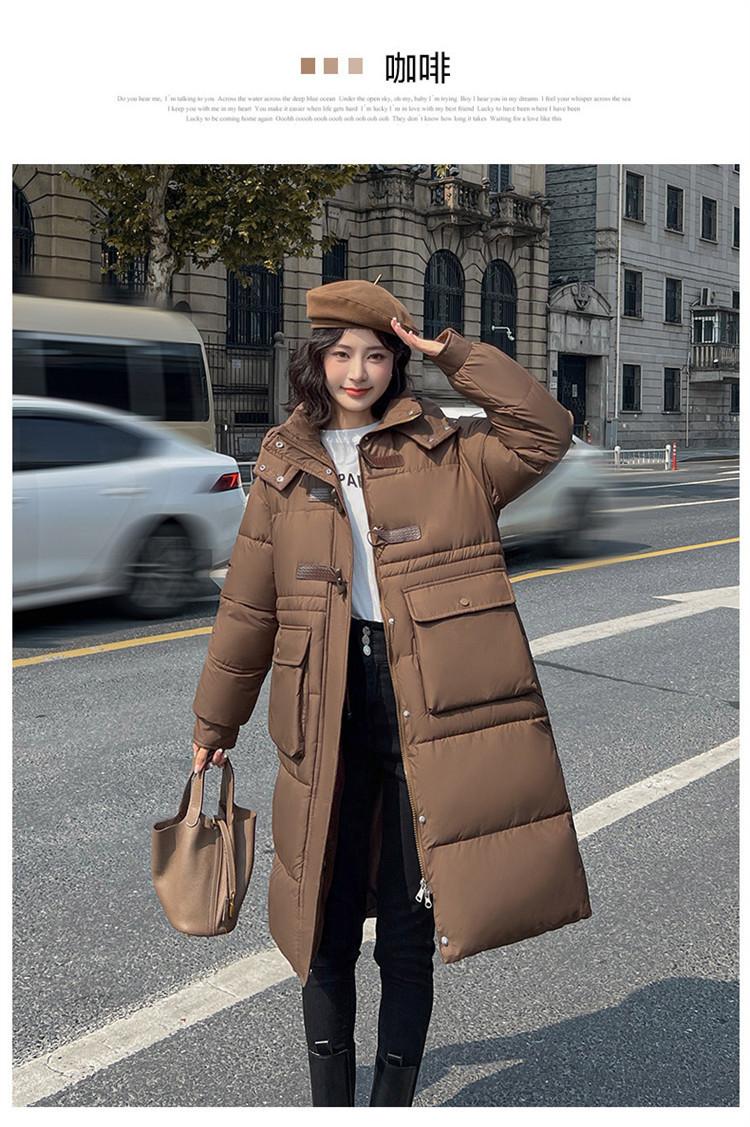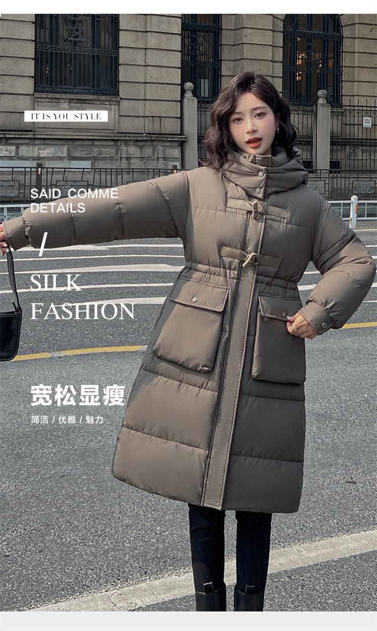 Invierno Nuevo Coreano Botón de Cuerno Adelgazante de Cintura Algodón Largo Medio para Mujer Nuevo Abrigo con Capucha por Encima de la Rodilla Acolchado de Algodón