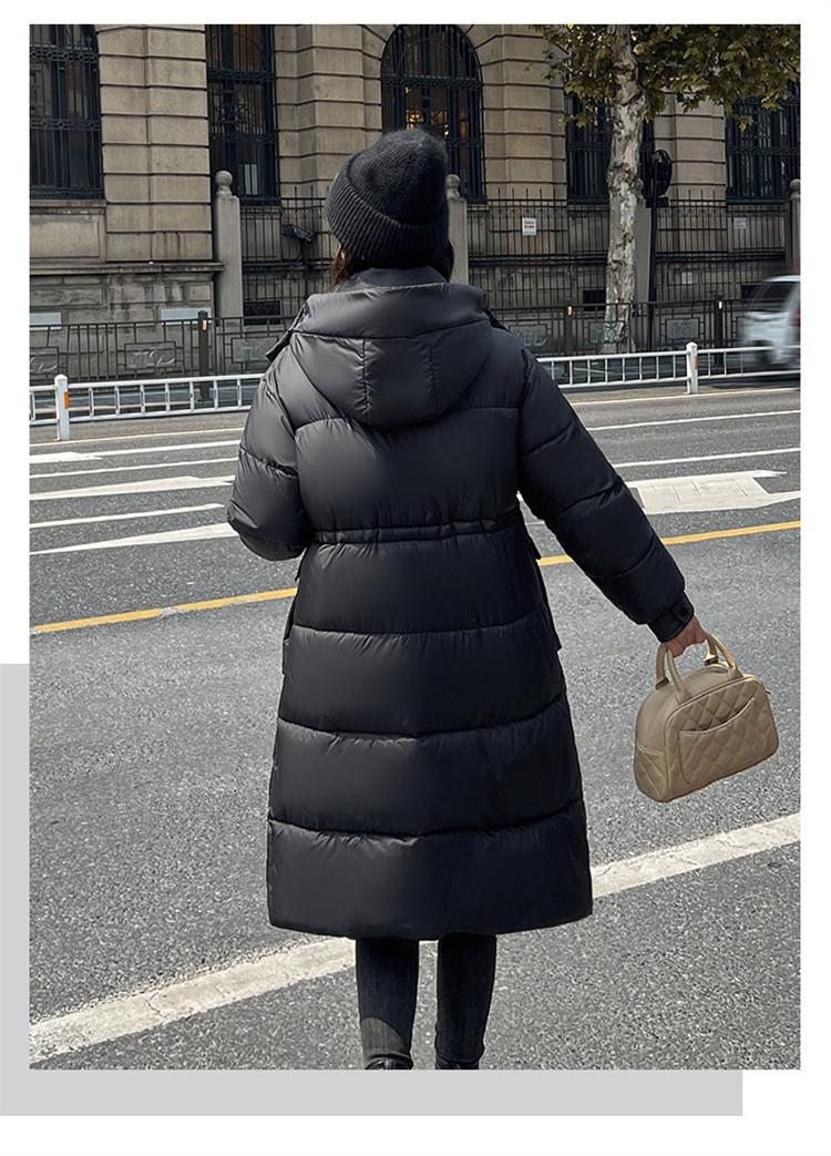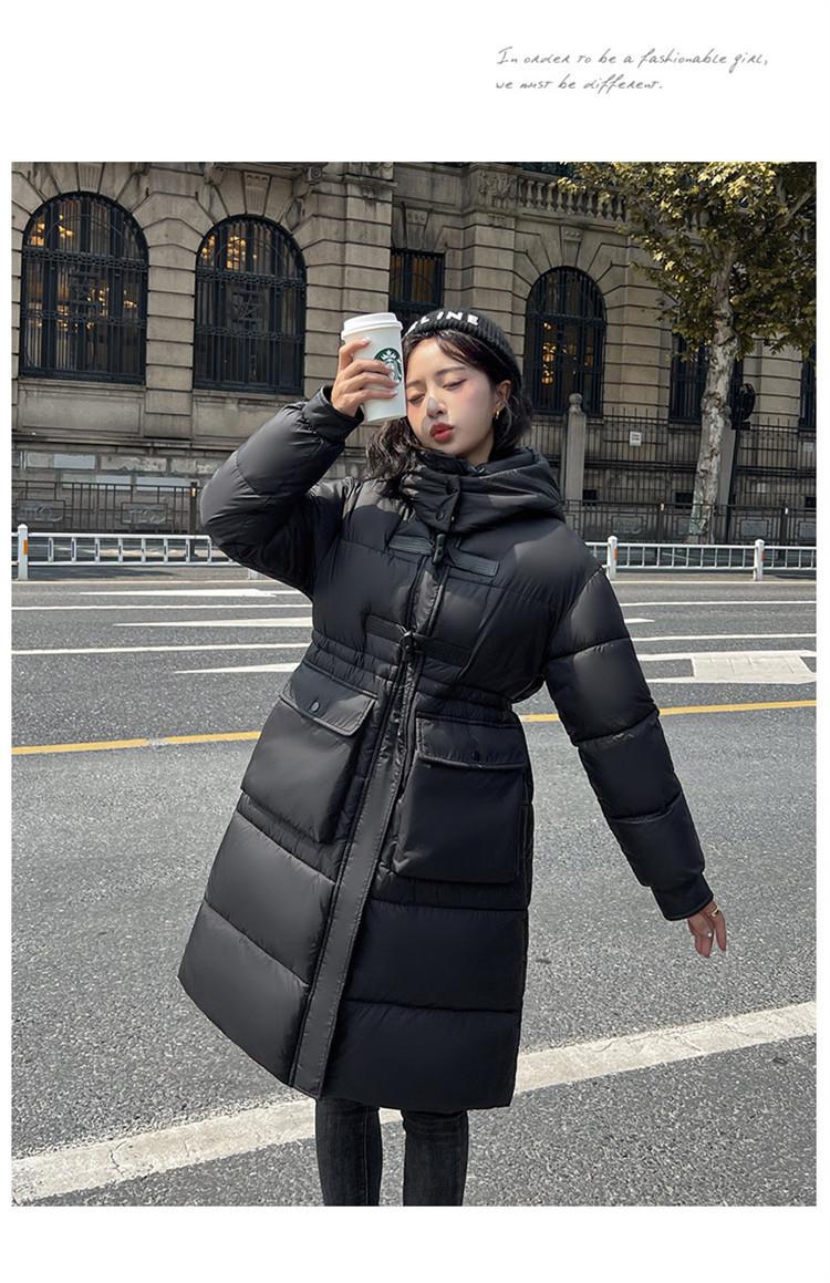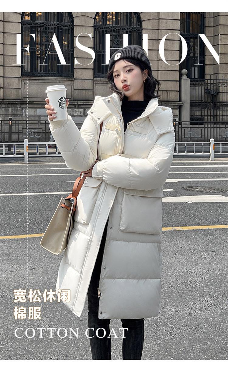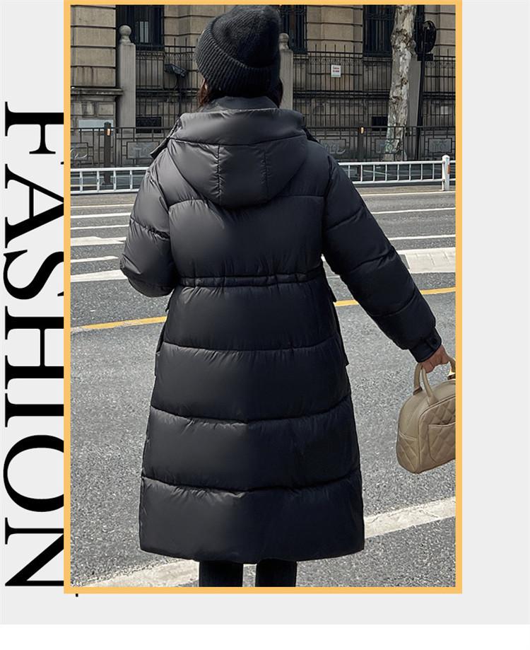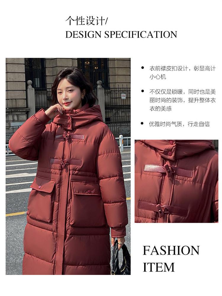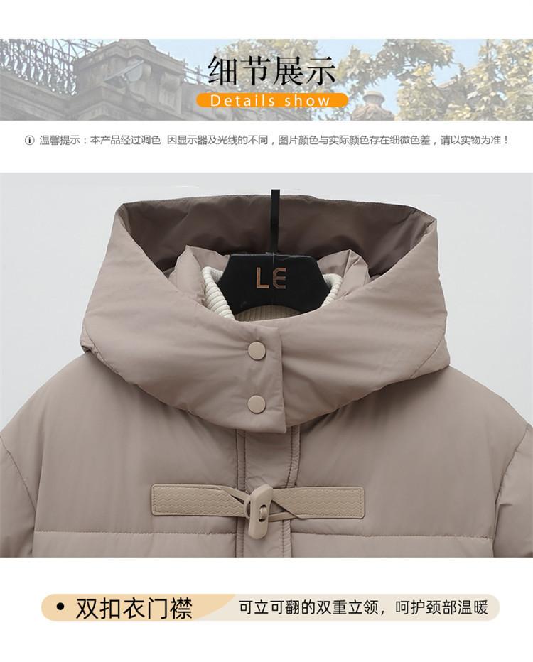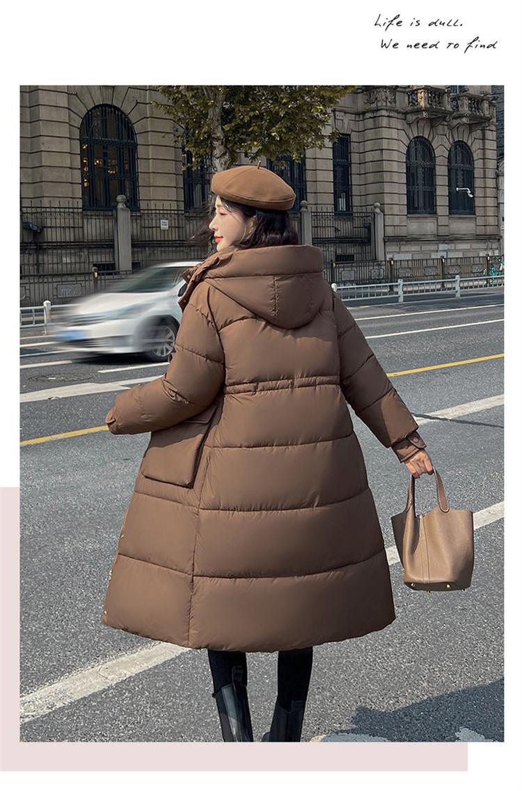 Invierno Nuevo Coreano Botón de Cuerno Adelgazante de Cintura Algodón Largo Medio para Mujer Nuevo Abrigo con Capucha por Encima de la Rodilla Acolchado de Algodón