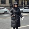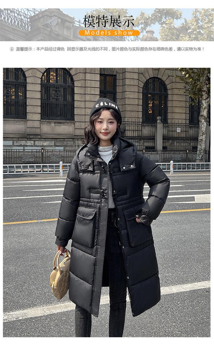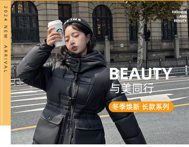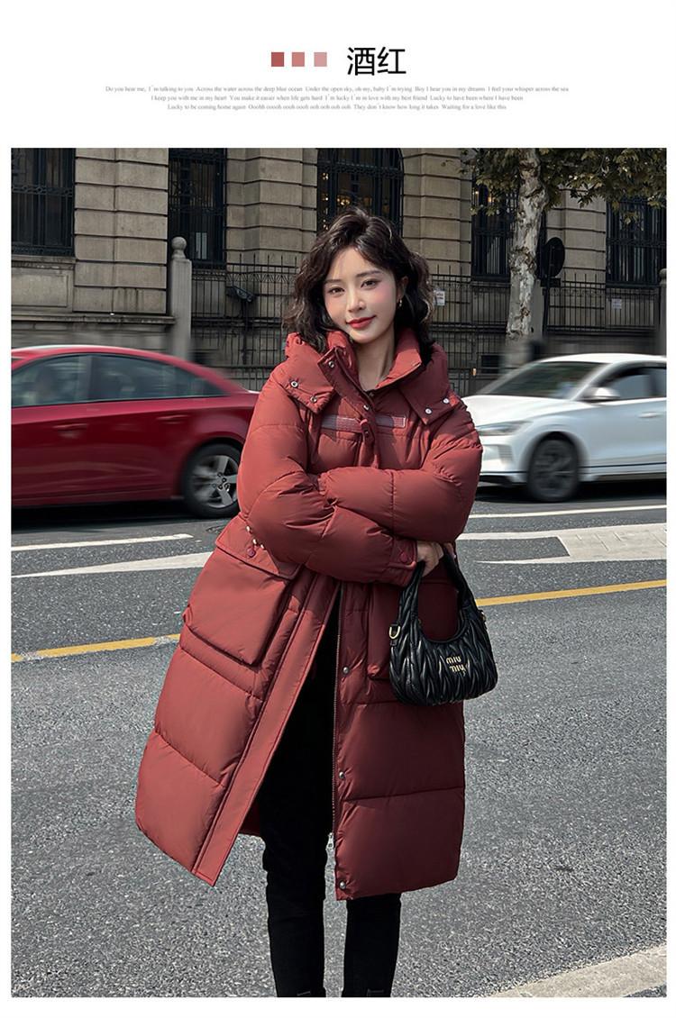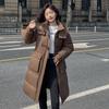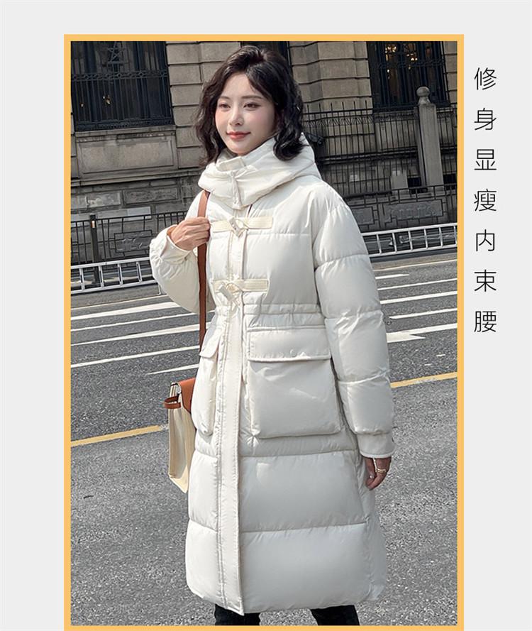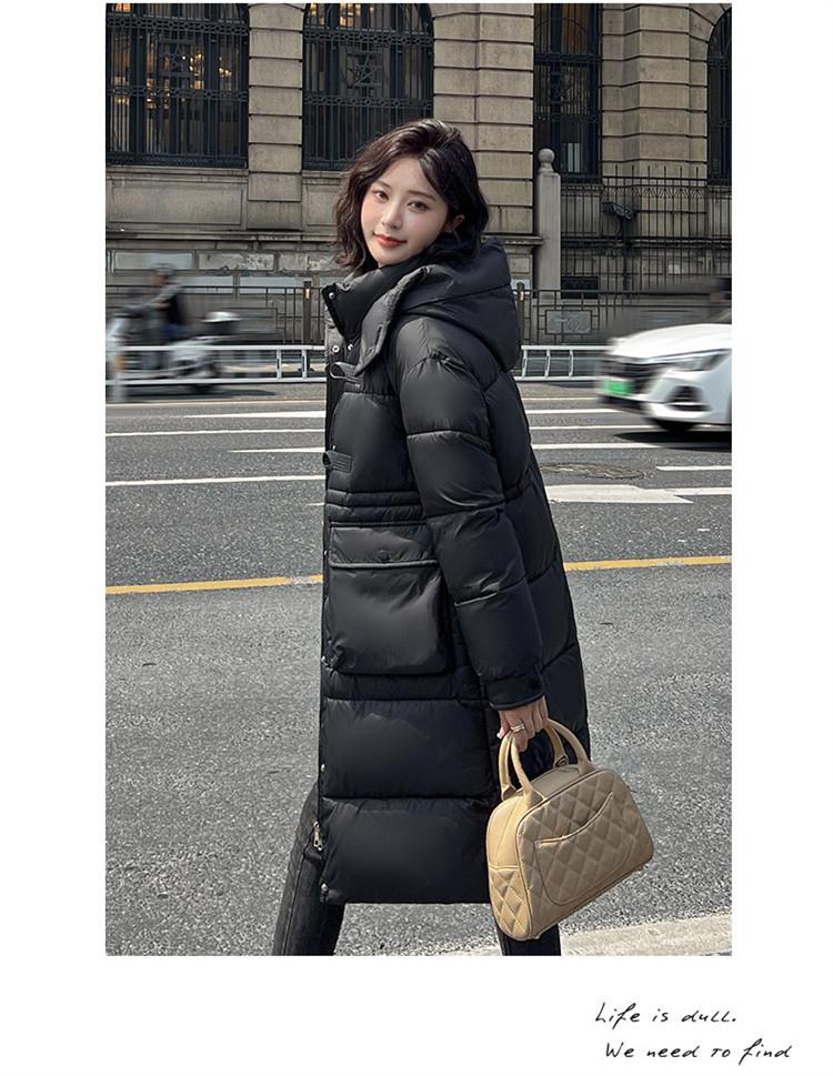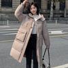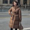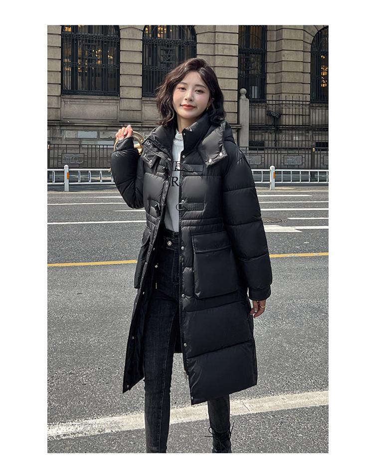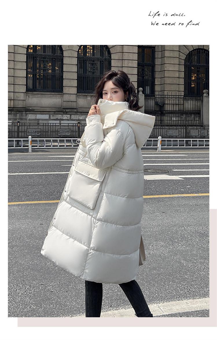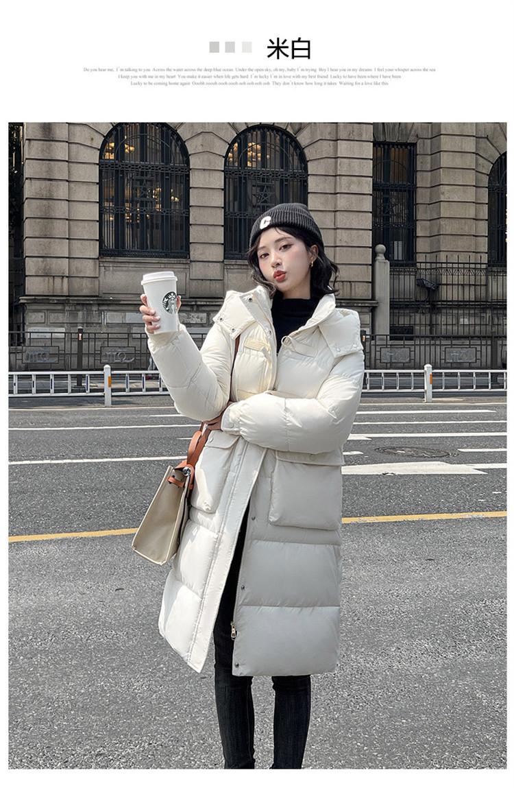 Invierno Nuevo Coreano Botón de Cuerno Adelgazante de Cintura Algodón Largo Medio para Mujer Nuevo Abrigo con Capucha por Encima de la Rodilla Acolchado de Algodón