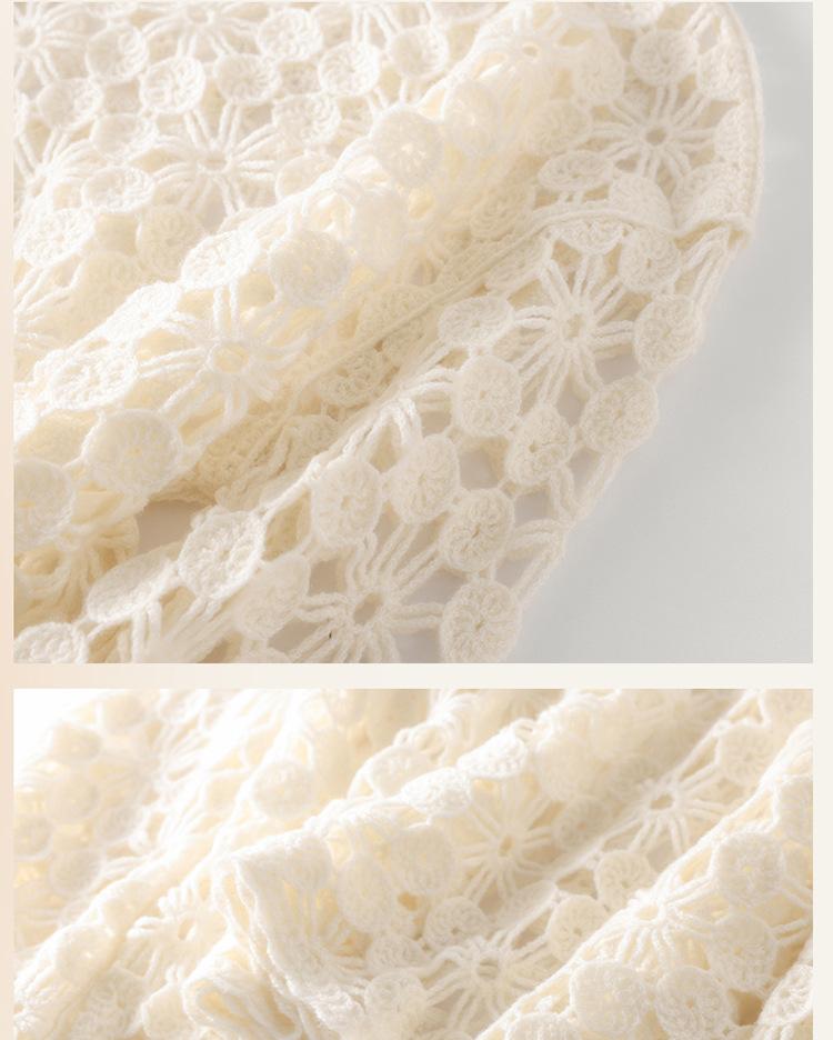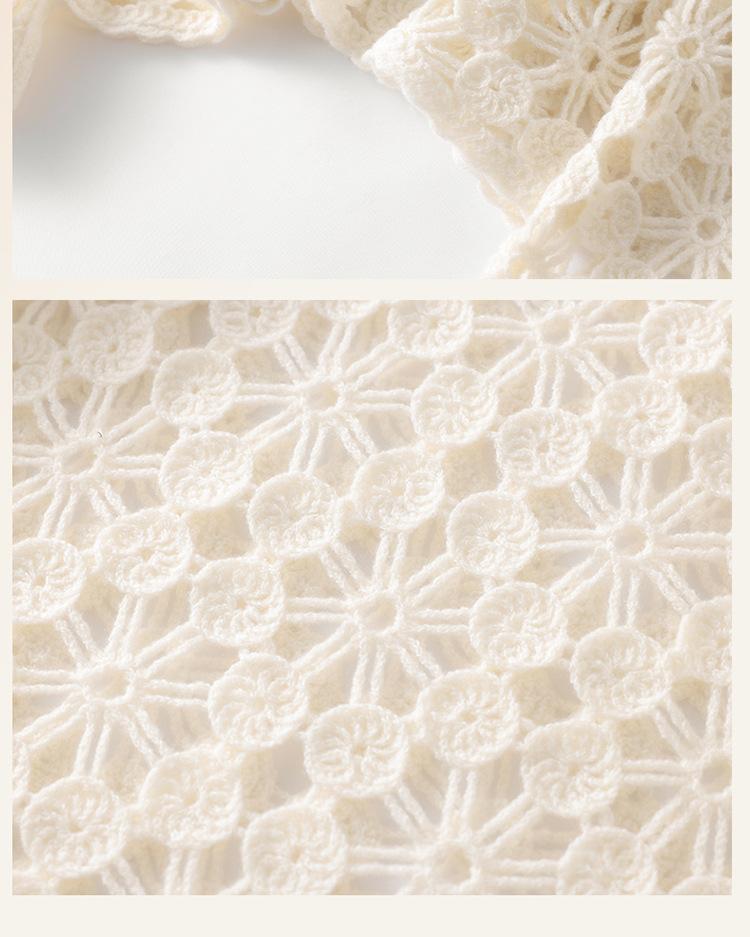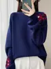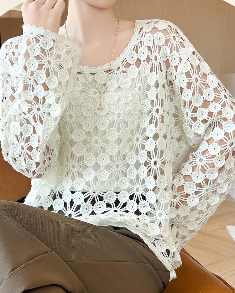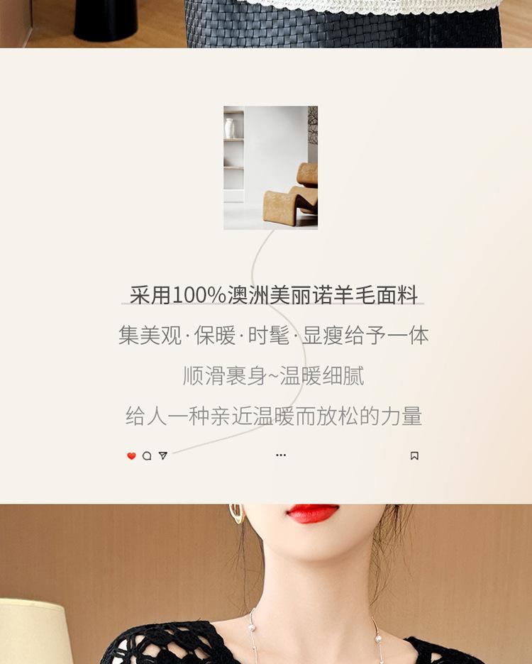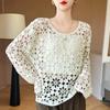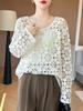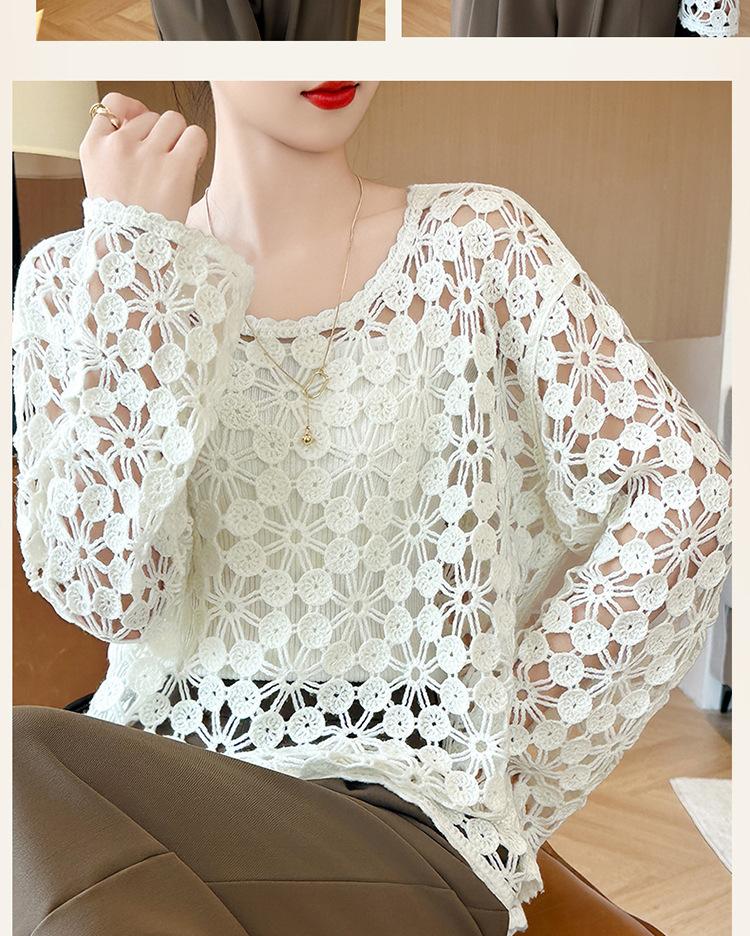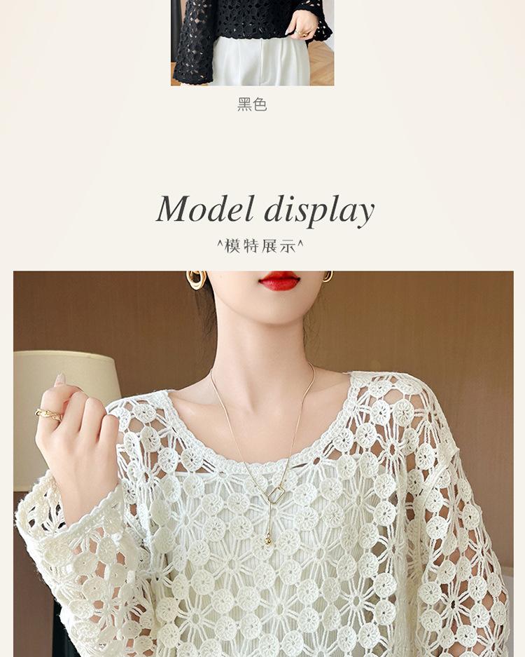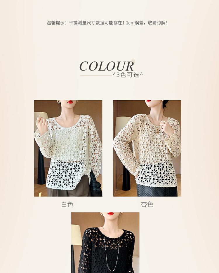 2025 Otoño/Invierno Nuevo Suéter Tejido de Cuello Redondo de Lana Pura Manga Larga Mujer Resistente Diseño Calado de Crochet Sentido de Capa Base