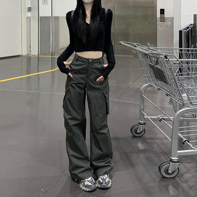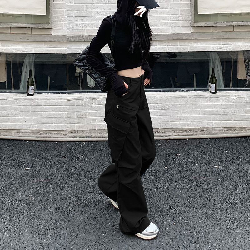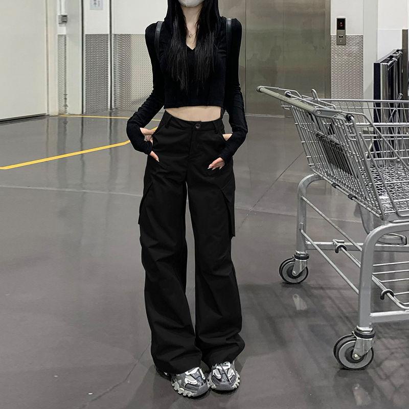 Pantalones cargo dulces y geniales nuevos de 2025 para mujer American High Street Hot Girl Ins Acampanados adelgazantes de pierna ancha casuales pantalones largos a la moda