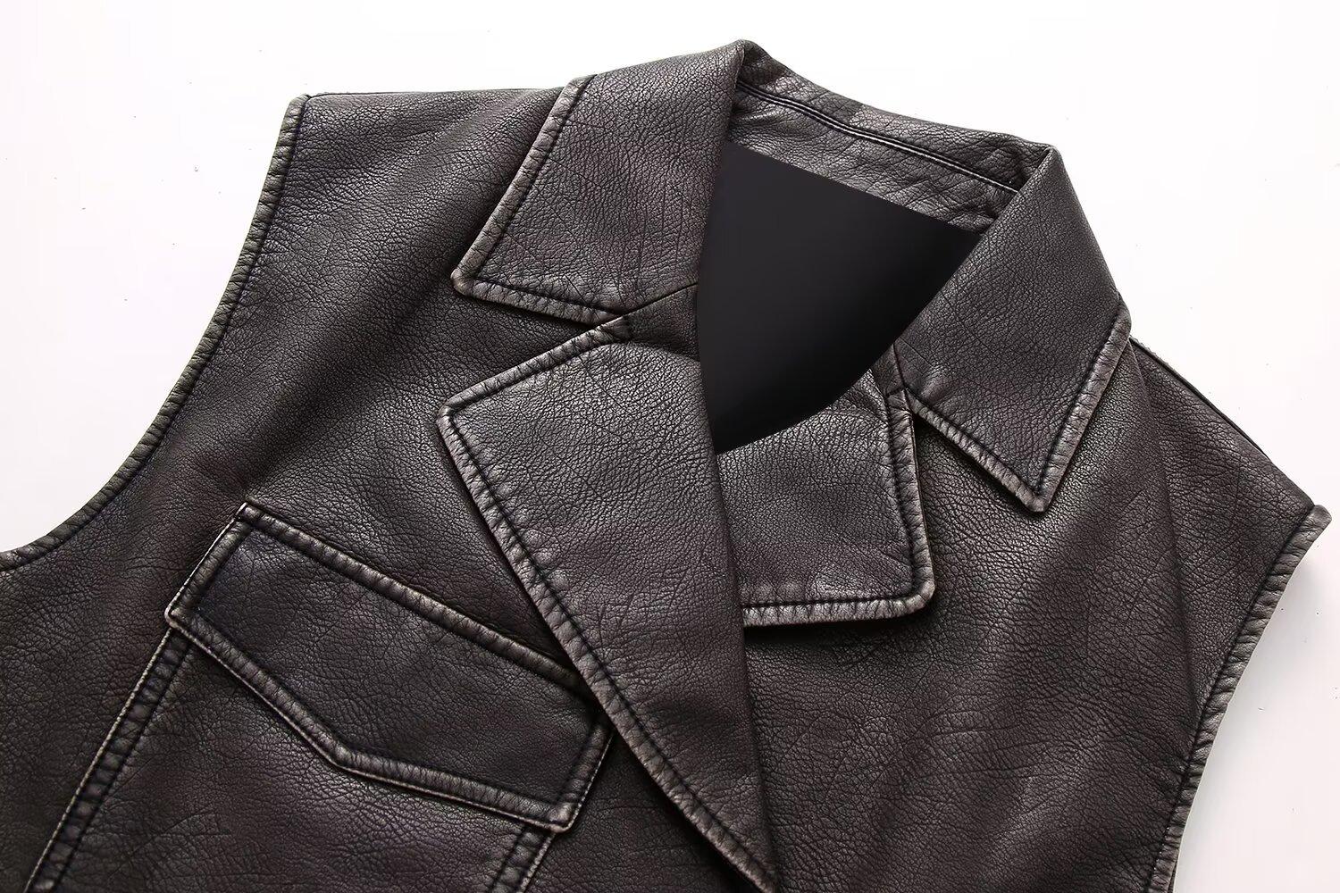 Otoño 2025 Nuevo Estilo Europeo y Americano Tendencia de Moda Personalidad Calle Chaqueta de Cuero PU Cuero Sintético Chaleco Corto 2949229