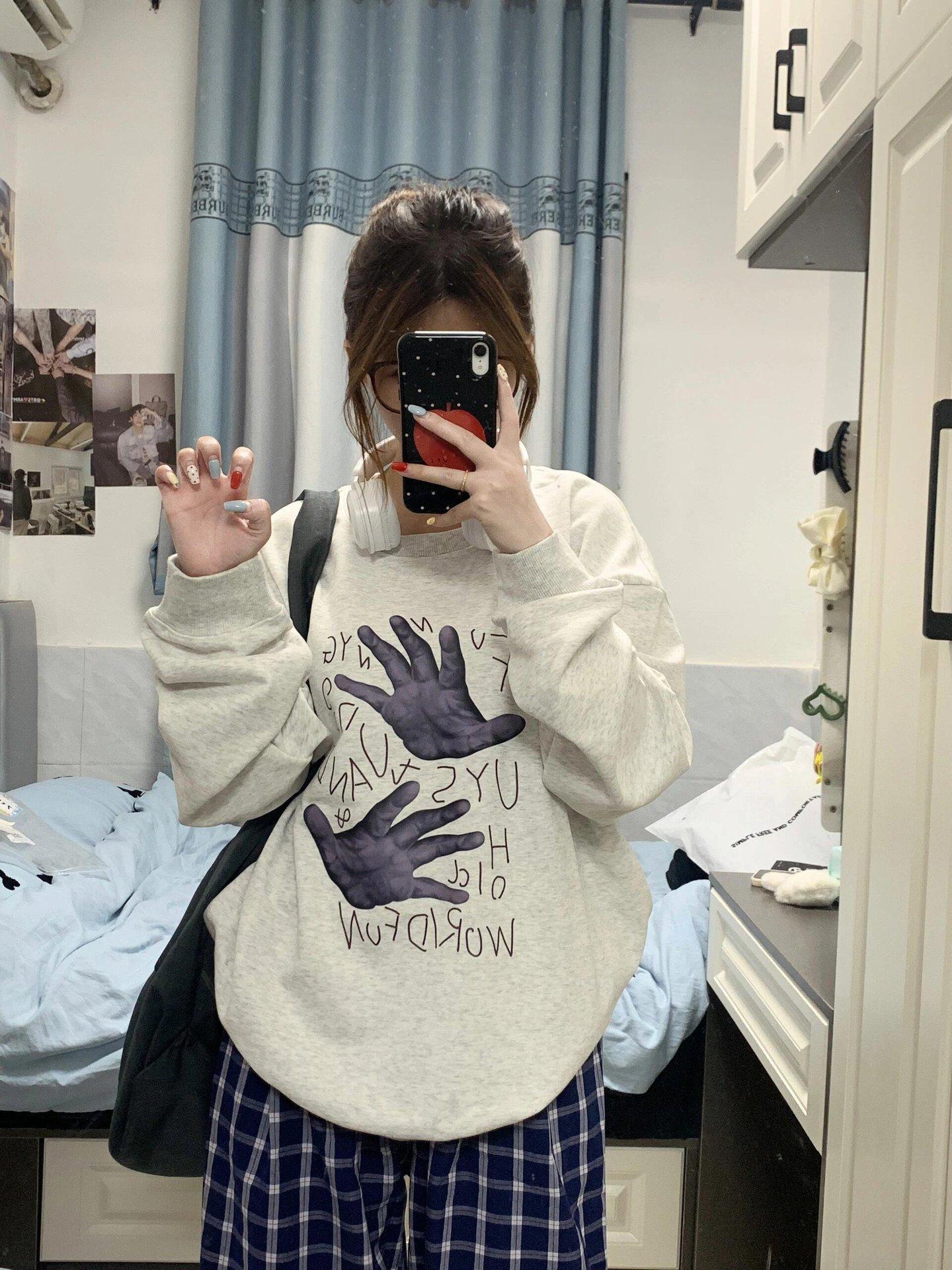 Nuevo Suéter Holgado Estilo Casual Deportivo para Todo Combinación Europeo y Americano sin Capucha con Estampado de Cuello Redondo Ropa de Mujer Estilo Japonés y Coreano