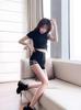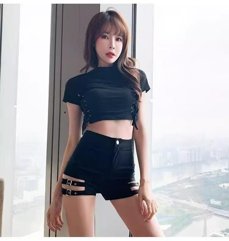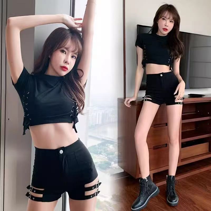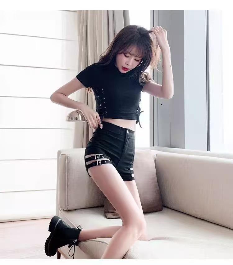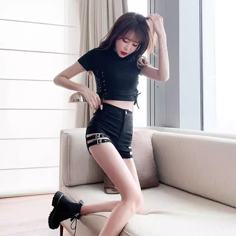 Europeas y Americanas Ins Shorts Ajustados Sexy para Mujer Moda Primavera y Verano Leggings con Recortes y Tirantes de Cintura Alta Pantalones Cortos Elásticos que Cubren la Cadera