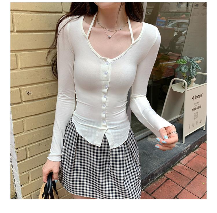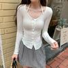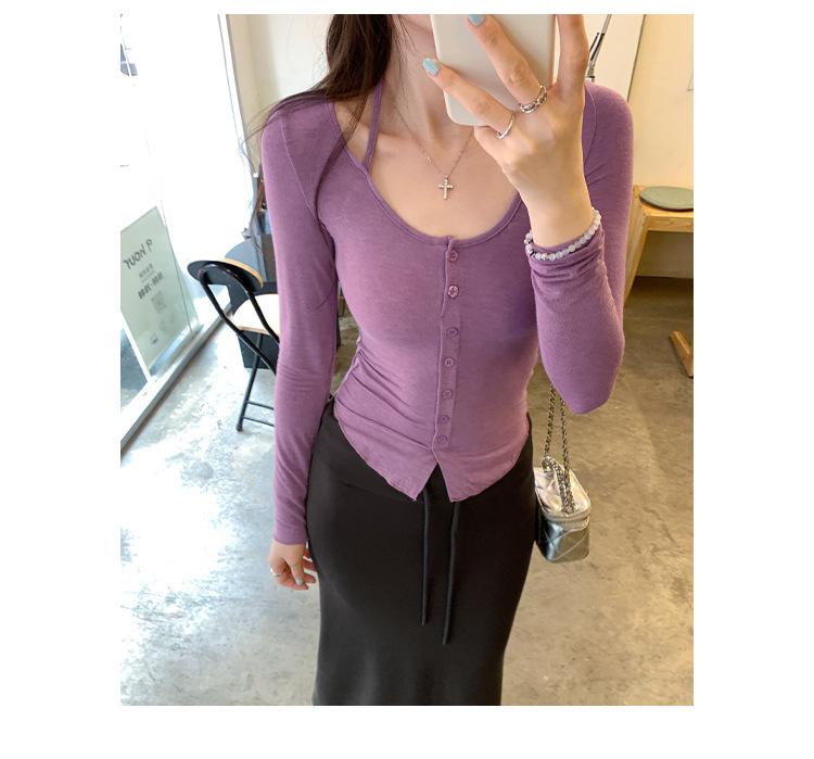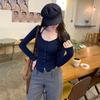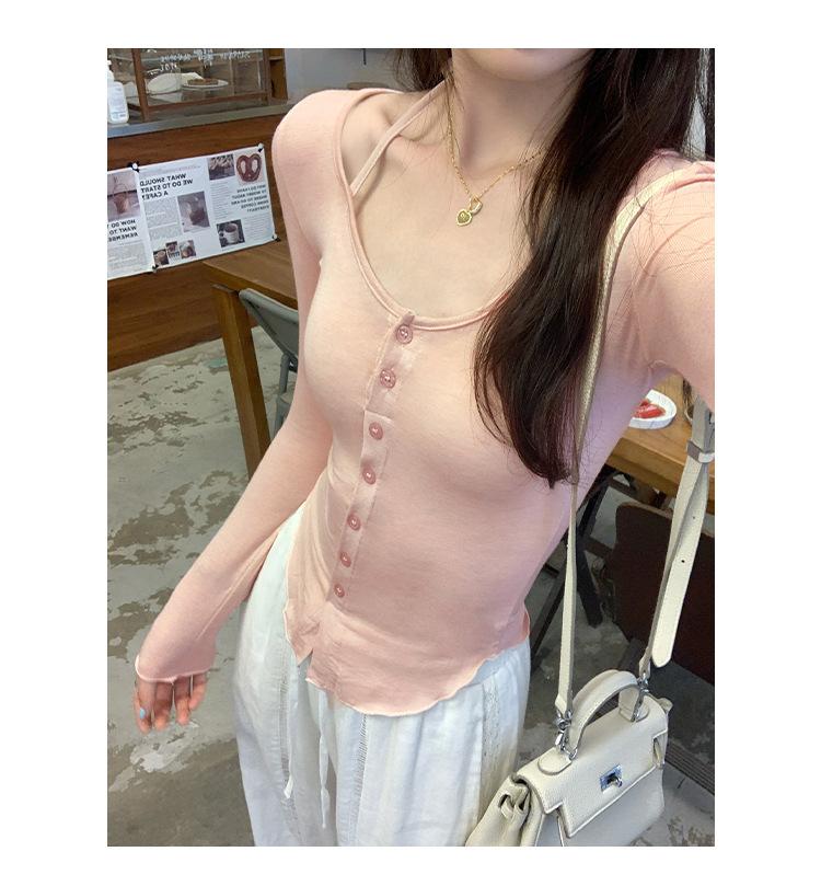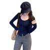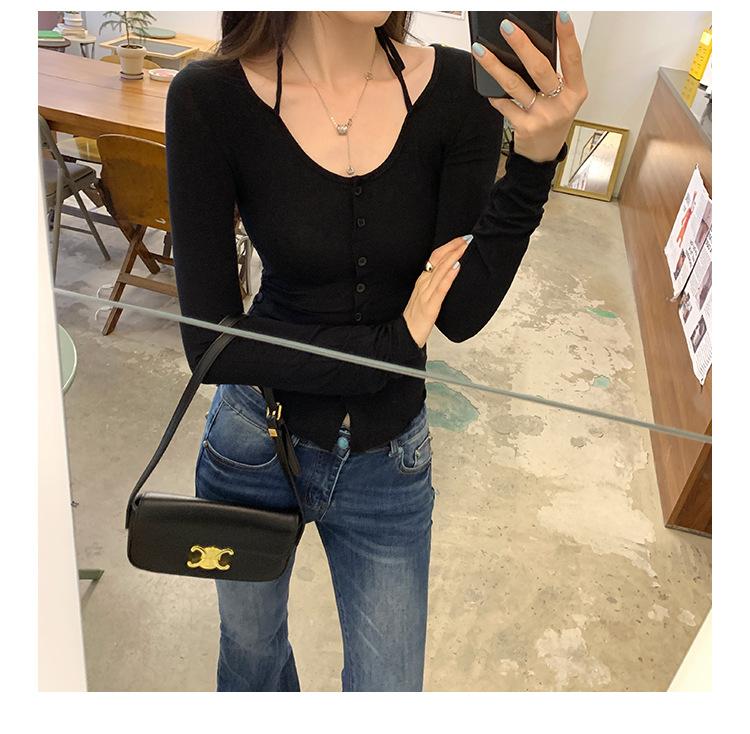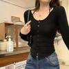 Camiseta de manga larga fina con cuello en V, pura y sexy, con lazo, estilo coreano para mujer, tendencia de otoño 2025, recién llegada, top pequeño y bonito.