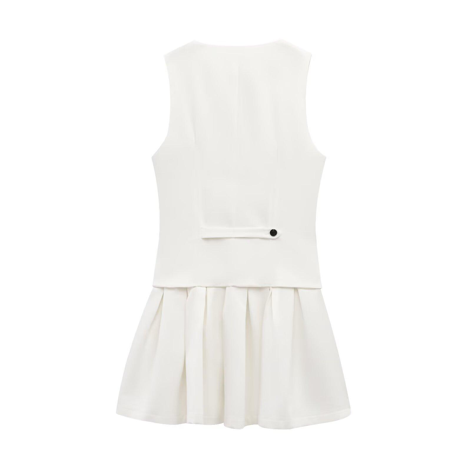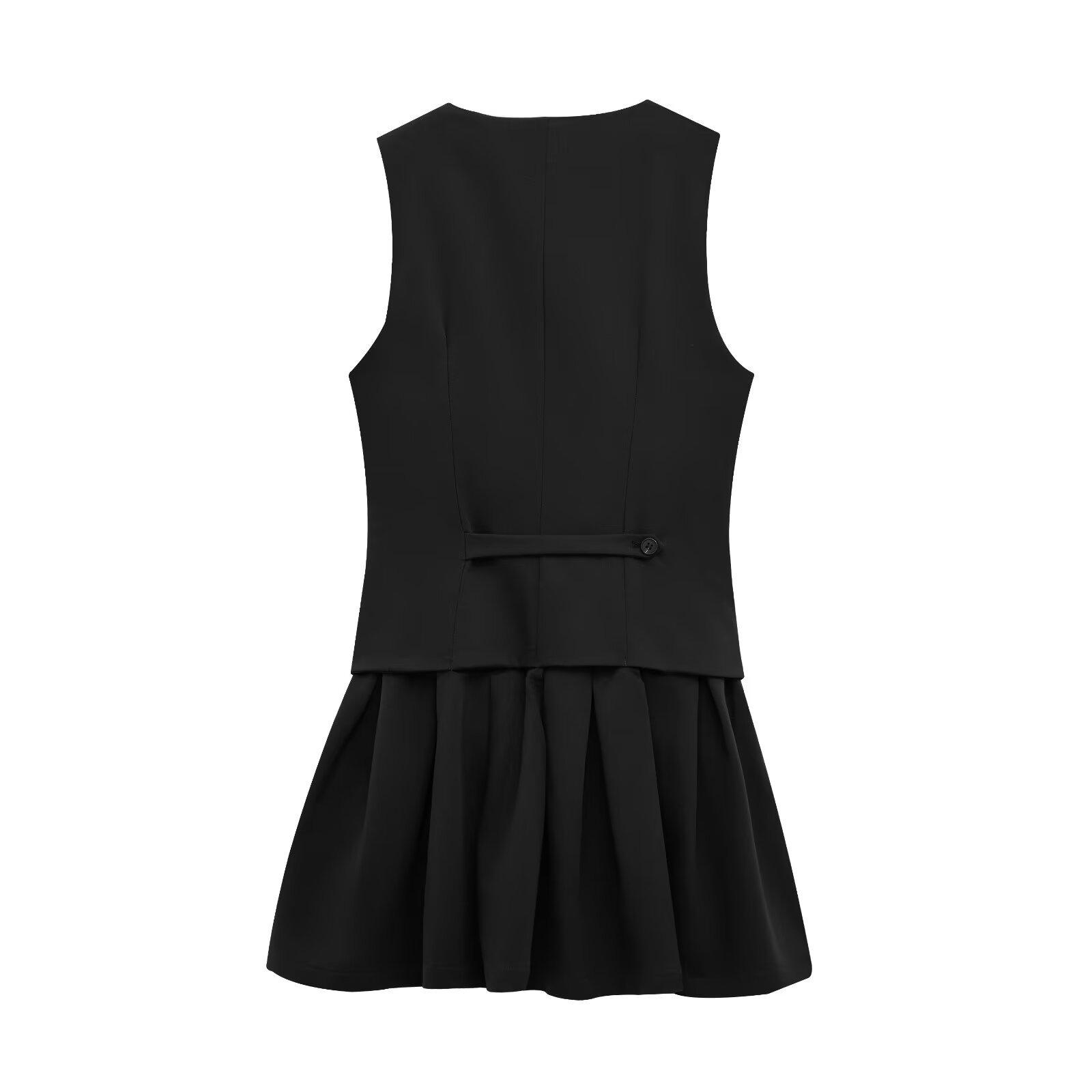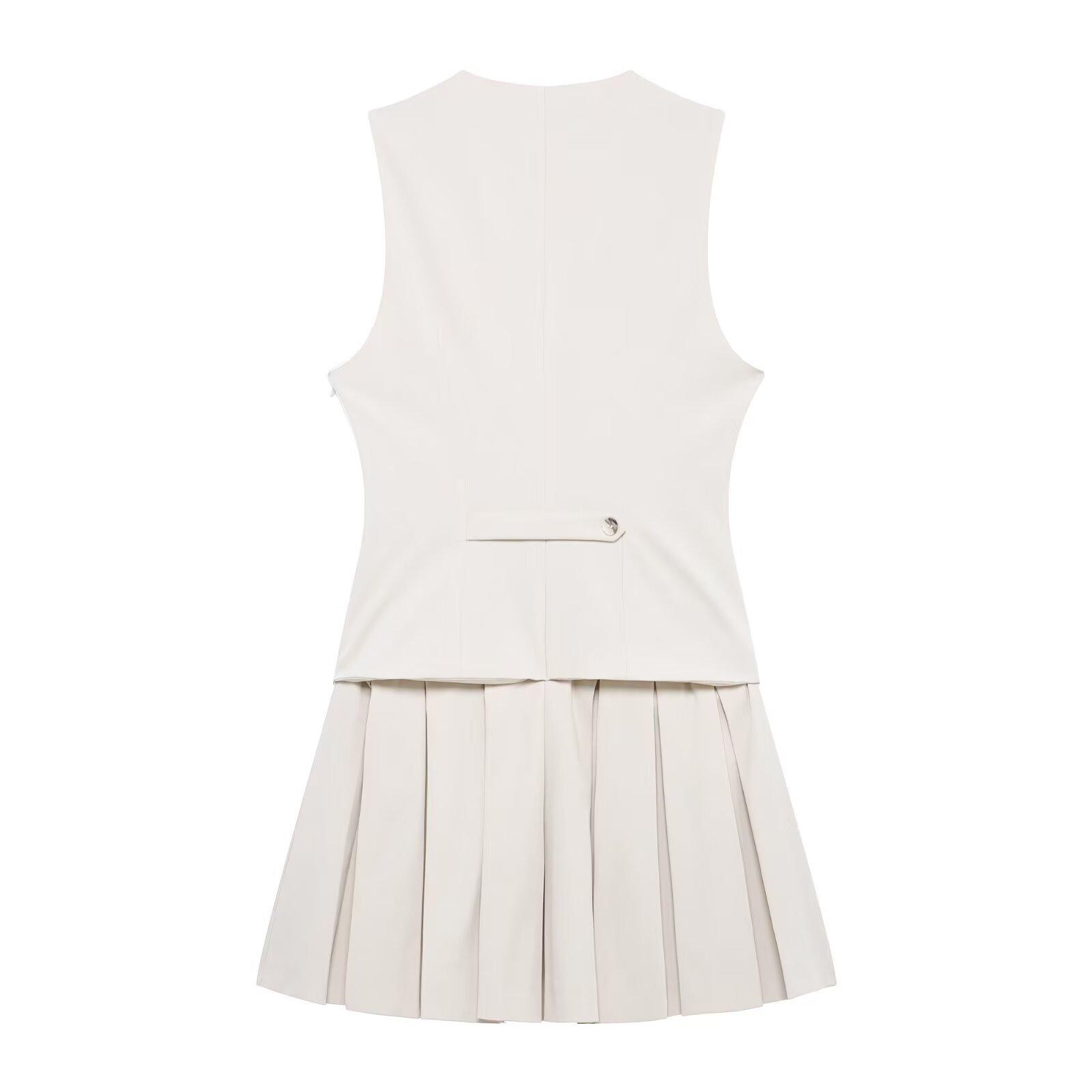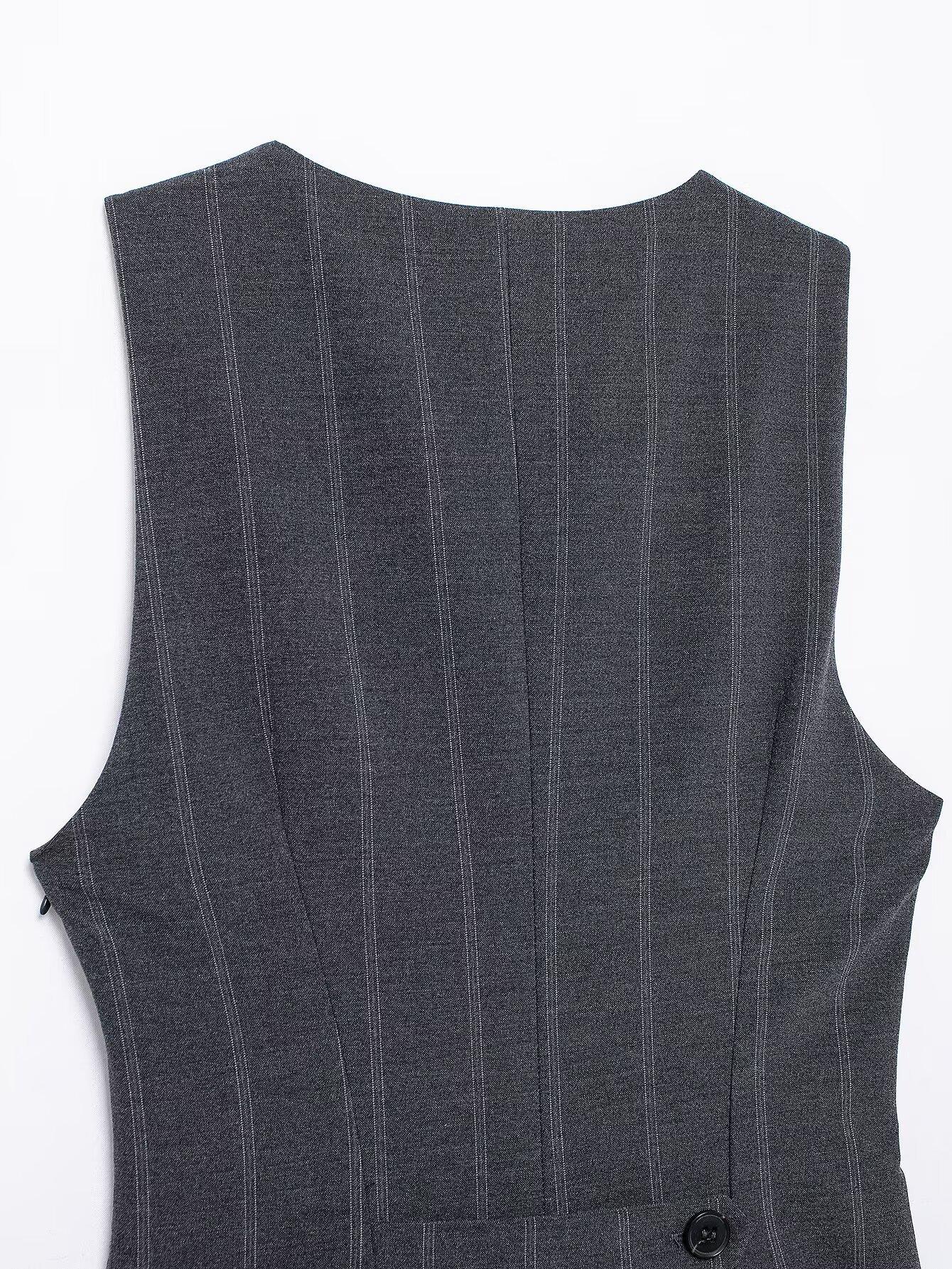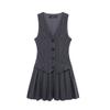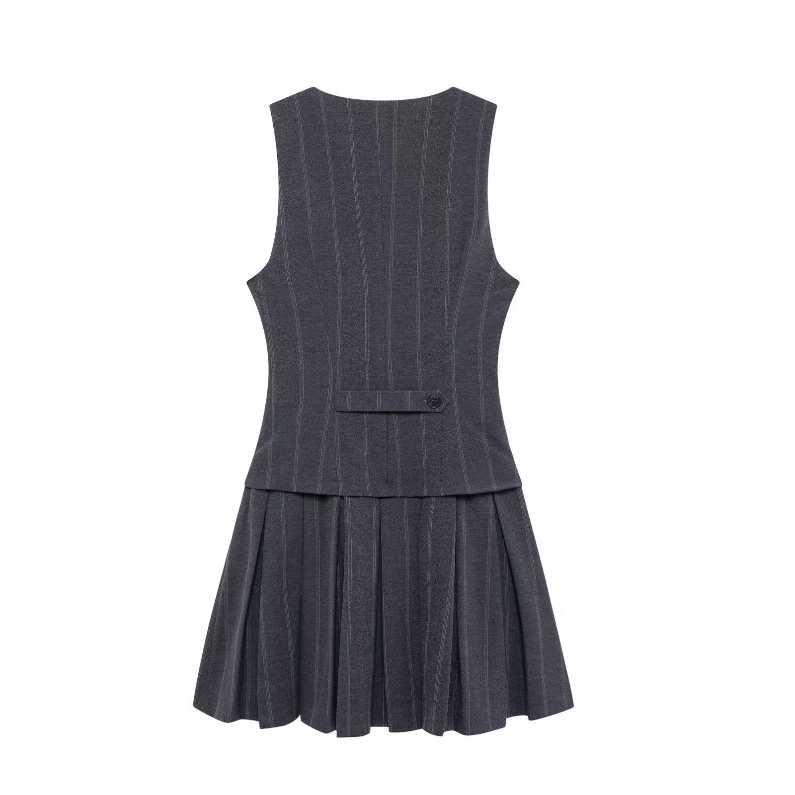Transfronterizo 2025 Verano Nuevo Estilo Europeo y Americano Moda Vestido Tipo Chaleco Ancho con Cintura Ajustada y Plisado a Rayas para Mujer Falda Corta